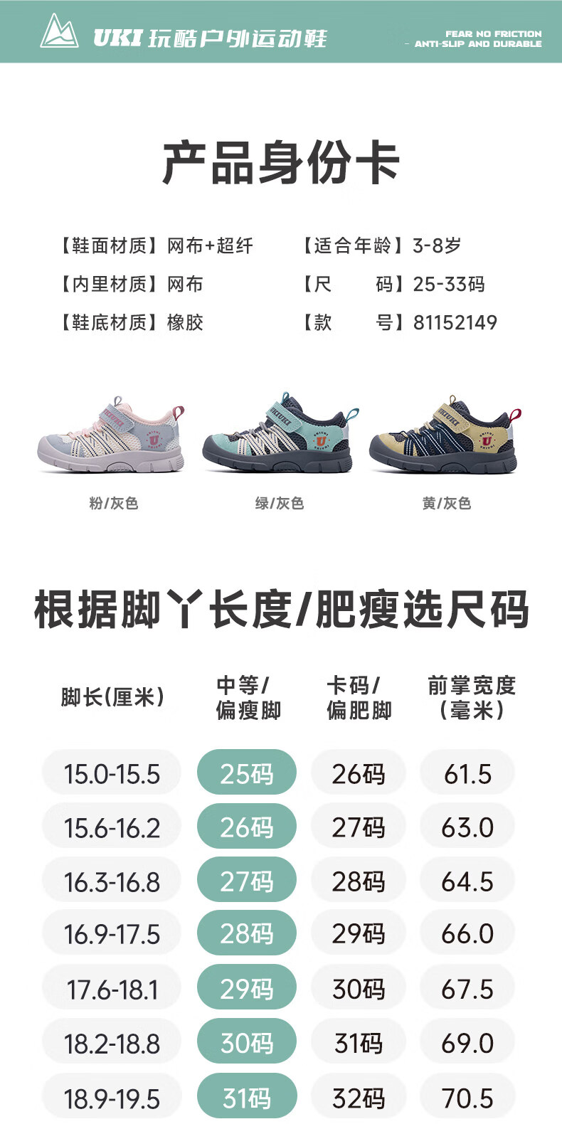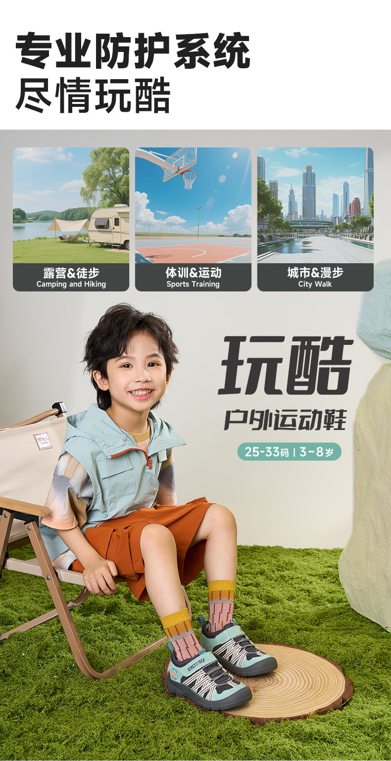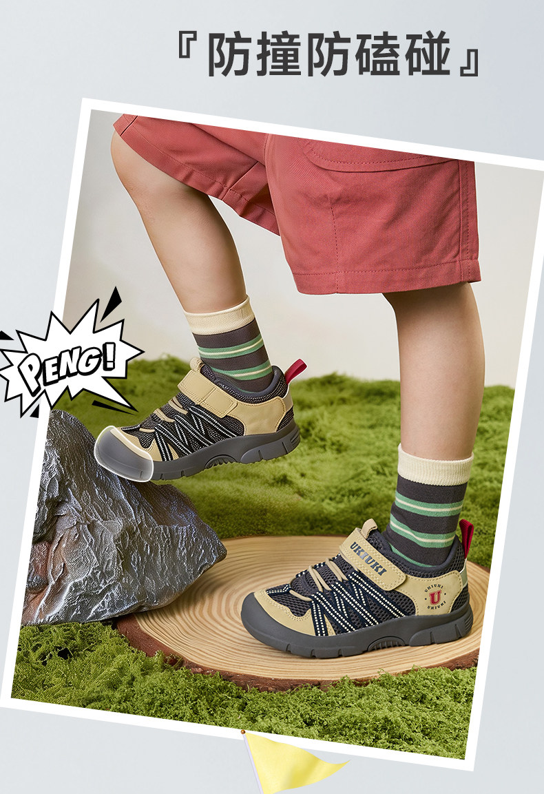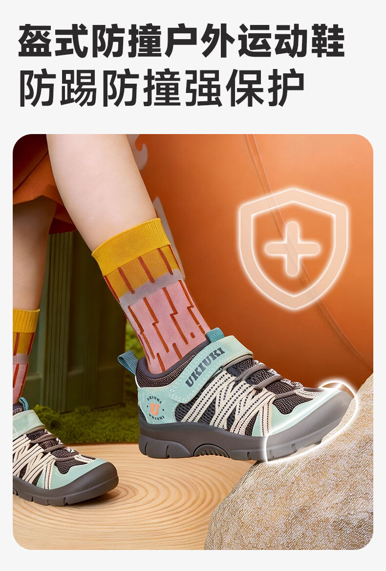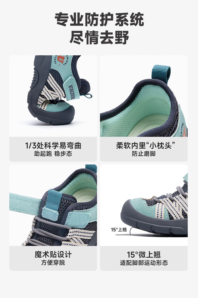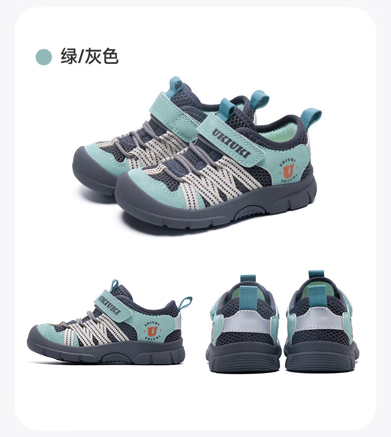 UKIUKI children's shoes play cool protective wear-resistant breathable mesh boys and girls children's anti-kick and anti-collision lightweight functional shoes sports shoes green/grey 27 inner length 17.3cm