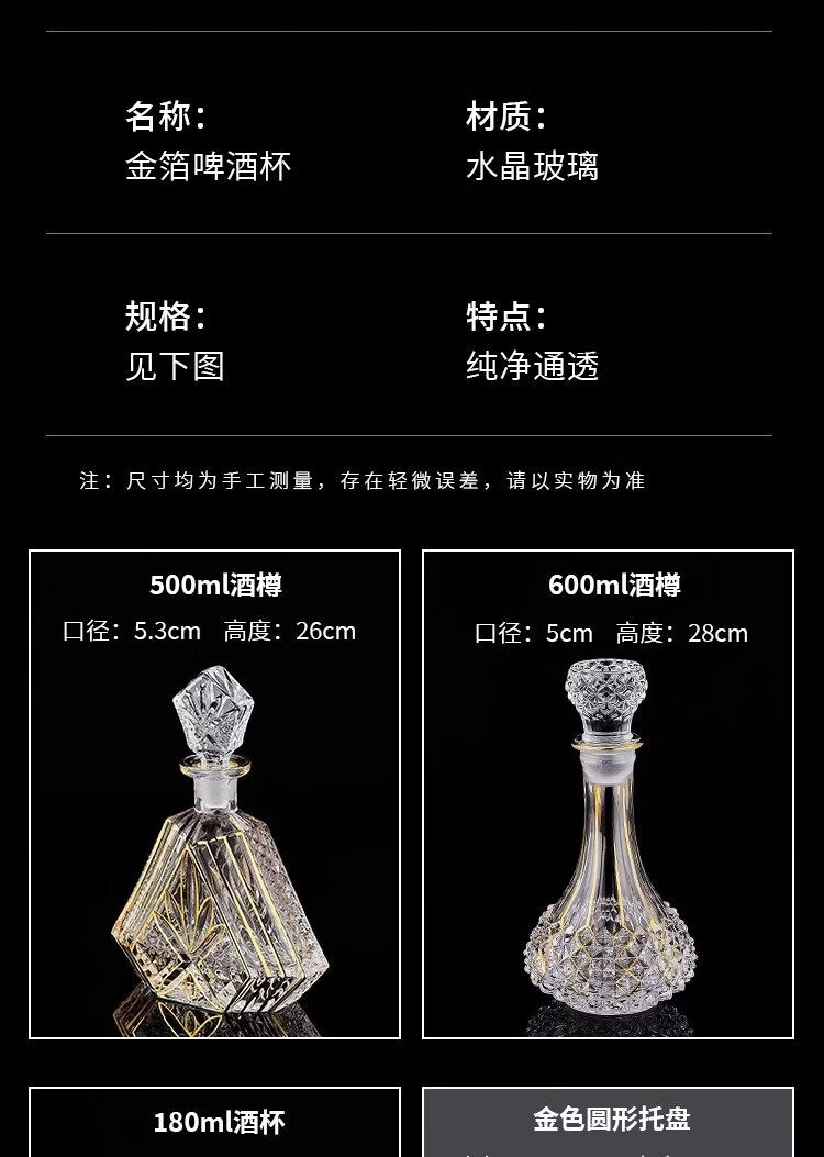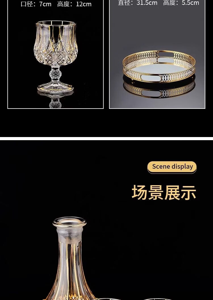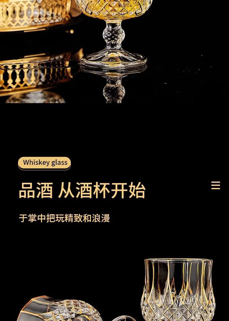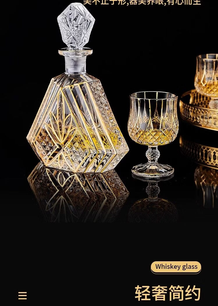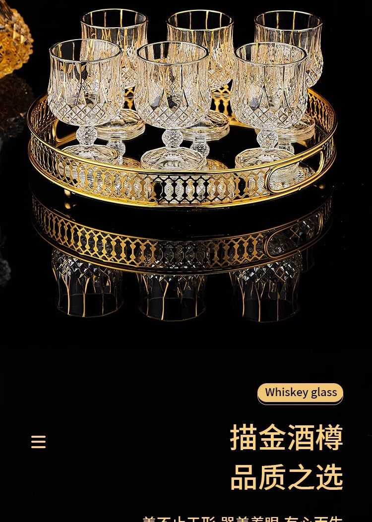 He Jiagong French light luxury European-style crystal glass household whiskey glass set wine dispenser spirits set gold-painted tall whiskey glass (2 pieces)