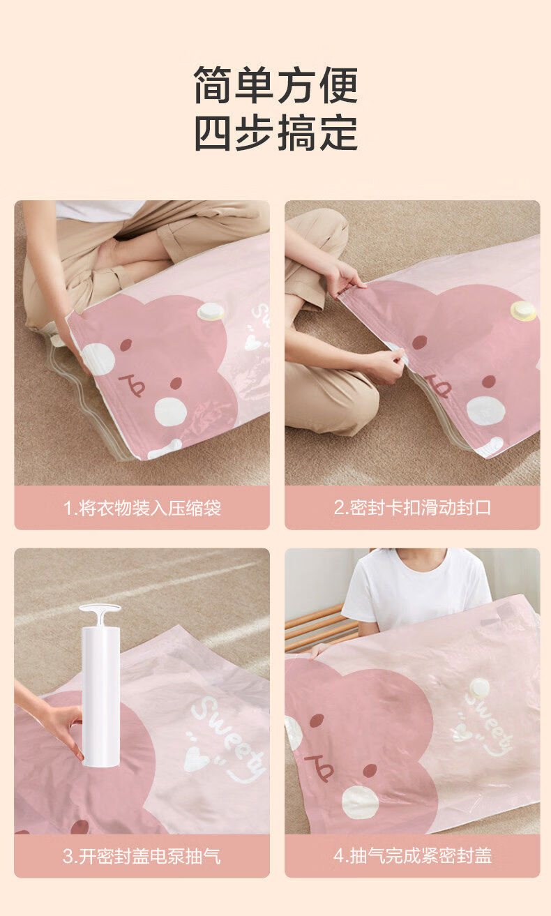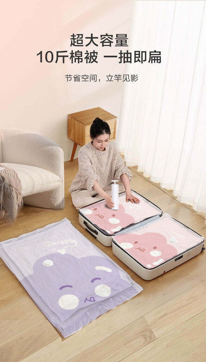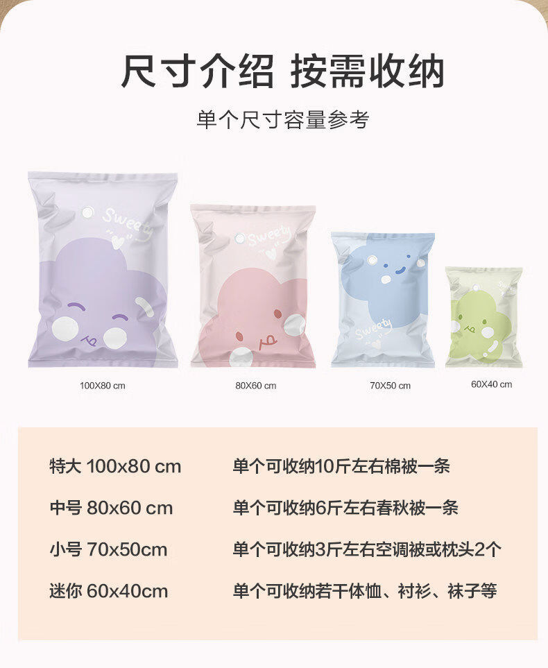 Yusenyi Vacuum Compression Bag Thickened Storage Clothes and Quilts Household Clothes and Quilts Bag Soft and Cute Thickened 8 Medium Size 8060 with Hand Pump
