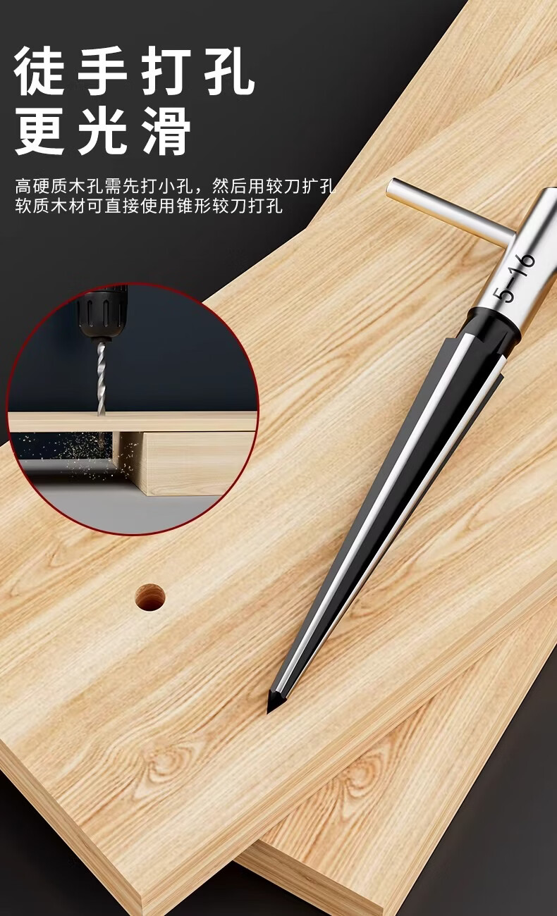 Taper reamer hand hole expander woodworking hole opener carbide chamfering high speed steel tapered reamer drill bit taper reamer-electric model 5-16mm