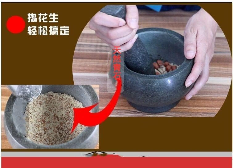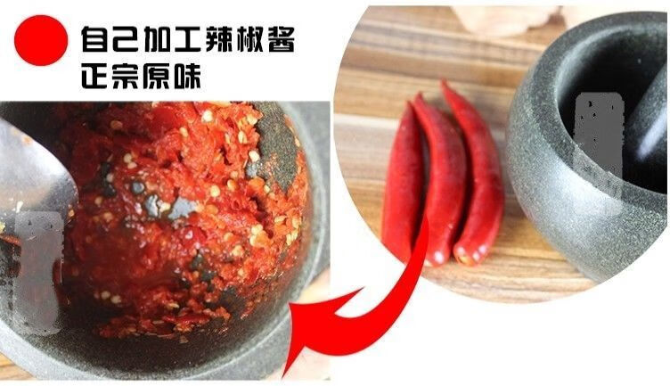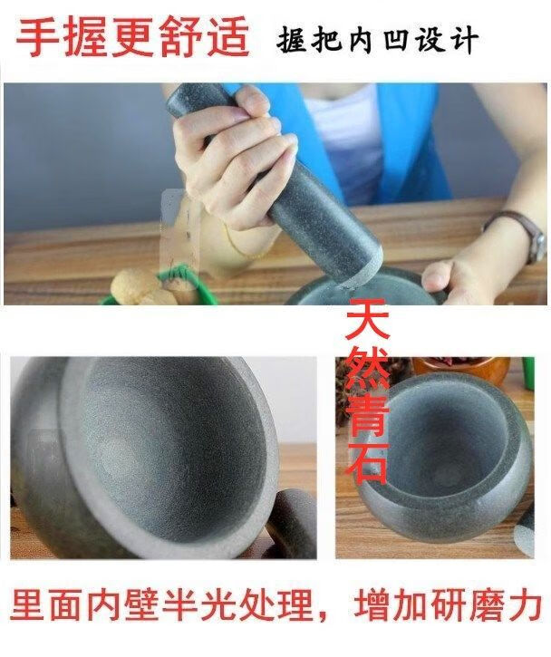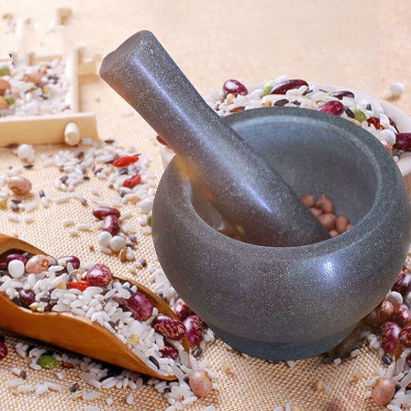 Xiongwochi bluestone stone mortar garlic pounder household garlic masher press garlic pound jar peel garlic masher food grinder outer diameter 14cm with hammer without