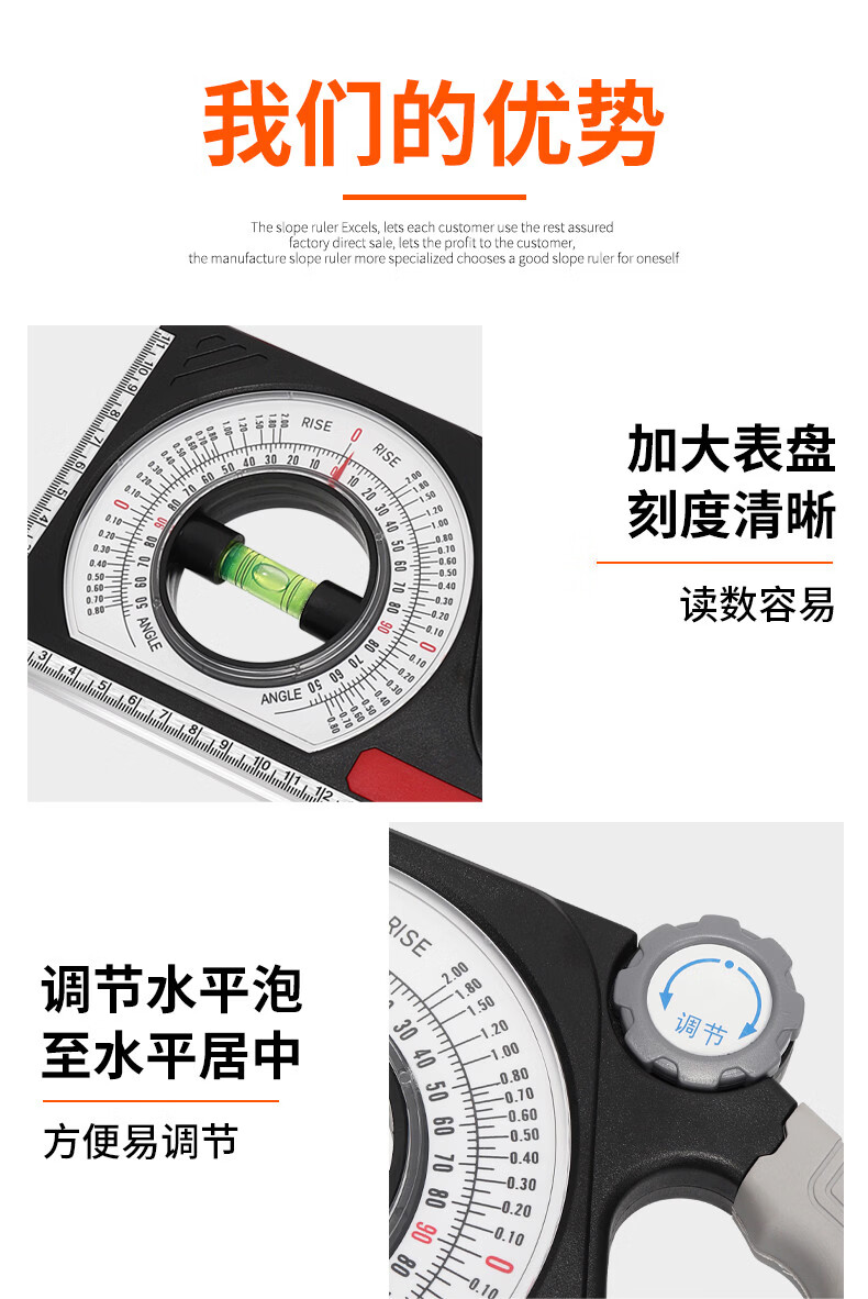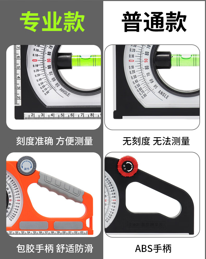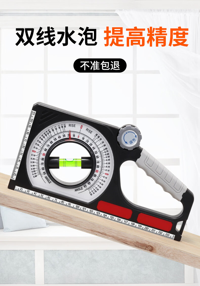 Magnetic slope measuring instrument, construction slope measuring tool, multi-functional measuring angle gauge, slope for construction, simple model (slope ruler) square with magnet