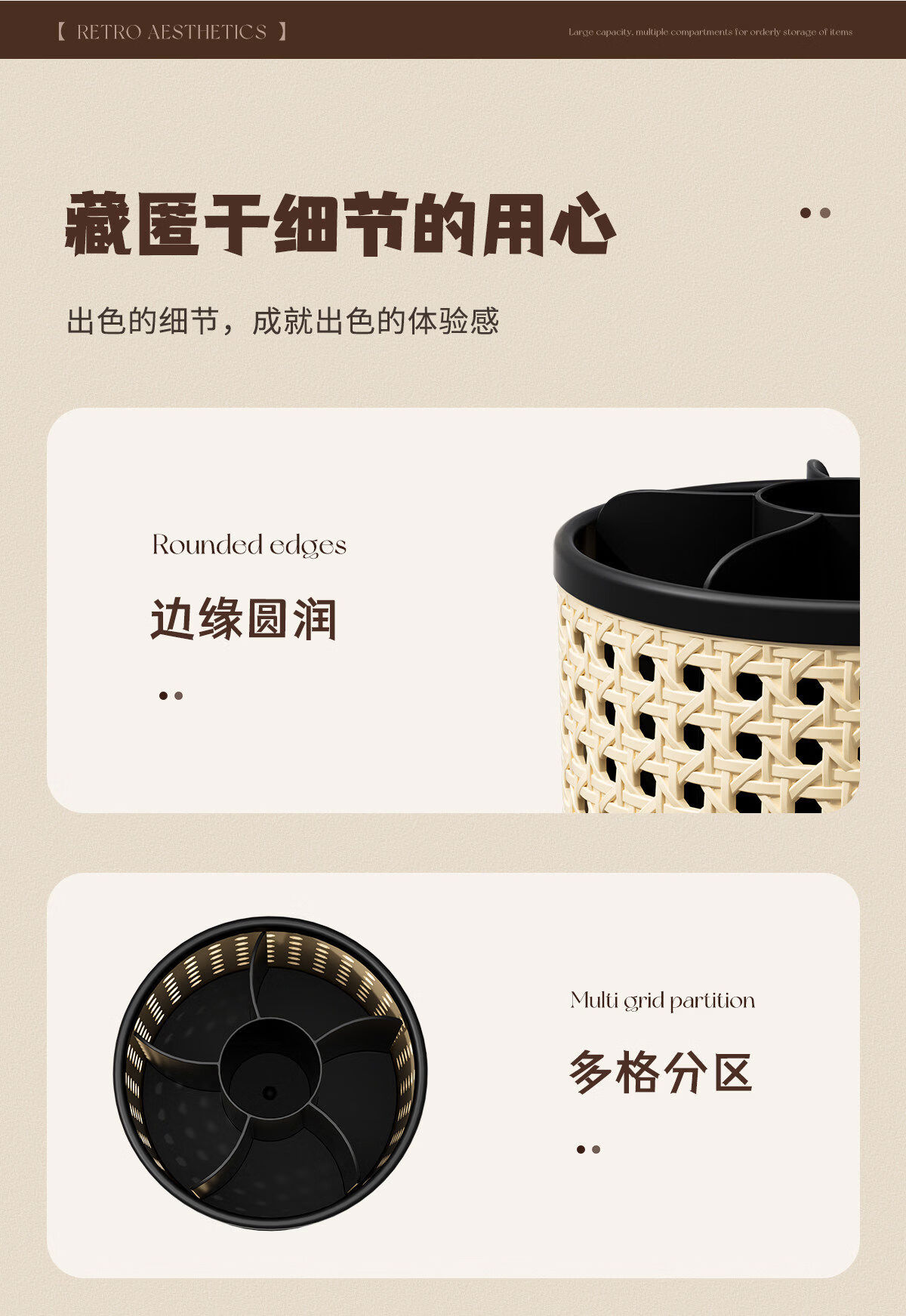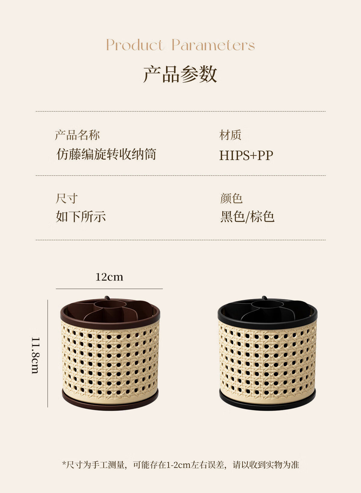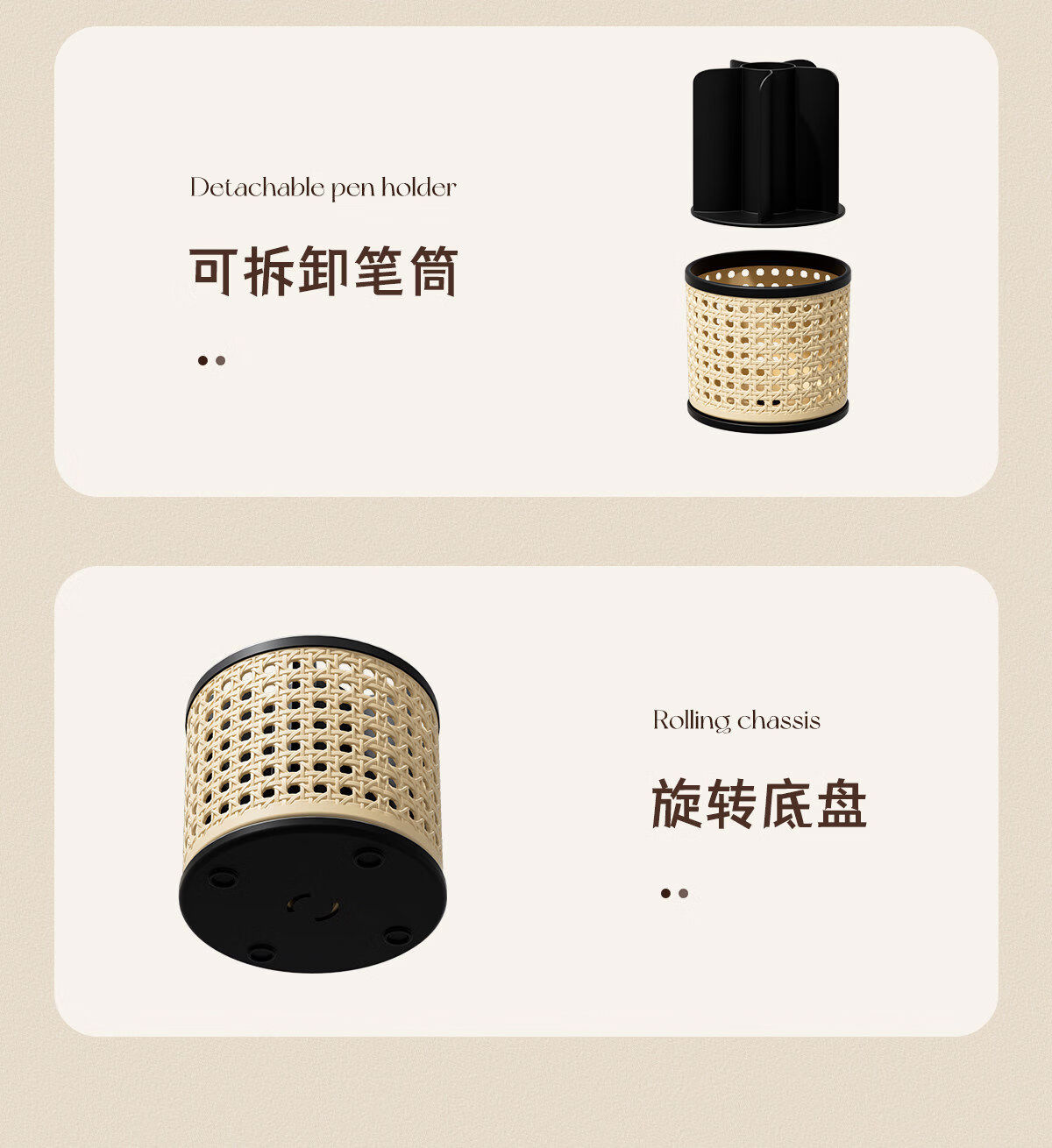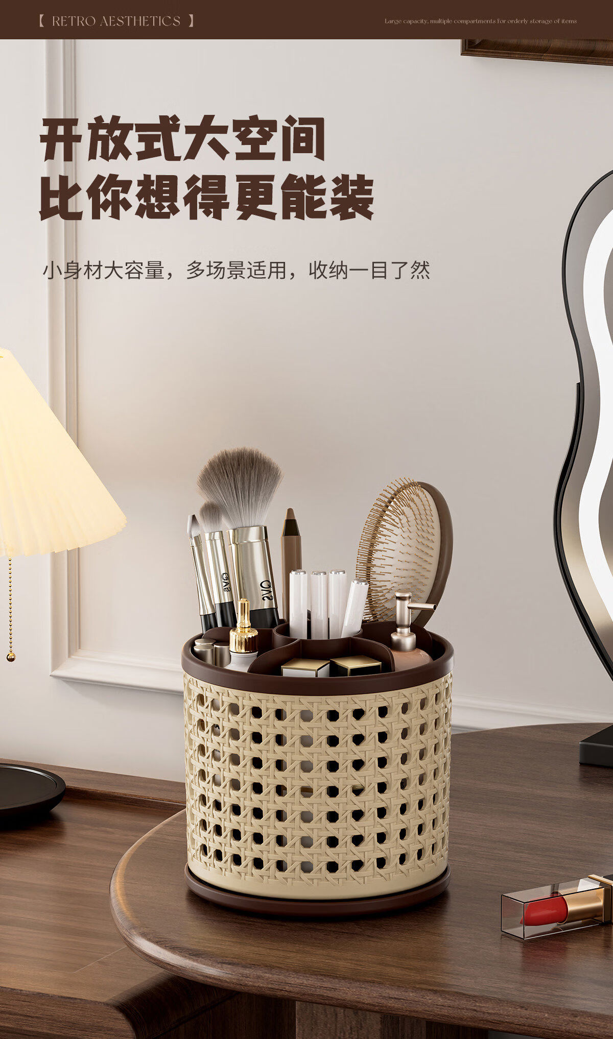 Fantasy makeup brush storage tube-like rattan basket covered antique dressing table cosmetics compartment rotating desktop storage rack black 1 piece