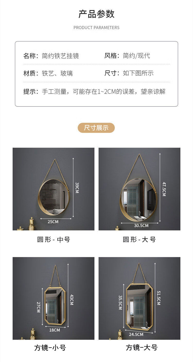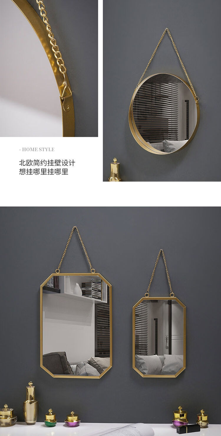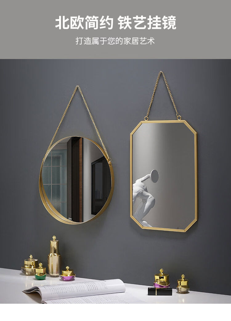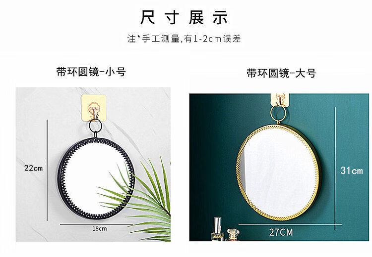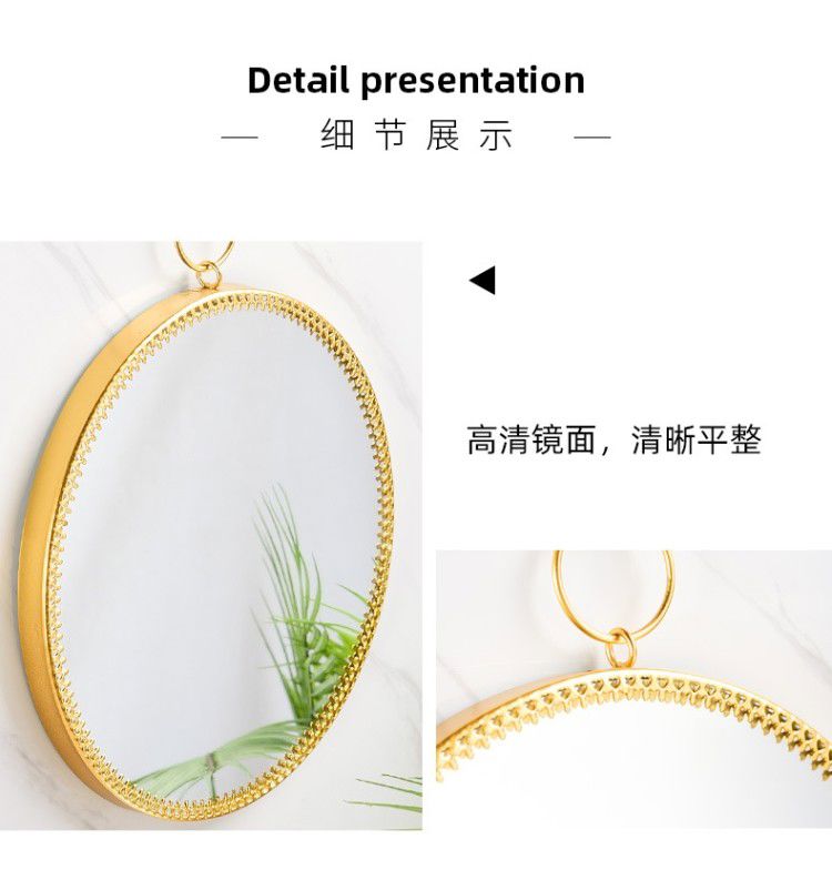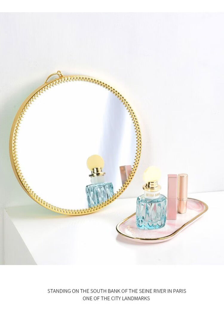Bathroom mirror wall-mounted iron bathroom vanity mirror decorative mirror can be hung desktop vanity mirror wall-mounted washbasin gold circle mirror
