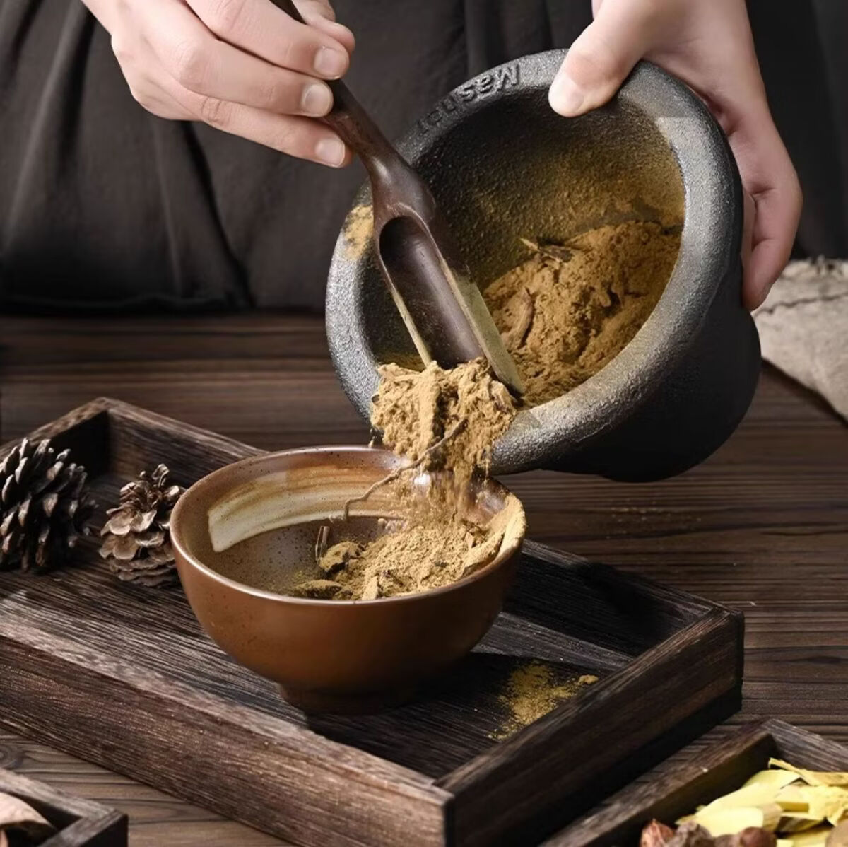 Fantasy garlic mortar, garlic mortar, manual mashing jar, bowl, masher, grinder, garlic press, small size comes with brush + leather cover (vegetable oil coated version).