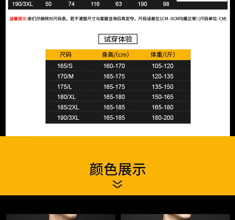 China (cm) 165 / 88-90 170 / 96-98 175 / 108-110 180 / 118-122 185 / 126-130