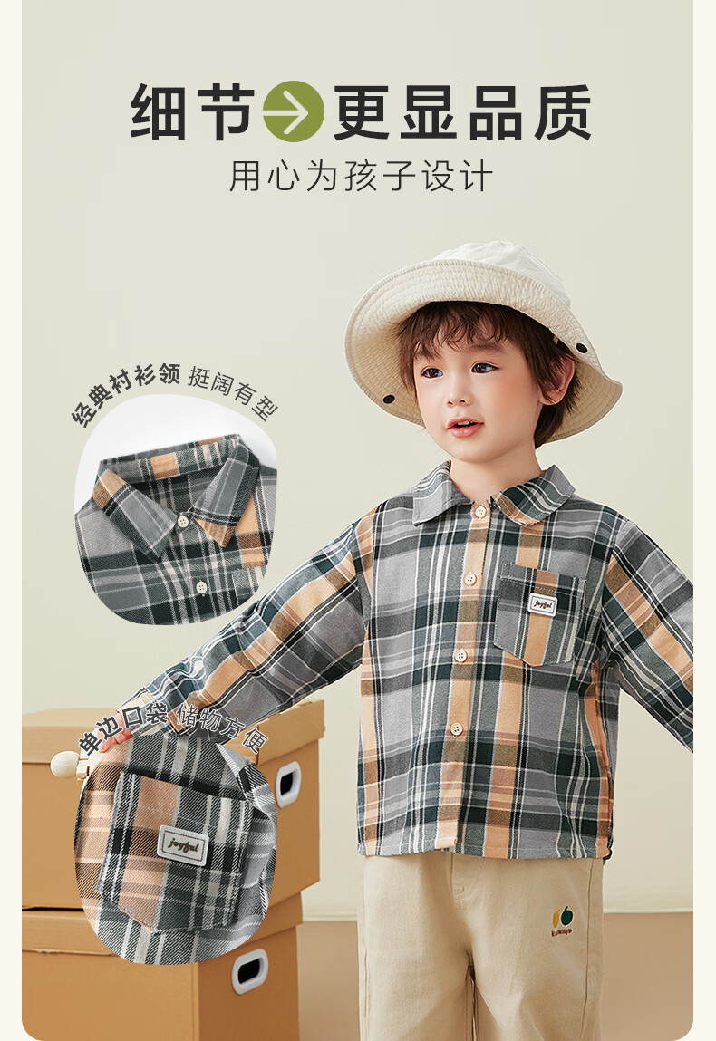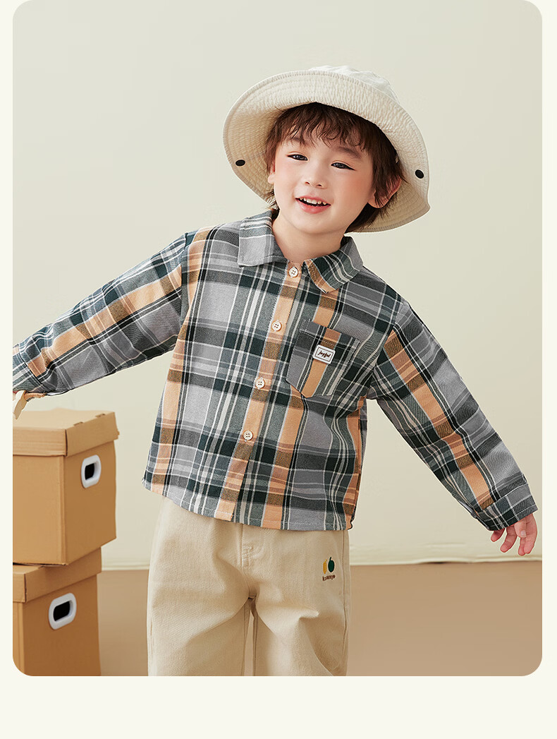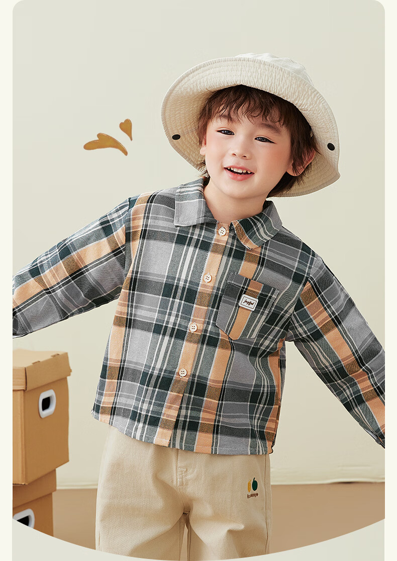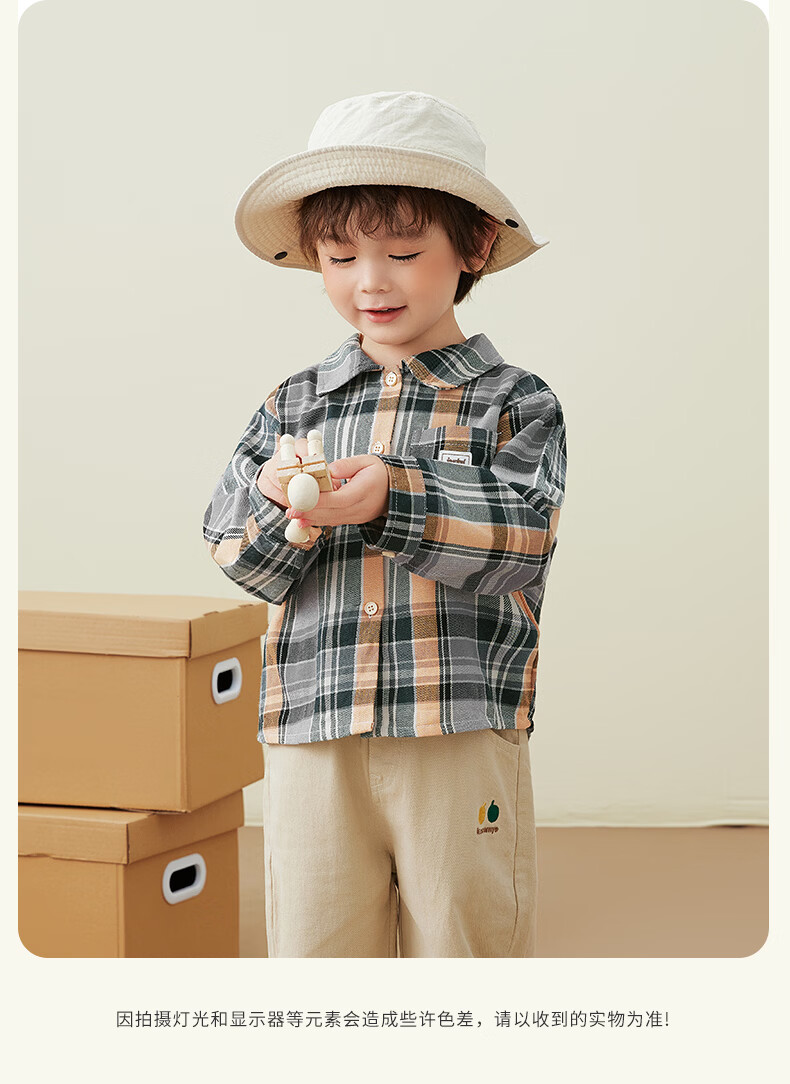 Kuwami 2026 spring and autumn new style plaid shirt for boys and girls, children's versatile long-sleeved shirt, children's clothing trendy top, yellow plaid 90