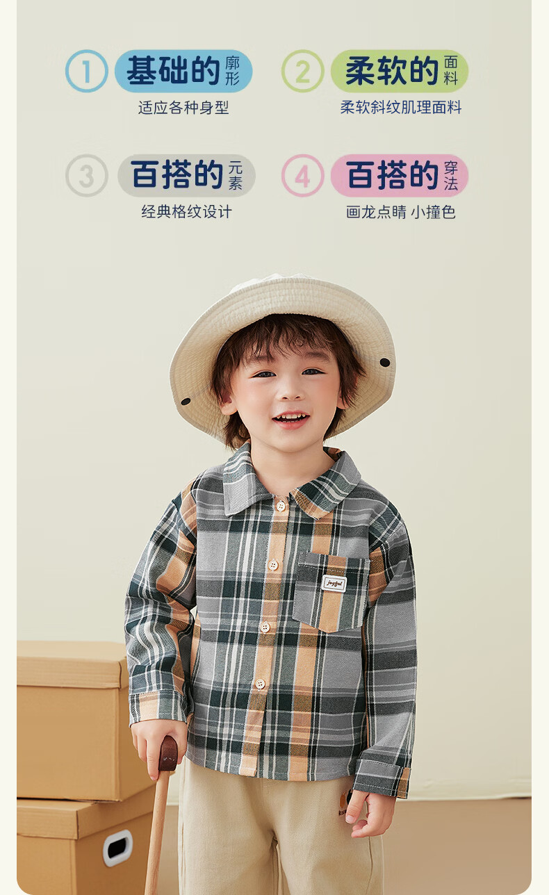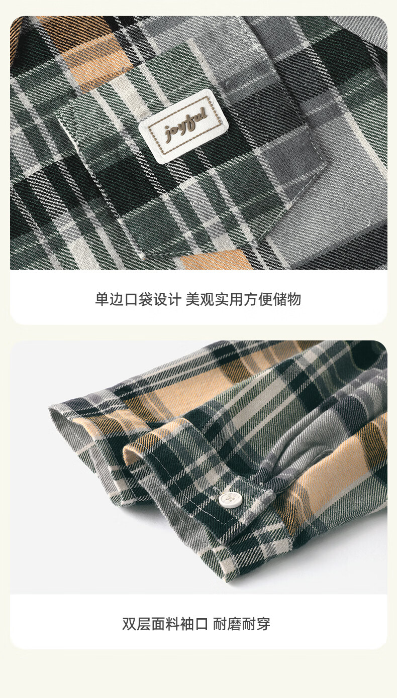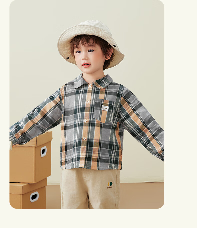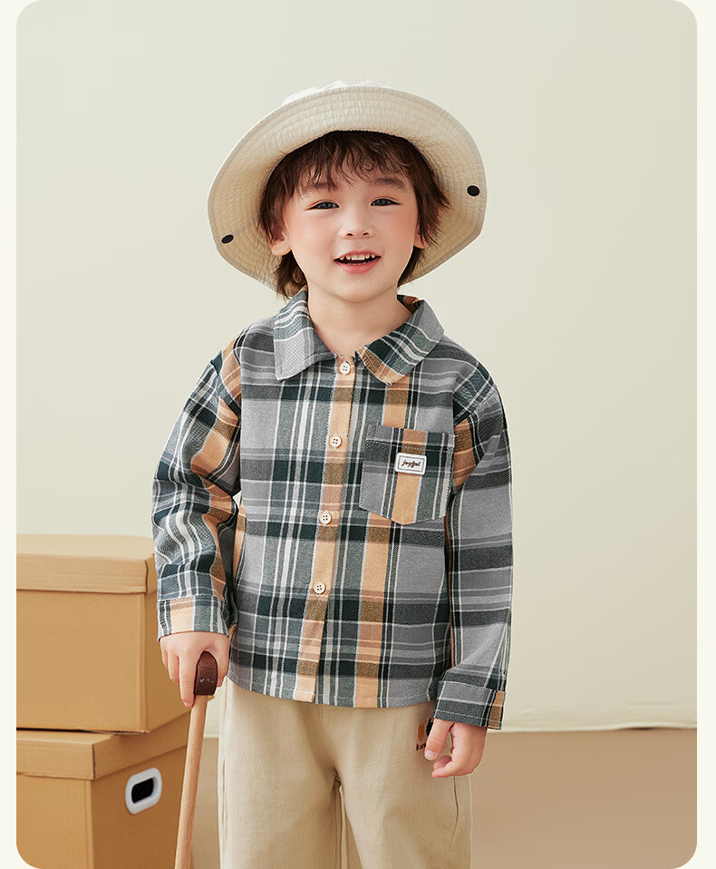 Kuwami 2026 spring and autumn new style plaid shirt for boys and girls, children's versatile long-sleeved shirt, children's clothing trendy top, yellow plaid 90