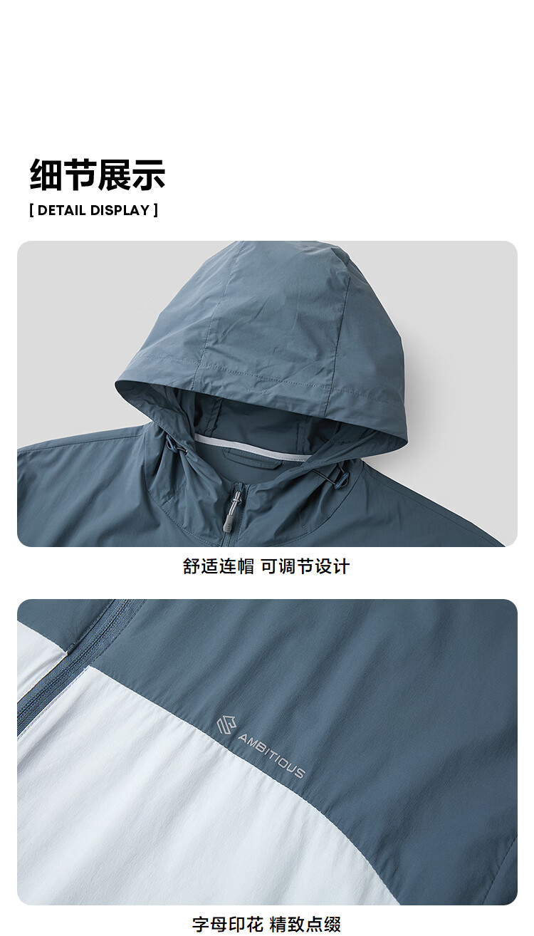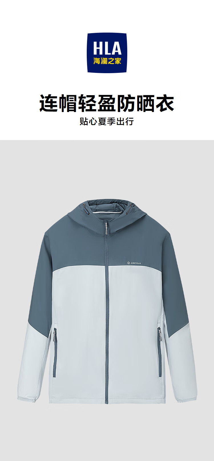 Heilan House (HLA) Jacket Men's 26 New Style Hooded Sleeves Lightweight Sun Protection Jacket Men's Summer HWJAJ2F103A Blue Gray Sleeves A3 M 170/88A Recommended 125~136 Jin Jin equals 0.5 kg