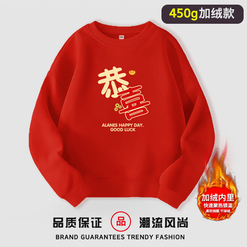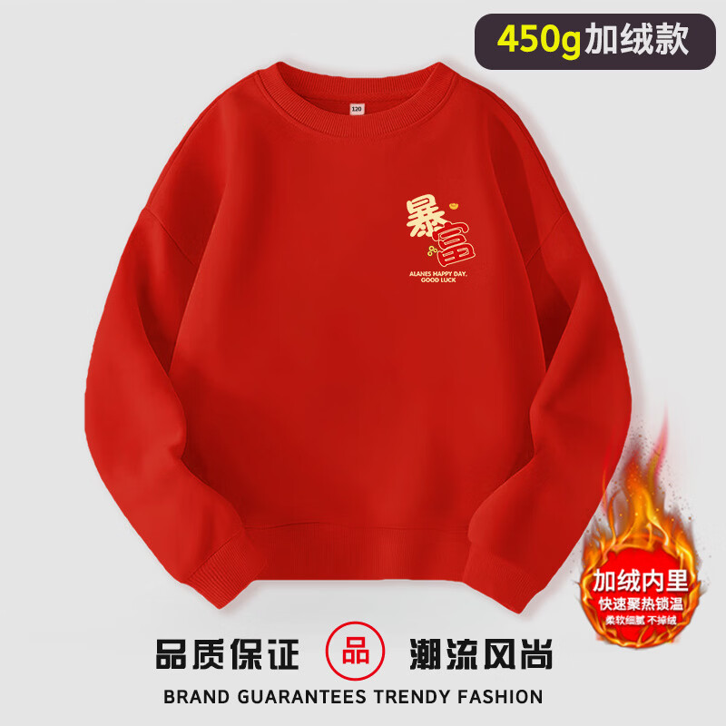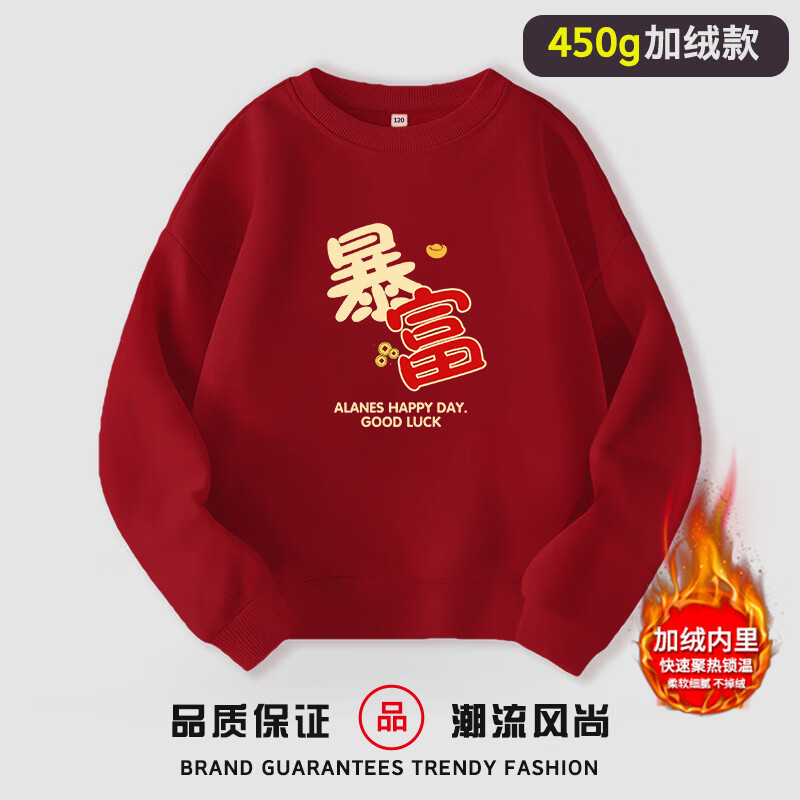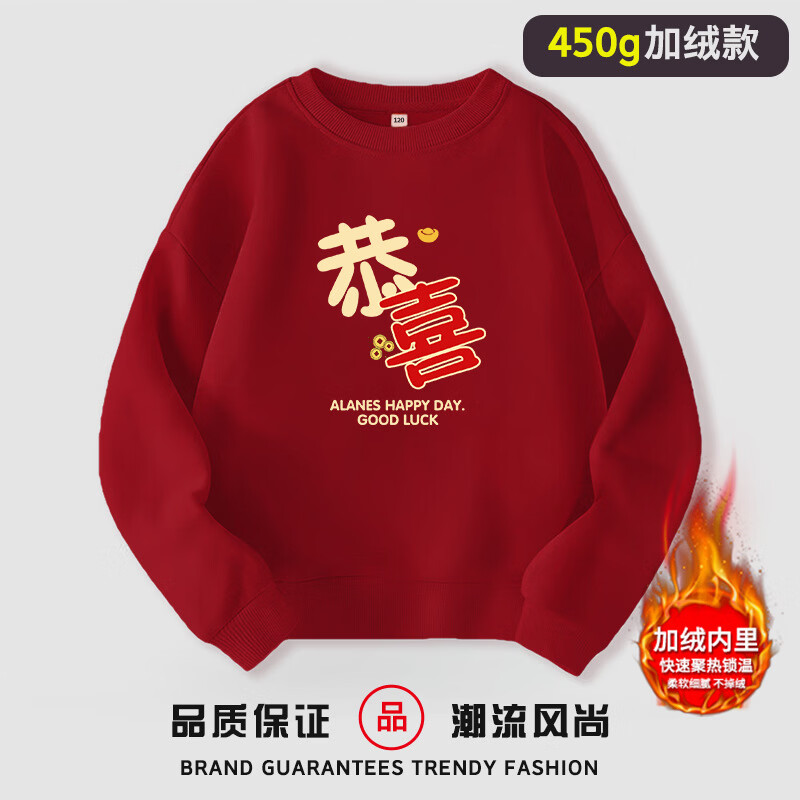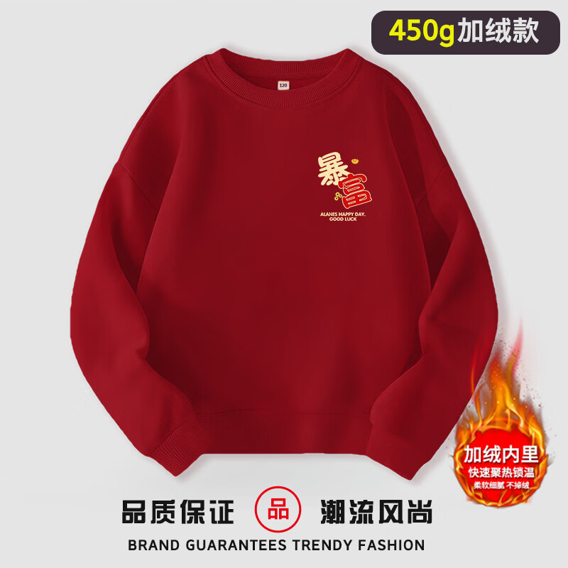 2026 New Get Rich Red Sweater Plus Velvet Thickened Year of the Horse and Animal Year Parent-child Outfit Festive Bridesmaid Dress Ping An-Front and Middle-Burgundy 80 Romper Suit