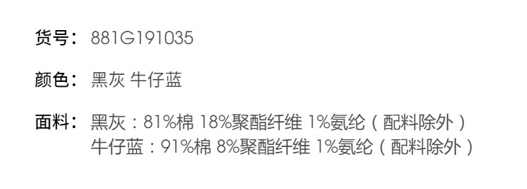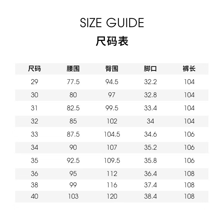 Outseam (cm) 99 cm 101.5 cm 104 cm 106.5 cm 109 cm