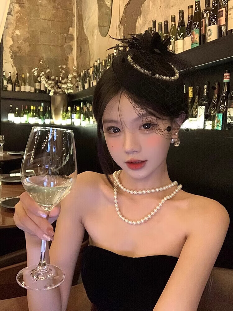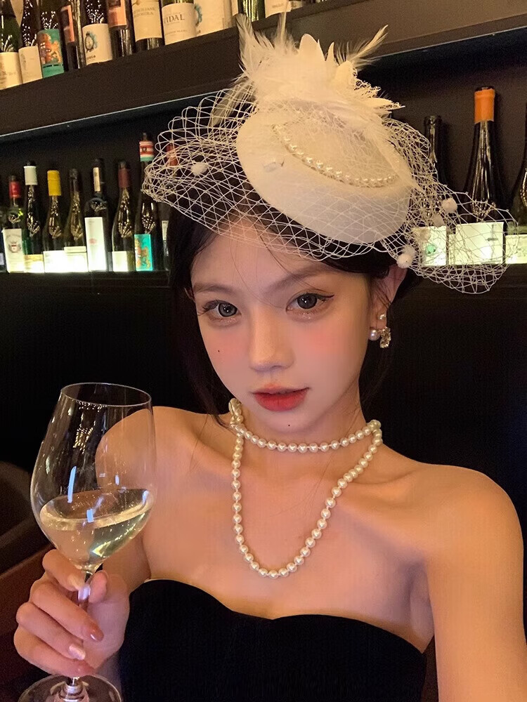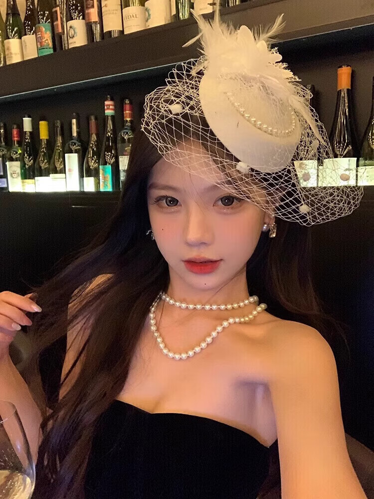 Zhenwu retro Republic of China mesh top hat female headwear bridal veil socialite dinner cheongsam dress hair accessories os photo props pearl mesh top hat black one size
