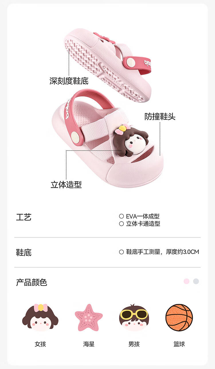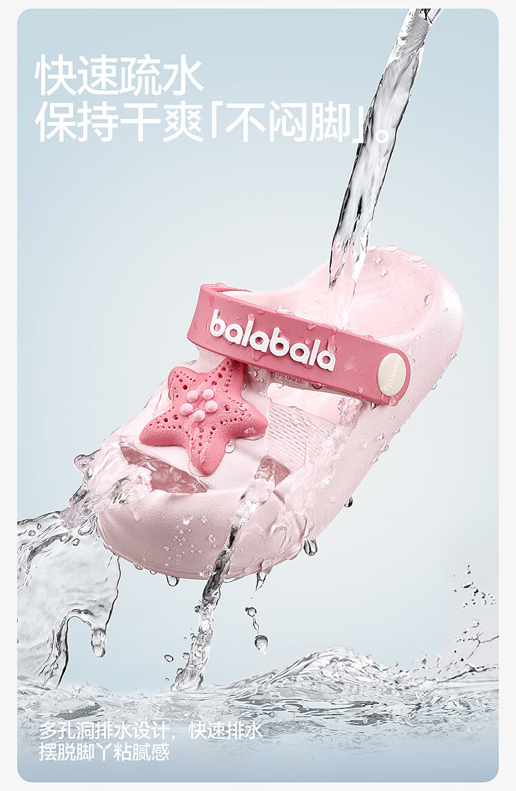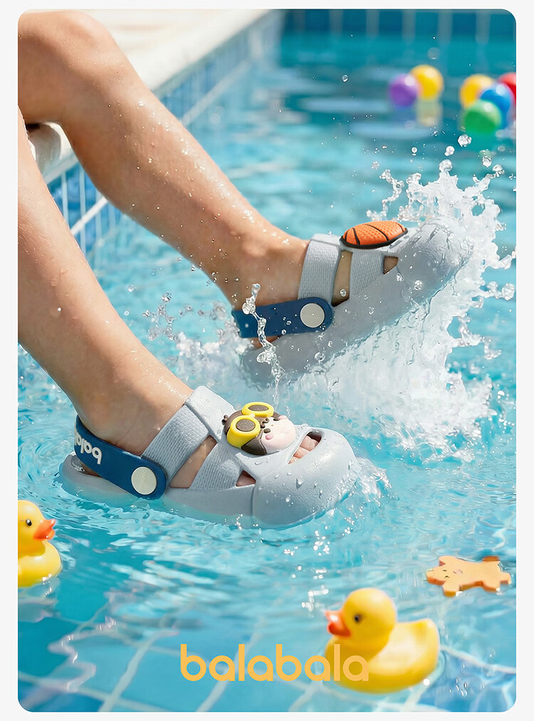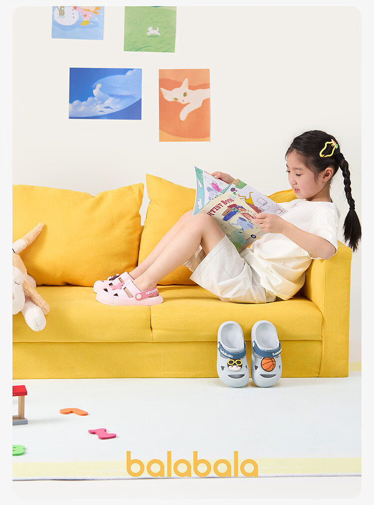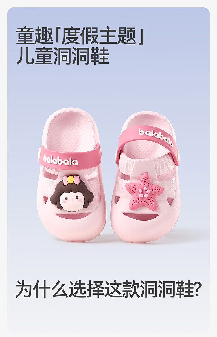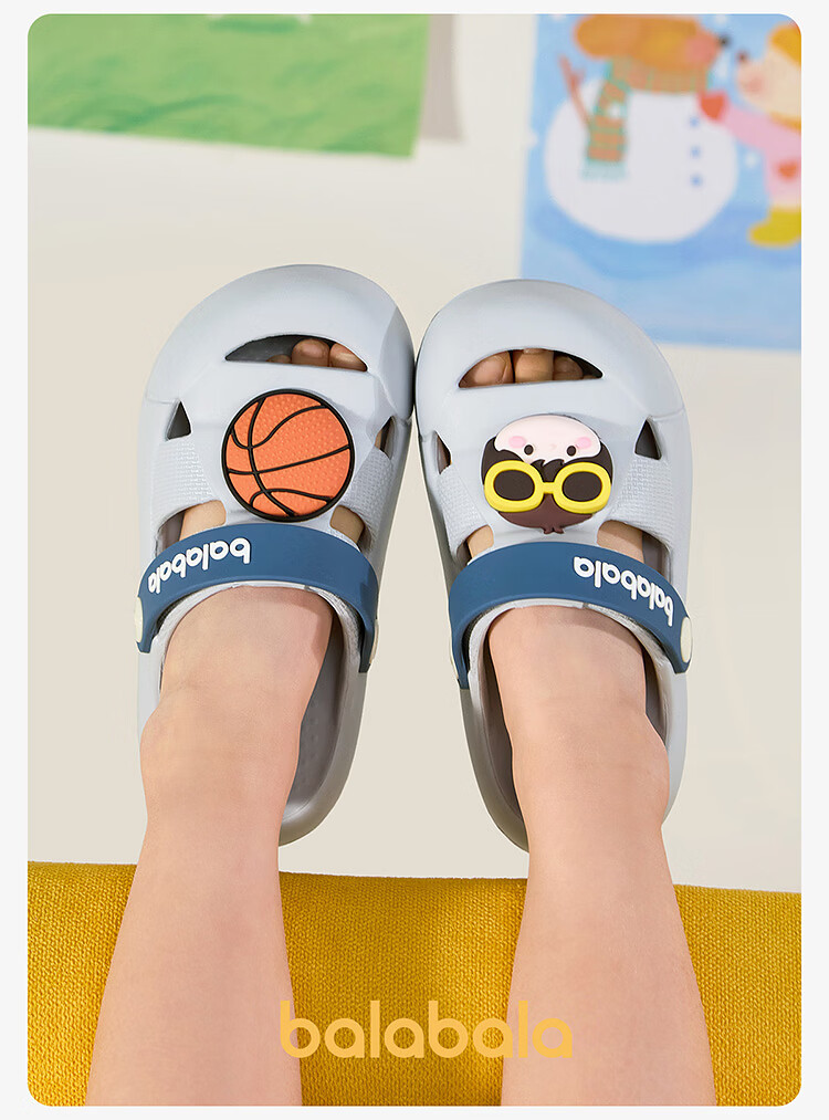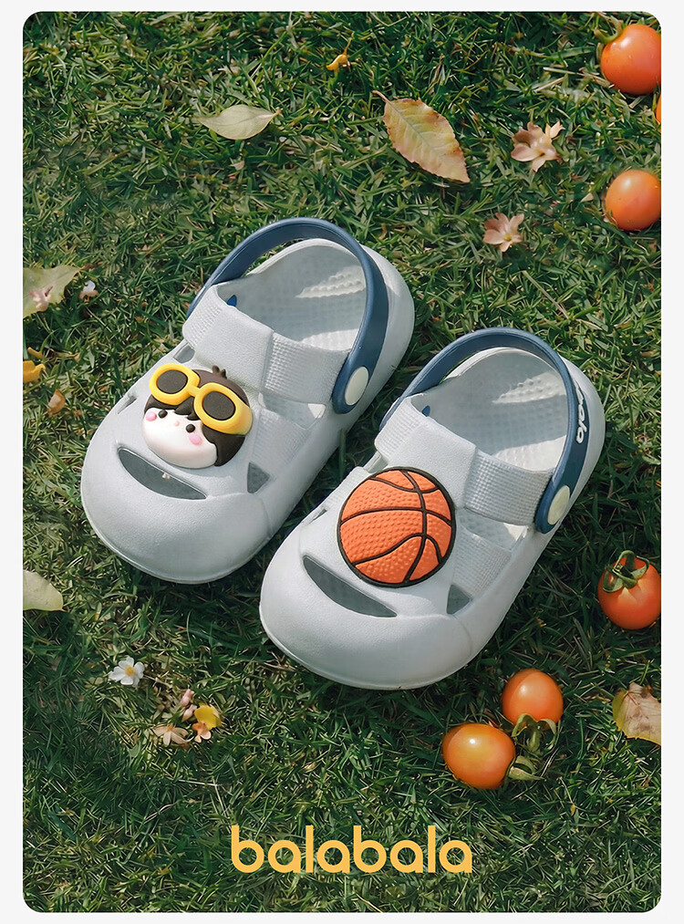 Balabala children's shoes children's slippers for boys and girls 2026 new summer cute cartoon three-dimensional hole shoes blue tone 00388 20 (inner length 14cm recommended foot length 13-13.5cm)