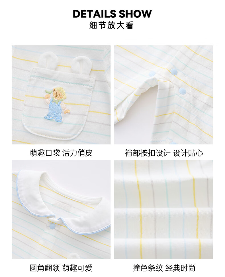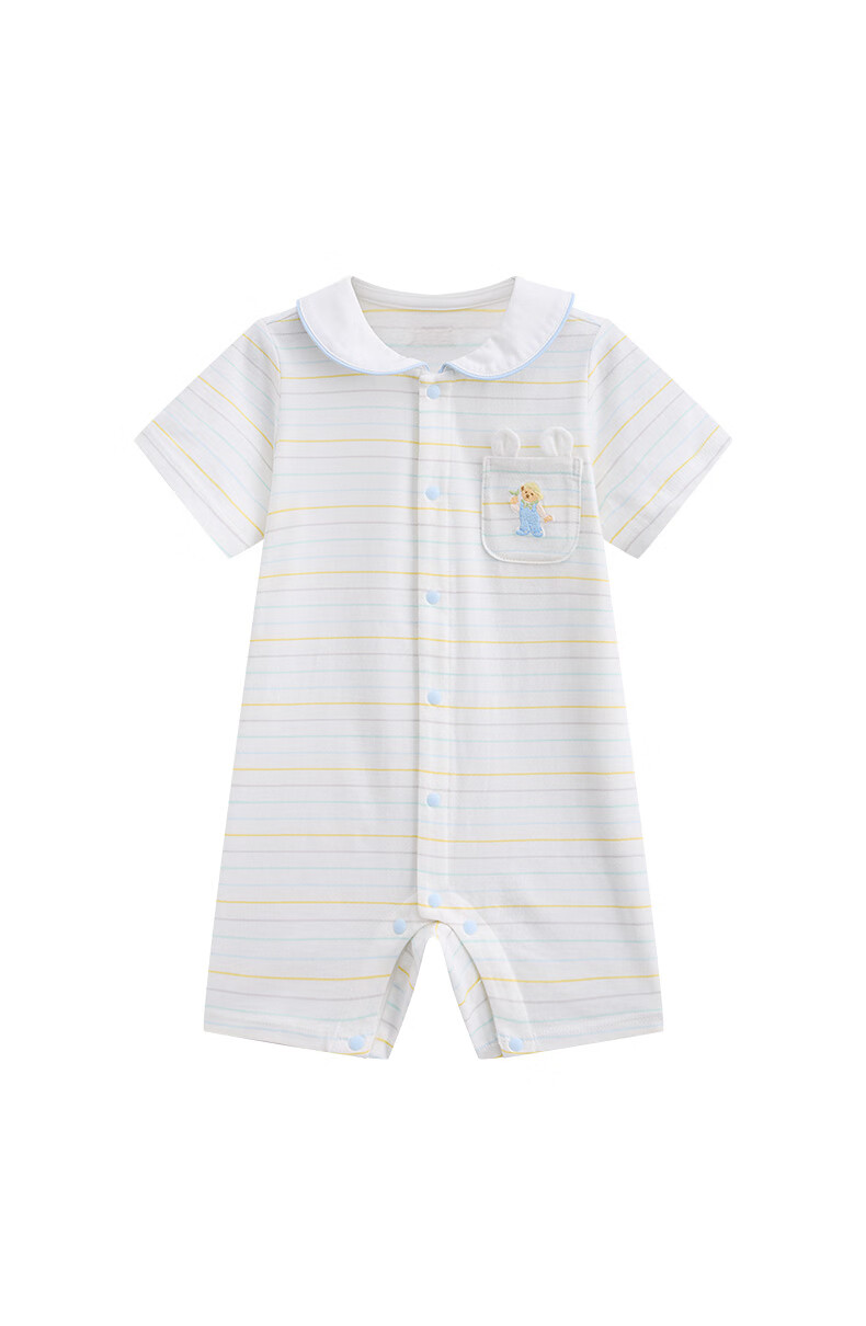 Teenie Weenie Kids 26 years new baby boy baby striped short-sleeved jumpsuit white 73cm