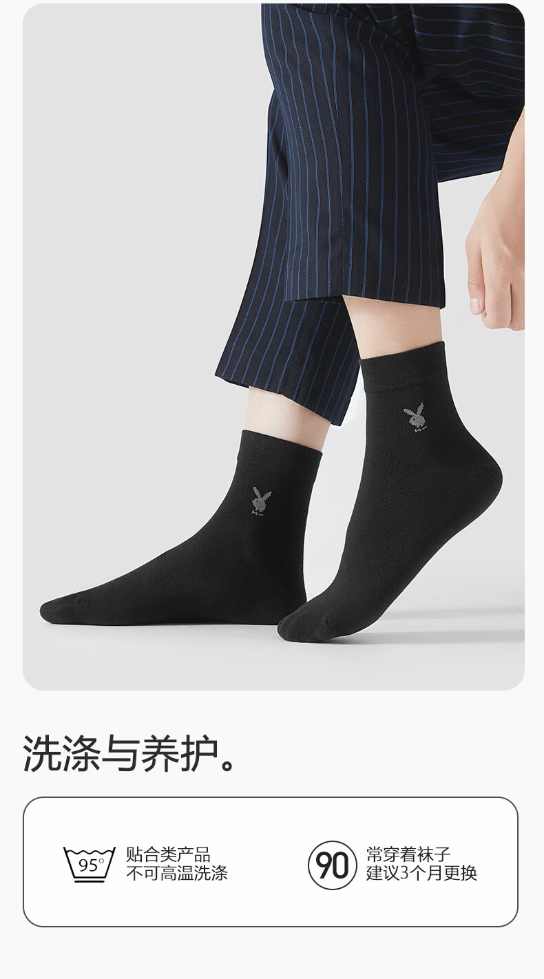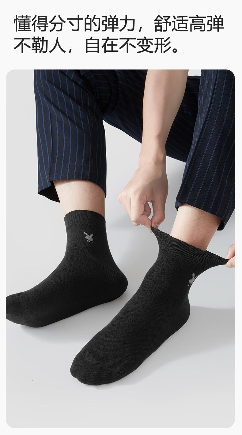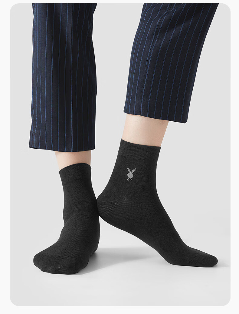 Playboy (PLAYBOY) socks men's pure cotton mid-calf socks summer thin 7A anti-odor and sweat-absorbent business stockings for men 7A business casual style black 2+light hemp gray 2+navy 2 one-size-fits-all pure cotton 7A grade non-pilling brand flagship store quality assurance
