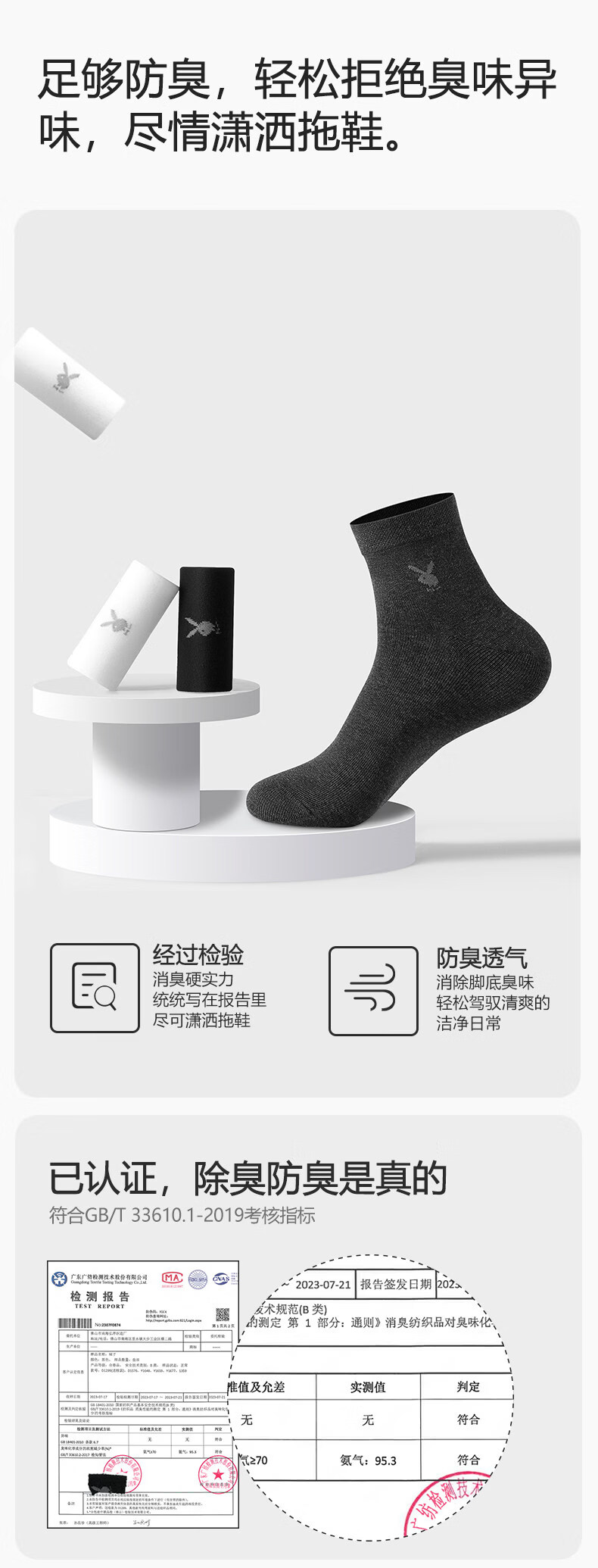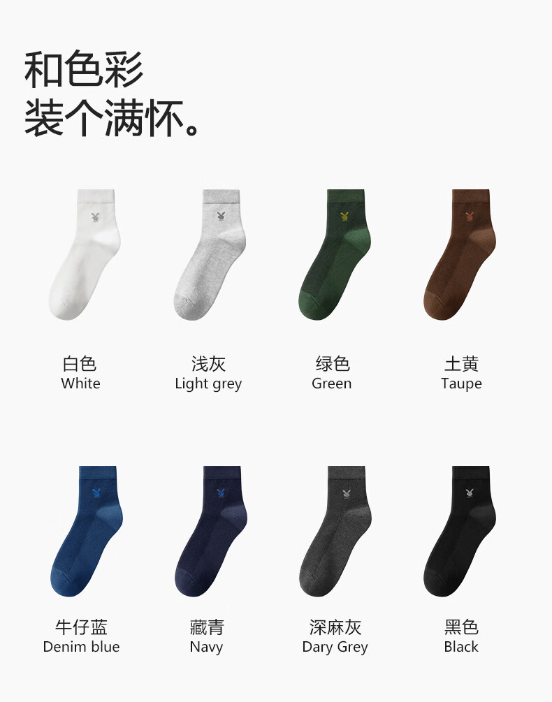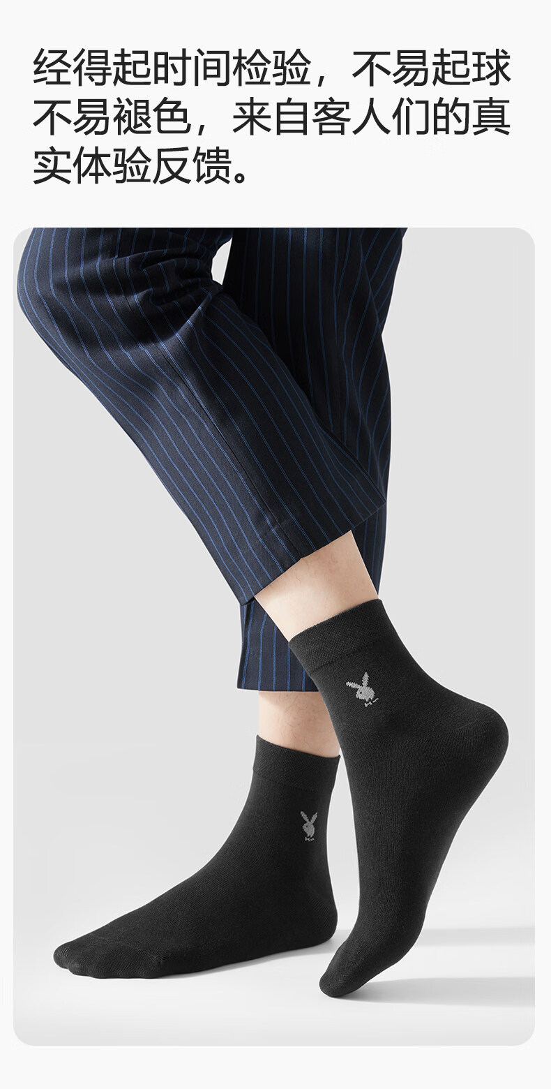Playboy (PLAYBOY) socks men's pure cotton mid-calf socks summer thin 7A anti-odor and sweat-absorbent business stockings for men 7A business casual style black 2+light hemp gray 2+navy 2 one-size-fits-all pure cotton 7A grade non-pilling brand flagship store quality assurance