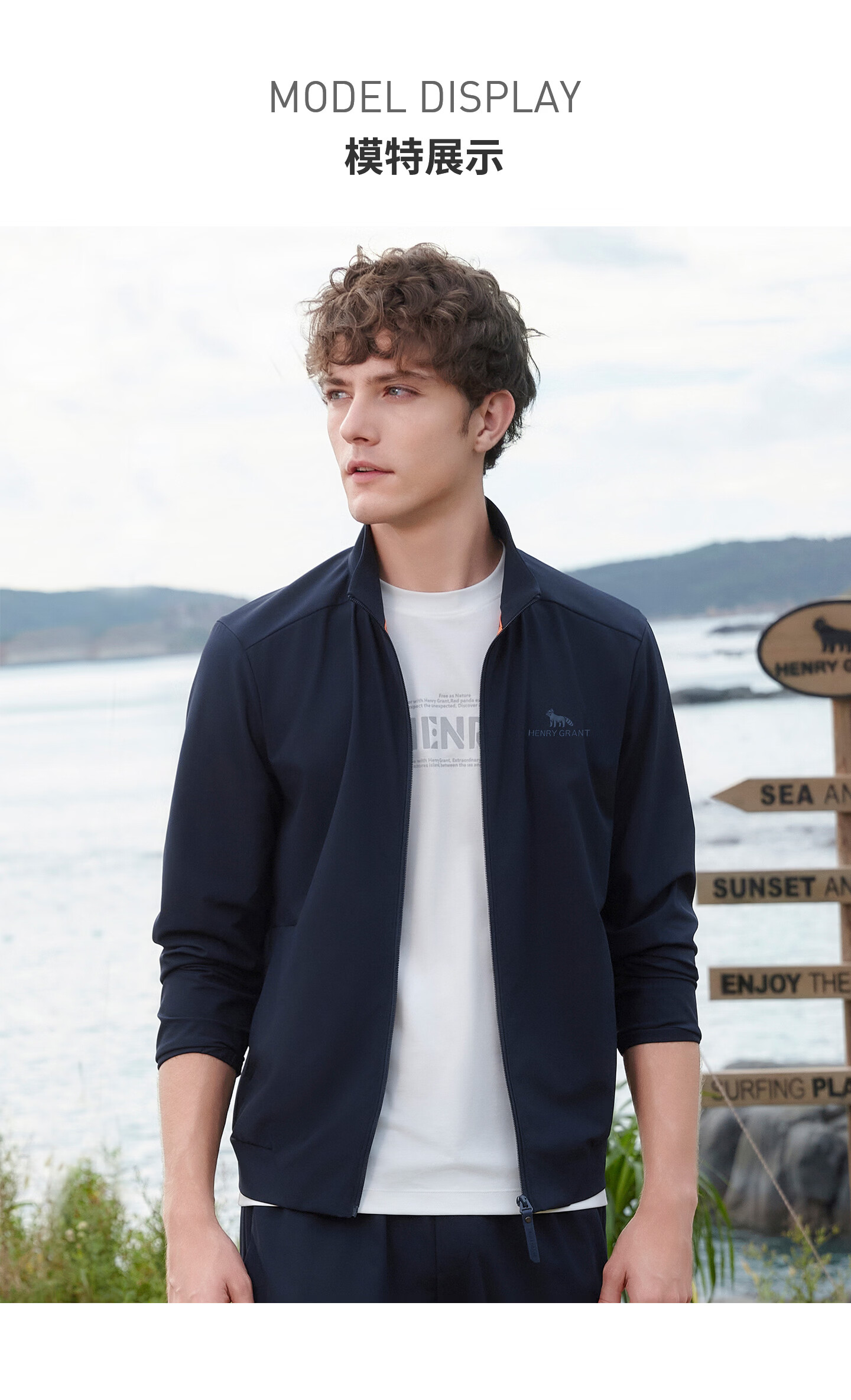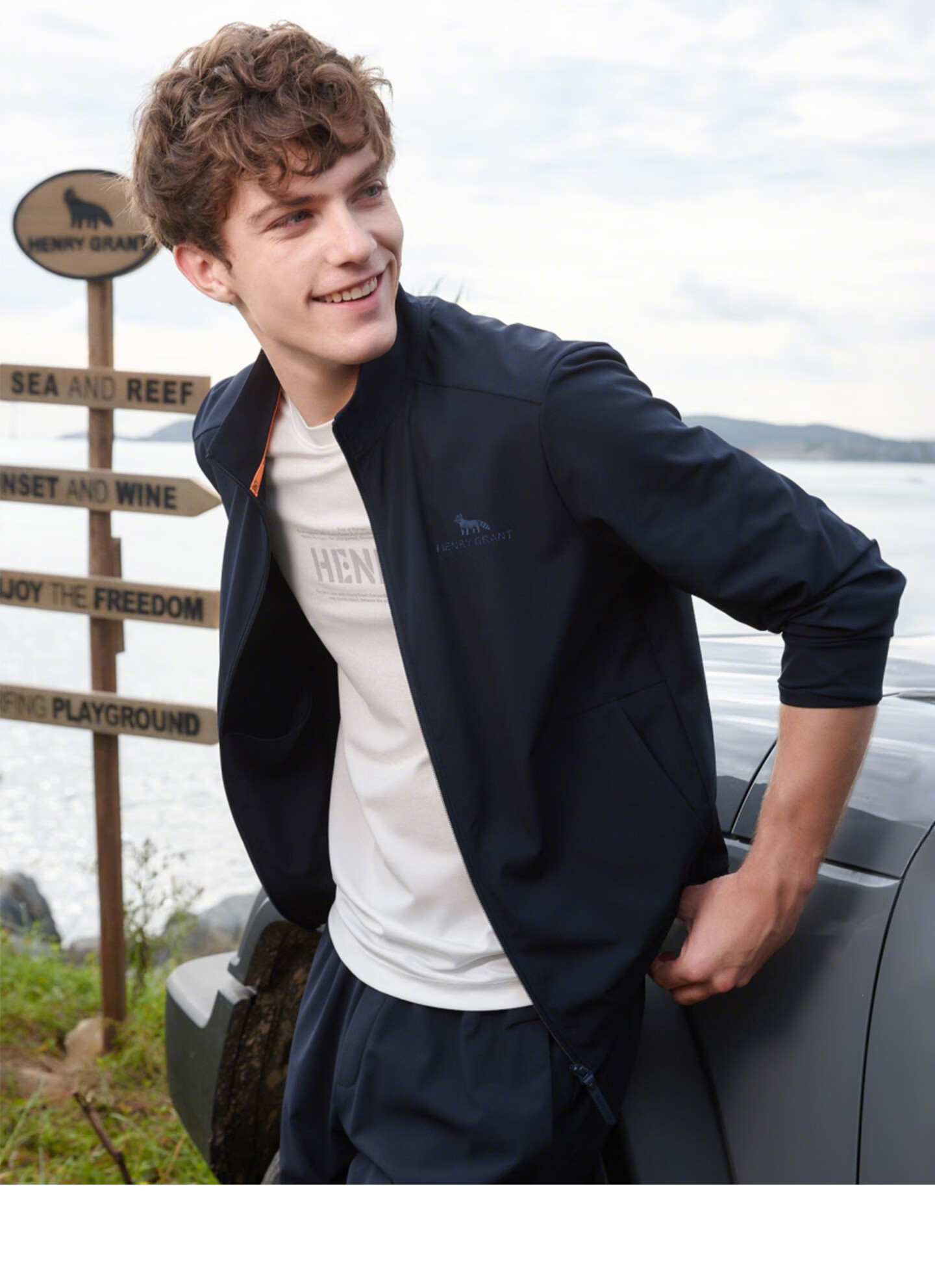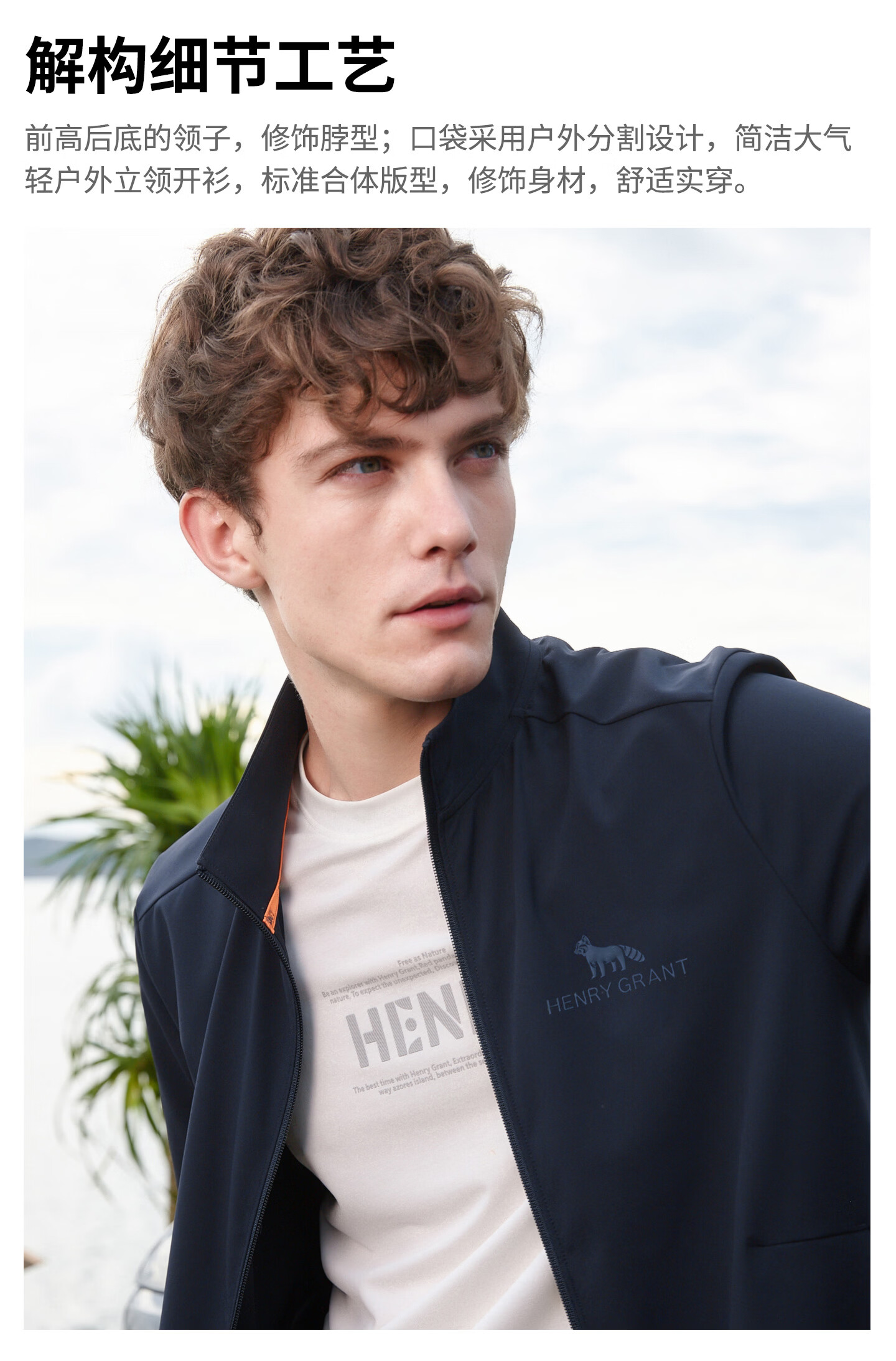 Henry Grant 2026 summer new men's stand collar jacket navy blue QEV251600U166 L 48