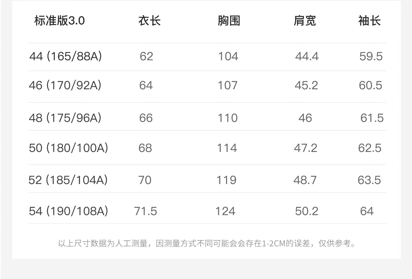 China (cm) 165 / 88-90 170 / 96-98 175 / 108-110 180 / 118-122 185 / 126-130