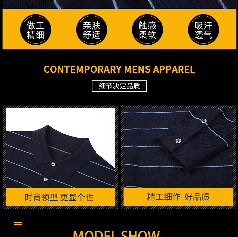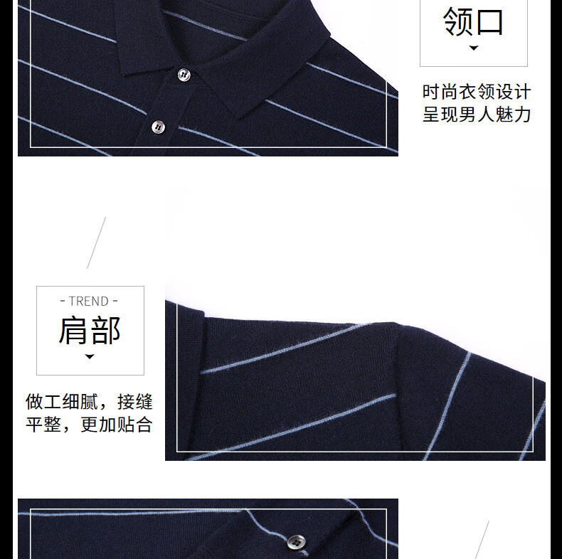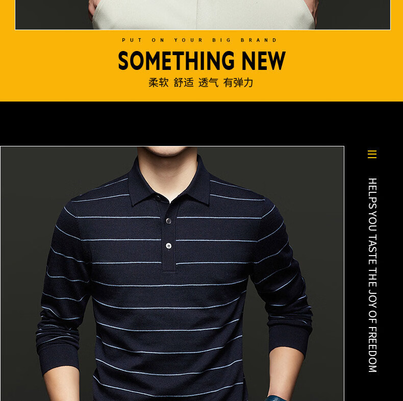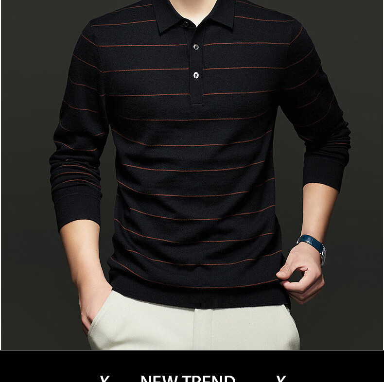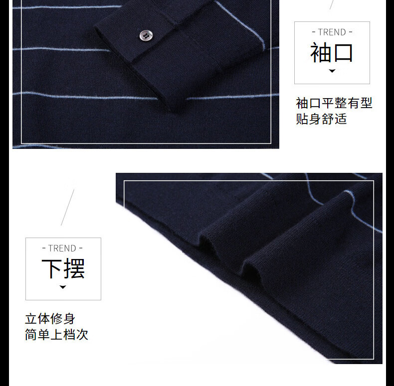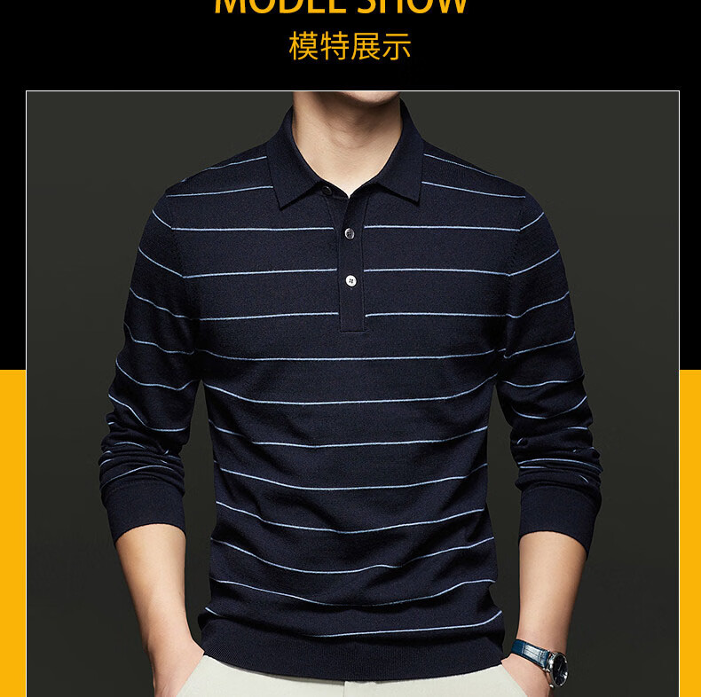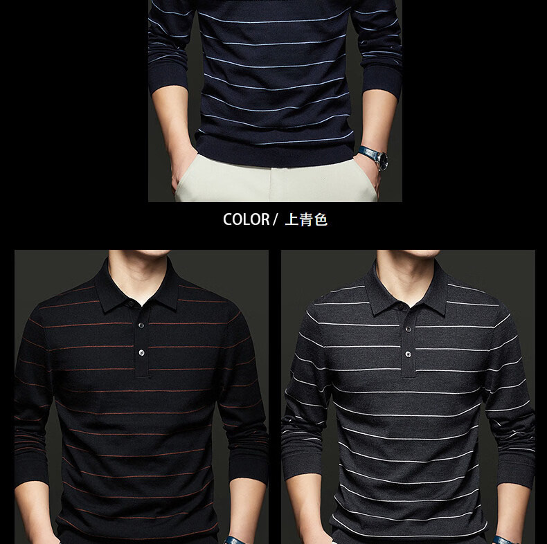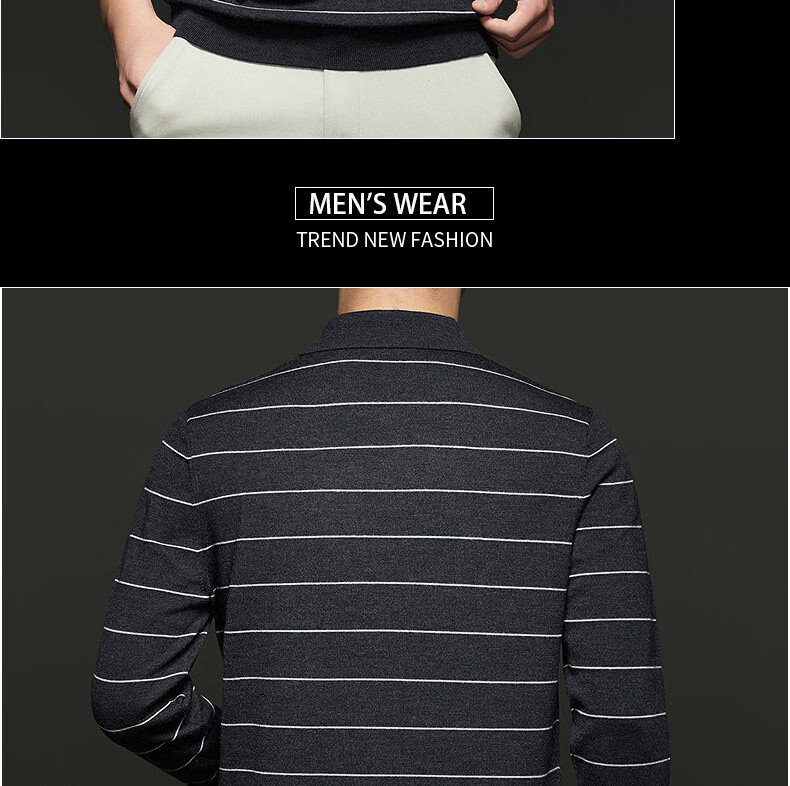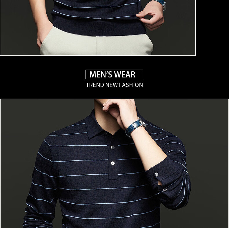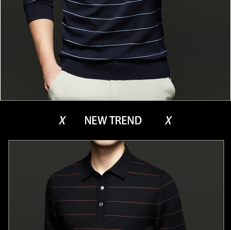 GUSKI light luxury brand high-end men's clothing spring and autumn new style wool polo lapel sweater striped inner casual bottoming shirt upper cyan exquisite gift box S (165)