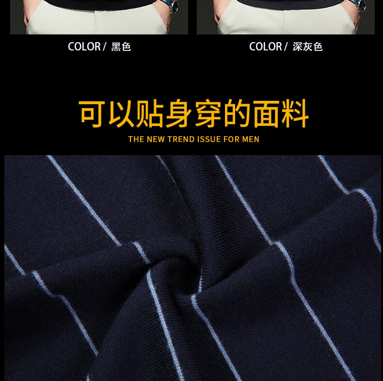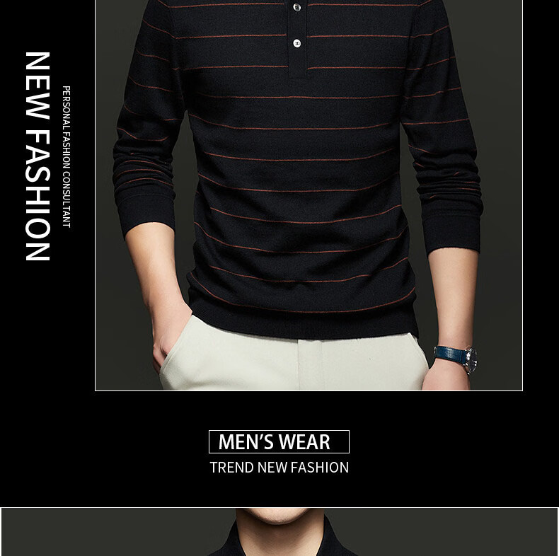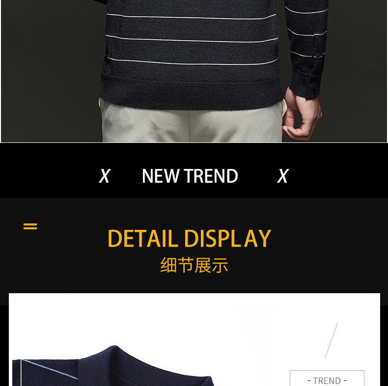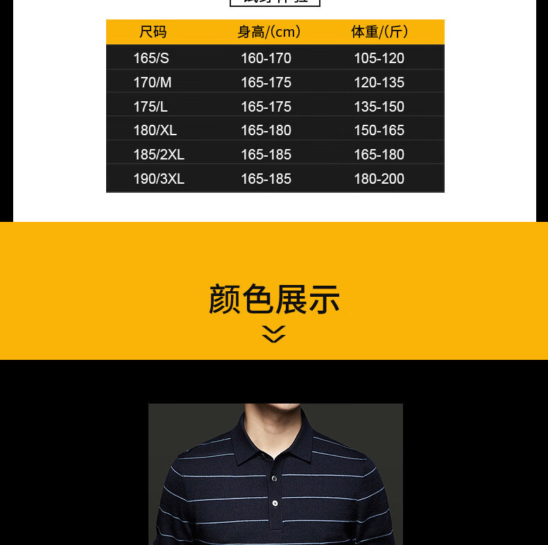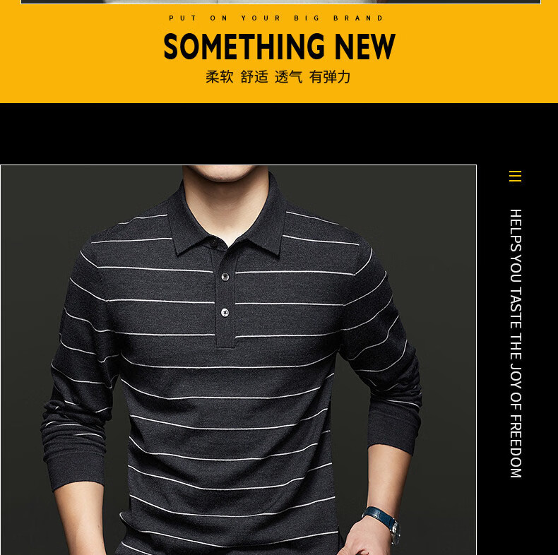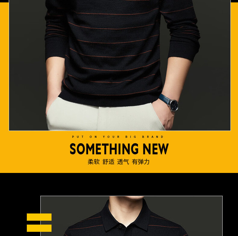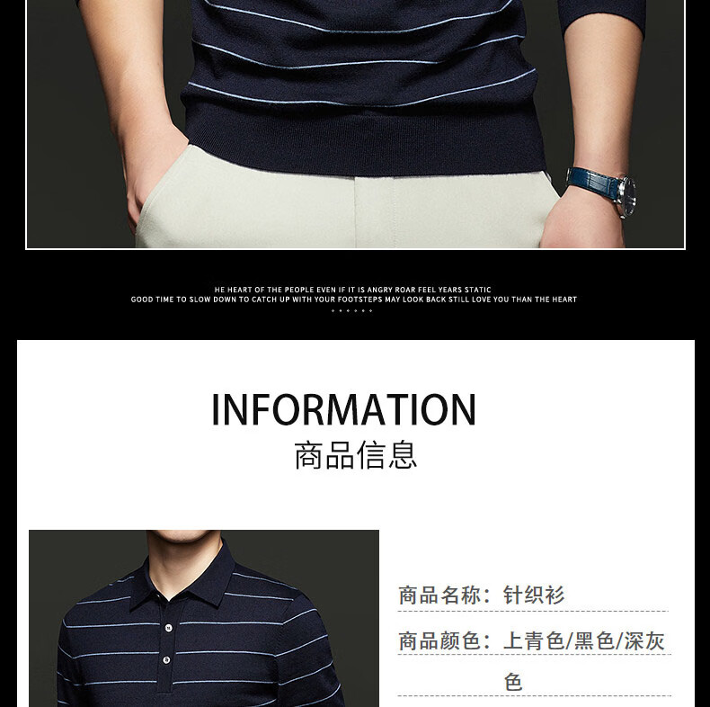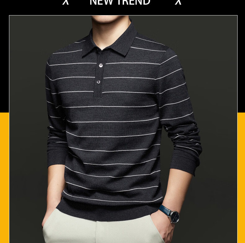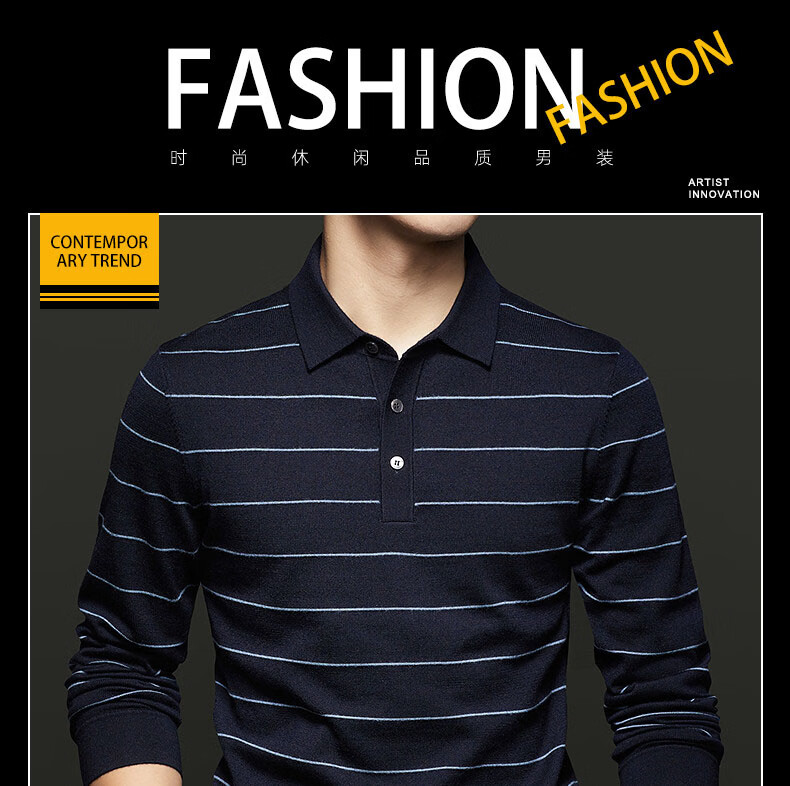 GUSKI light luxury brand high-end men's clothing spring and autumn new style wool polo lapel sweater striped inner casual bottoming shirt upper cyan exquisite gift box S (165)