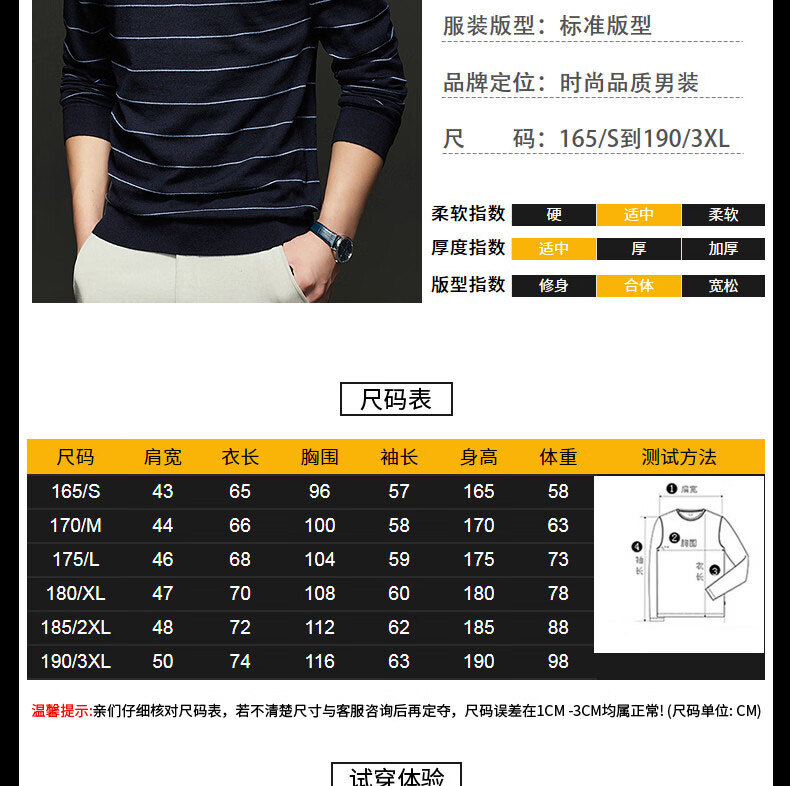 China (cm) 165 / 88-90 170 / 96-98 175 / 108-110 180 / 118-122 185 / 126-130