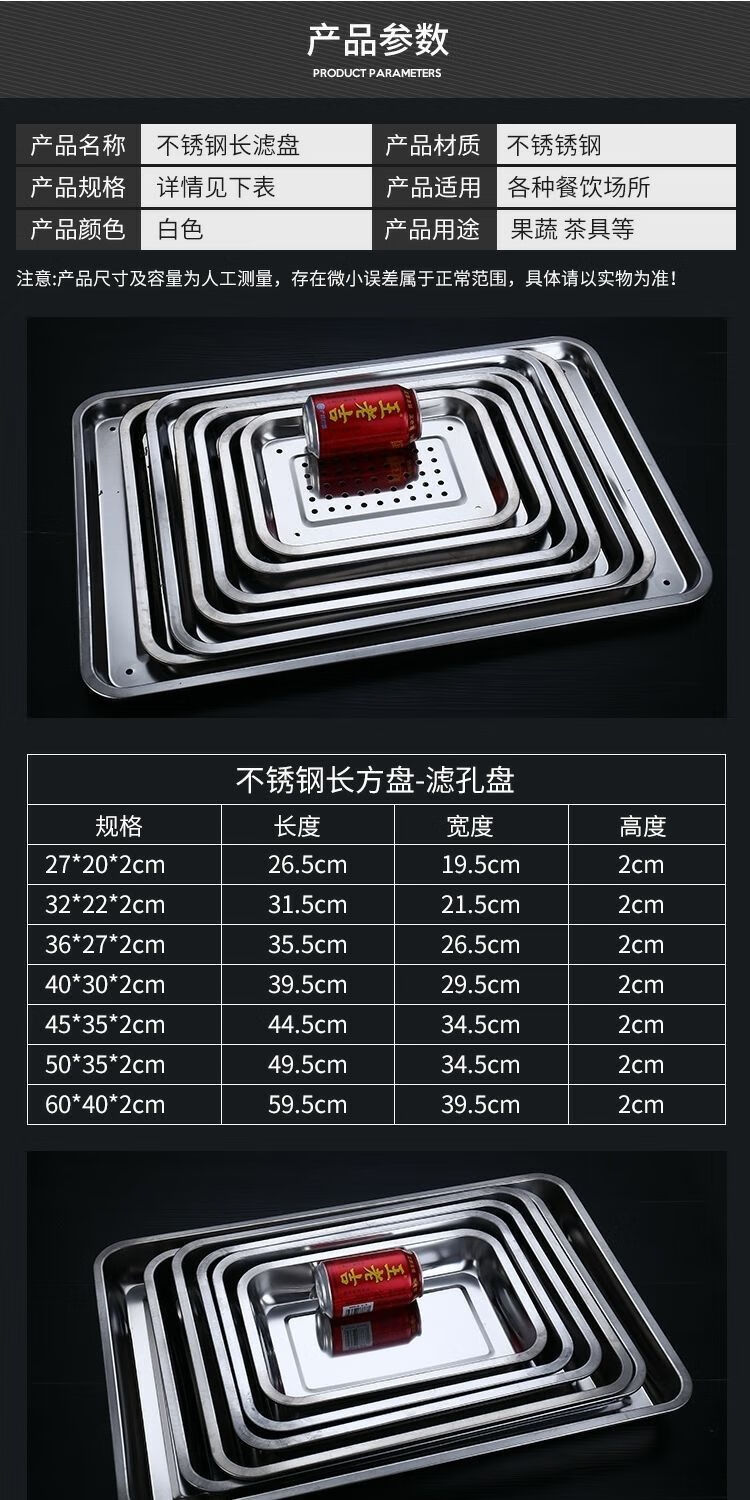 Pick up cat stainless steel leaking tray rectangular tea tray household dumpling draining tray leaking tray filter leaking draining tray punching tray 60*40*2 + draining tray 7cm