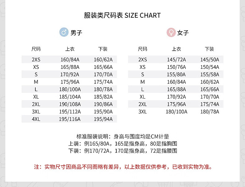 China (cm) 160-165/84-86 165-170 / 88-90 167-172 / 92-96 168-173 / 98-102 170-176 / 106-110