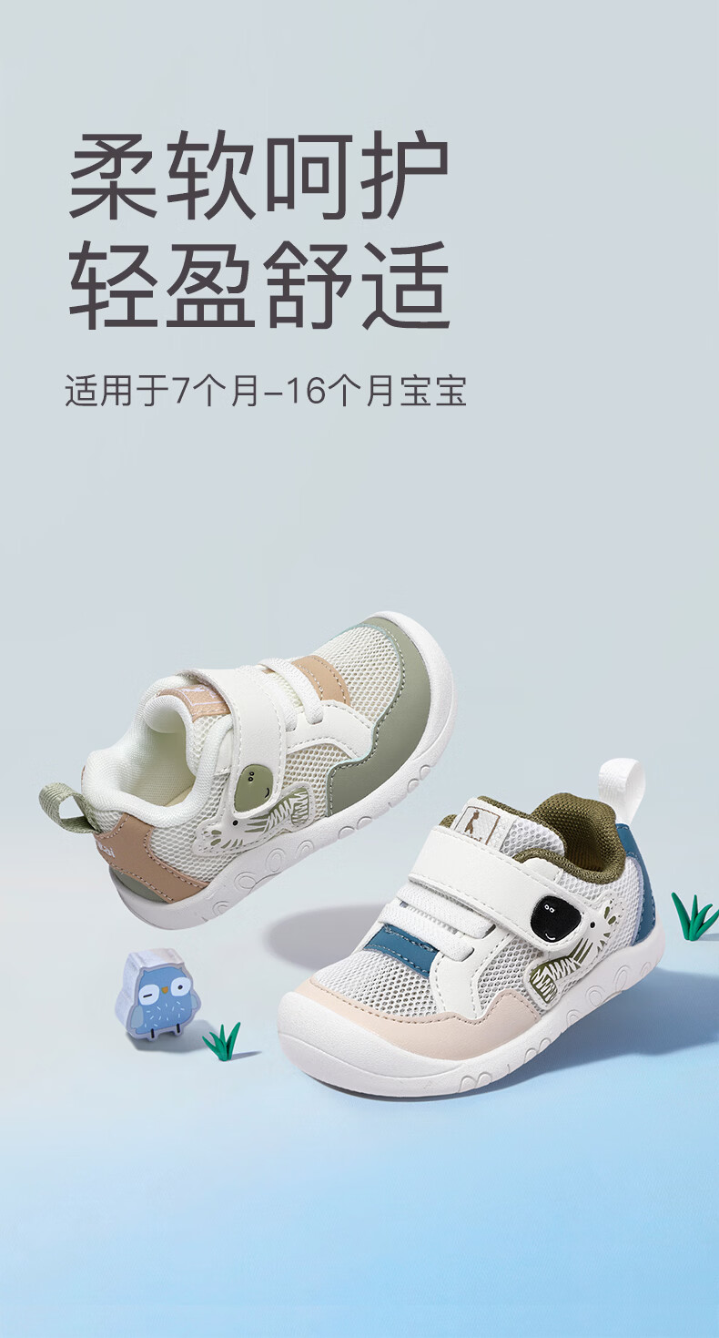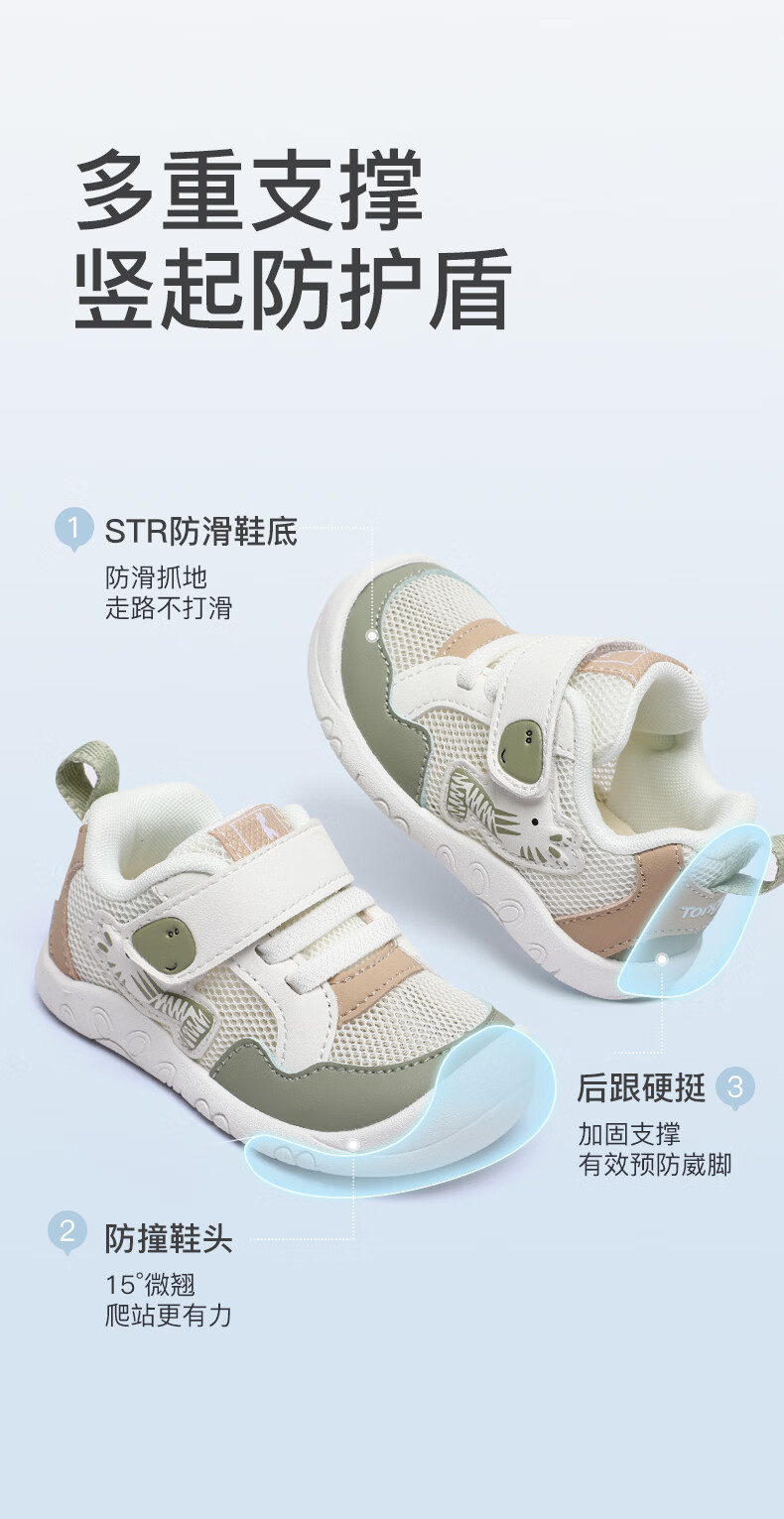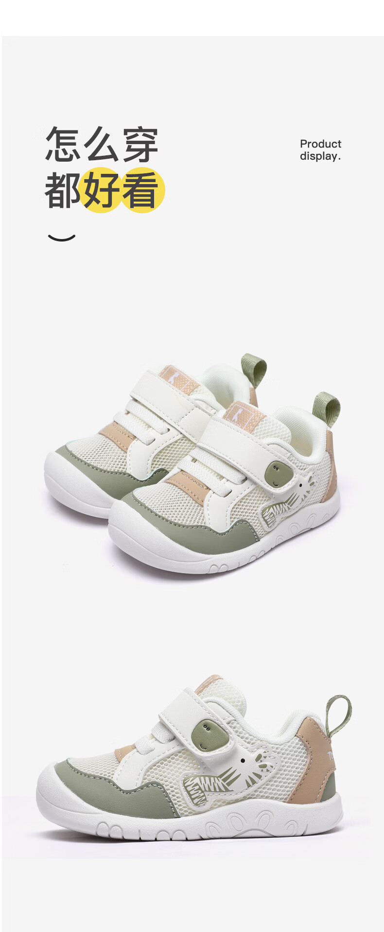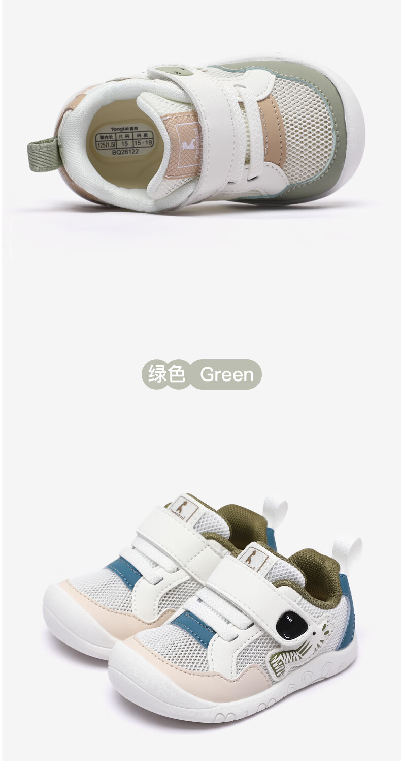 Tongtai toddler shoes two-stage anti-slip and anti-kick baby shoes mesh breathable new baby functional shoes soft and lightweight apricot green single layer 14 inner length 14cm
