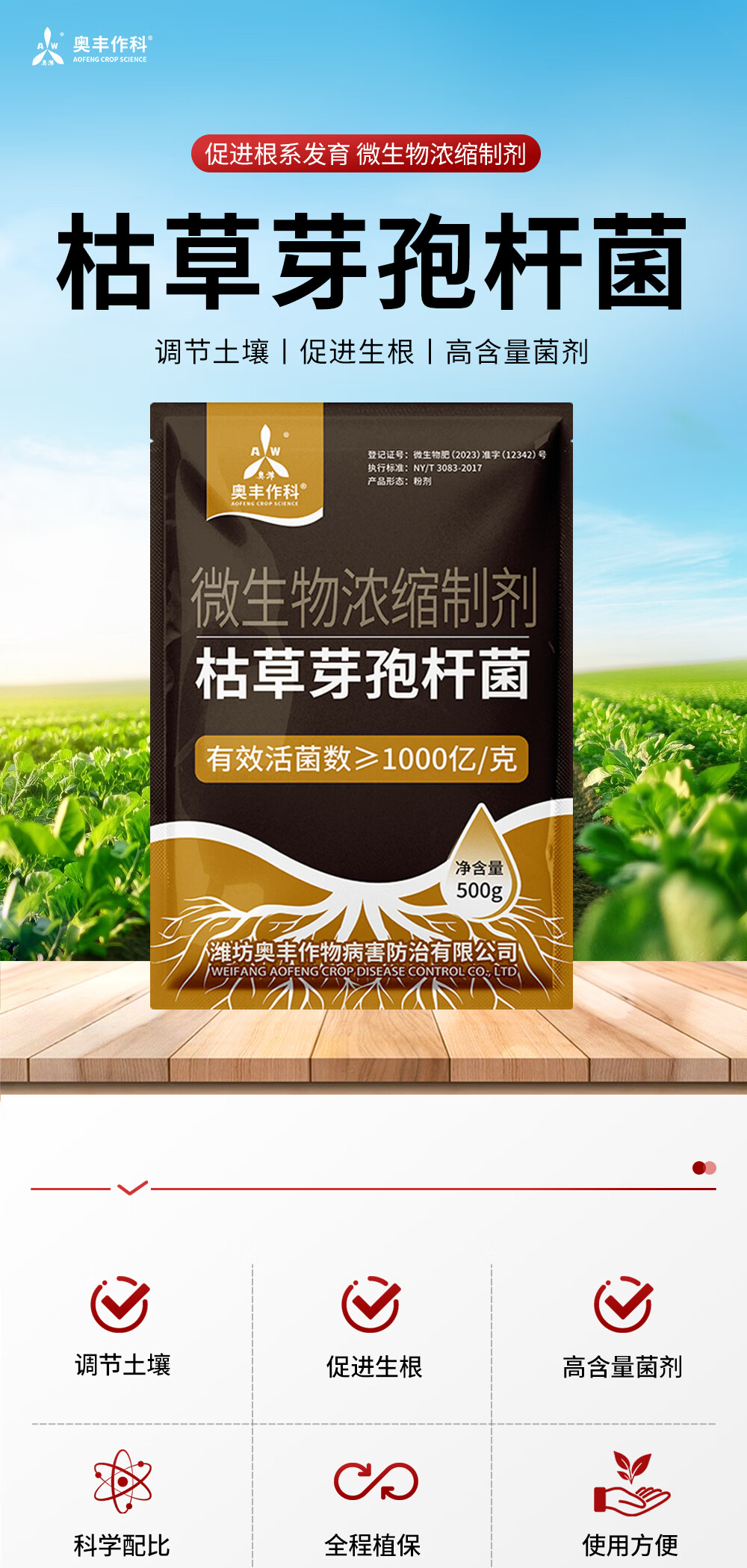 Aowei Aofeng Bacillus subtilis genuine microbial agent regulates loose soil and promotes rooting for agricultural use high content 500g*20 bags