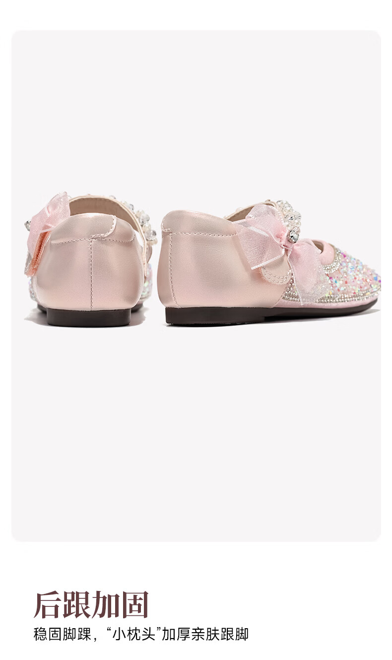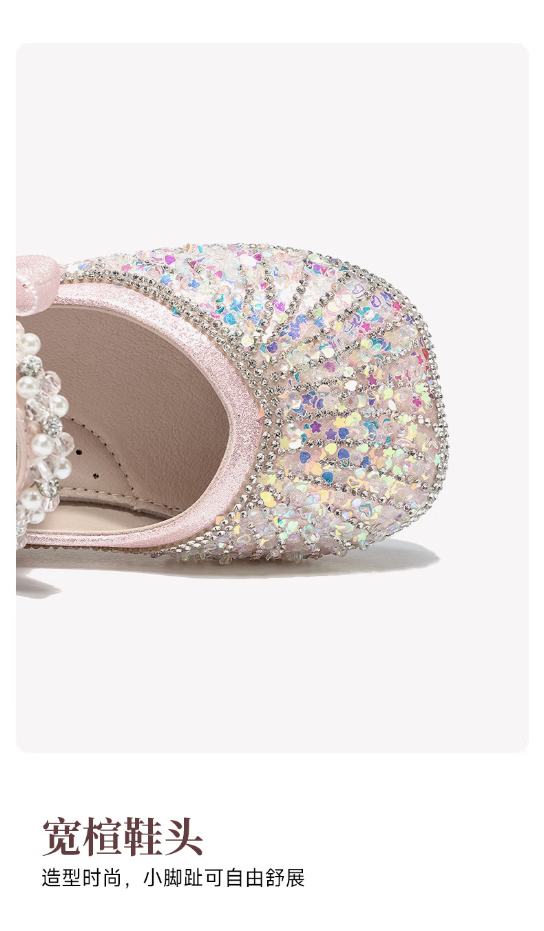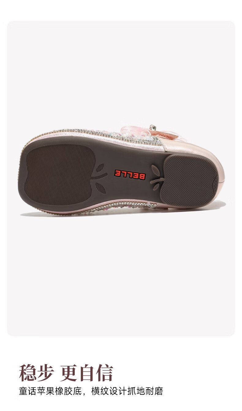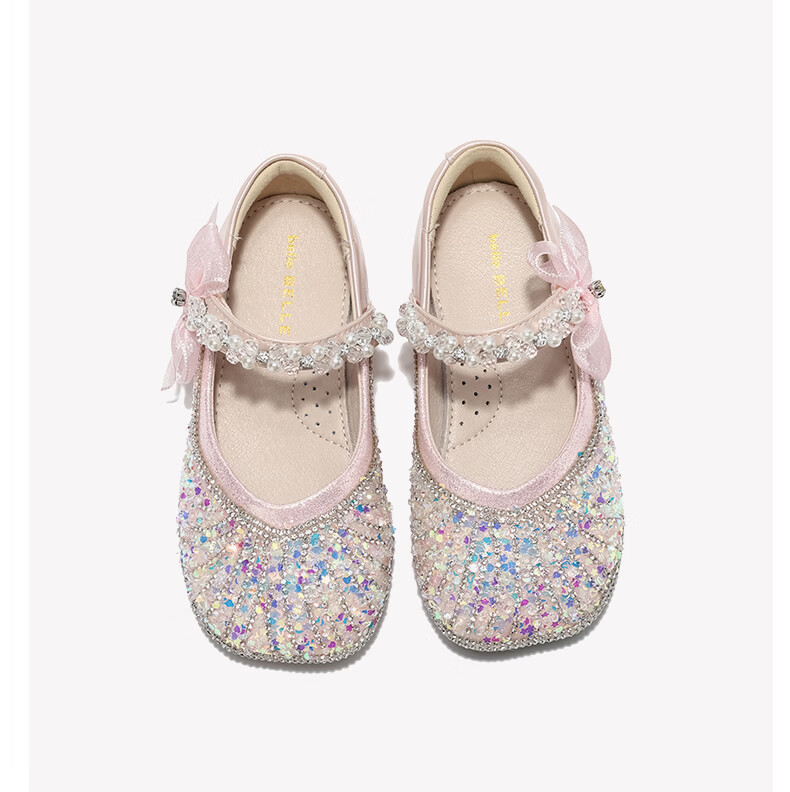 Belle Children's Shoes 26 Spring New Products Girls Crystal Bow Shoes Princess Shoes Female Baby Performance Shoes Baby Children's Leather Shoes Pink 25 Suitable for feet about 14.9-15.3cm long