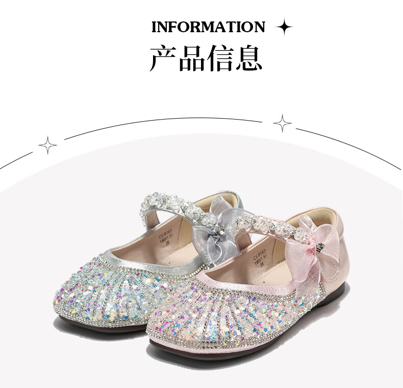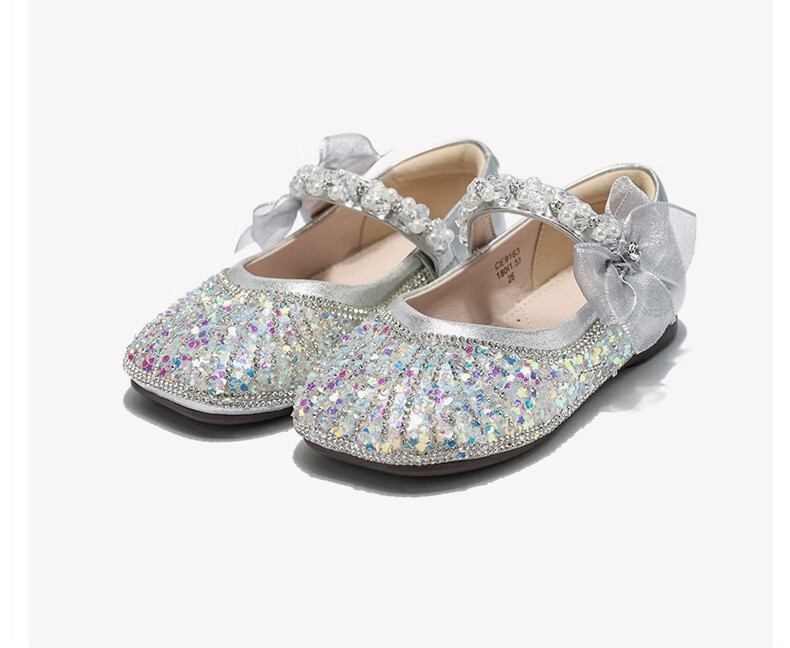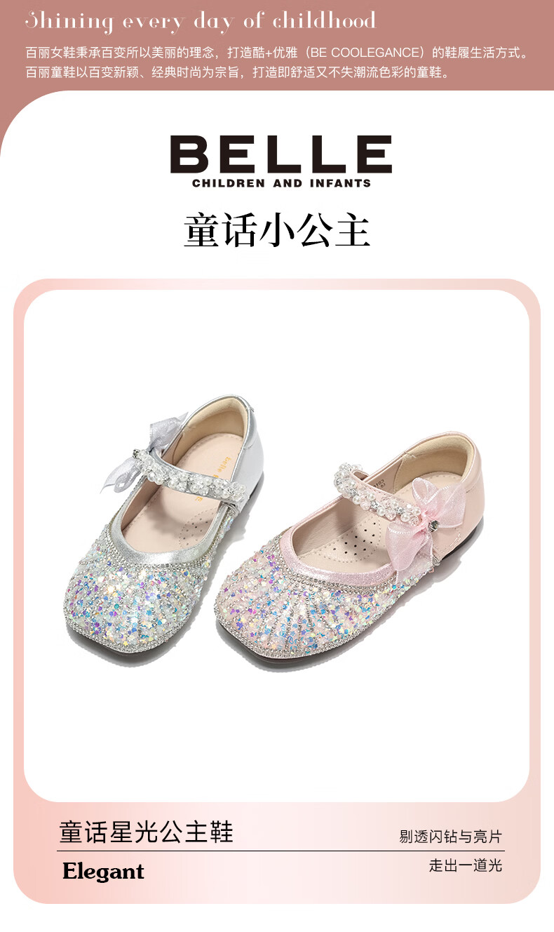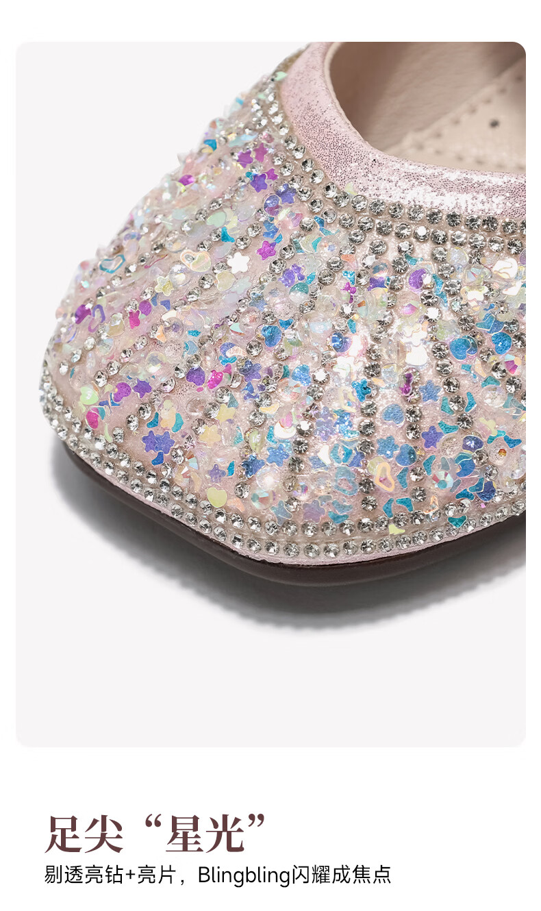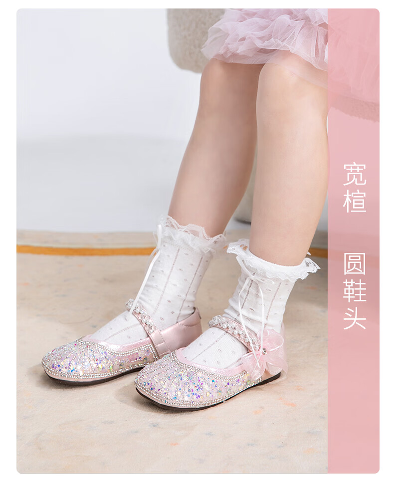 Belle Children's Shoes 26 Spring New Products Girls Crystal Bow Shoes Princess Shoes Female Baby Performance Shoes Baby Children's Leather Shoes Pink 25 Suitable for feet about 14.9-15.3cm long