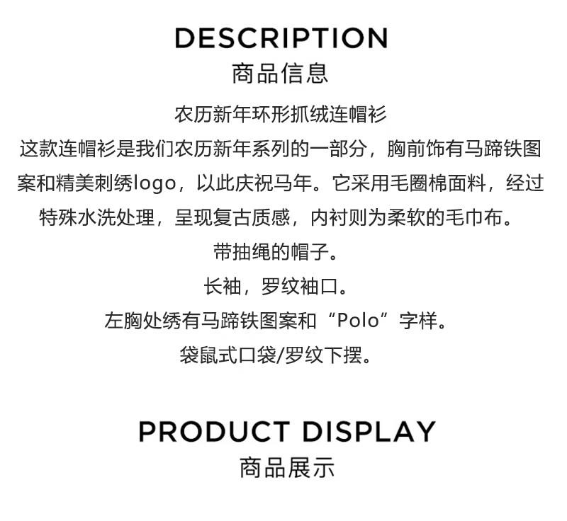 RALPH LAUREN Ralph Lauren Men's Pullover Sweatshirt 26 Year of the Horse Limited Large Pocket Horseshoe Pattern Ring Commuting Casual Fleece Hoodie Zodiac Year New Year Red S