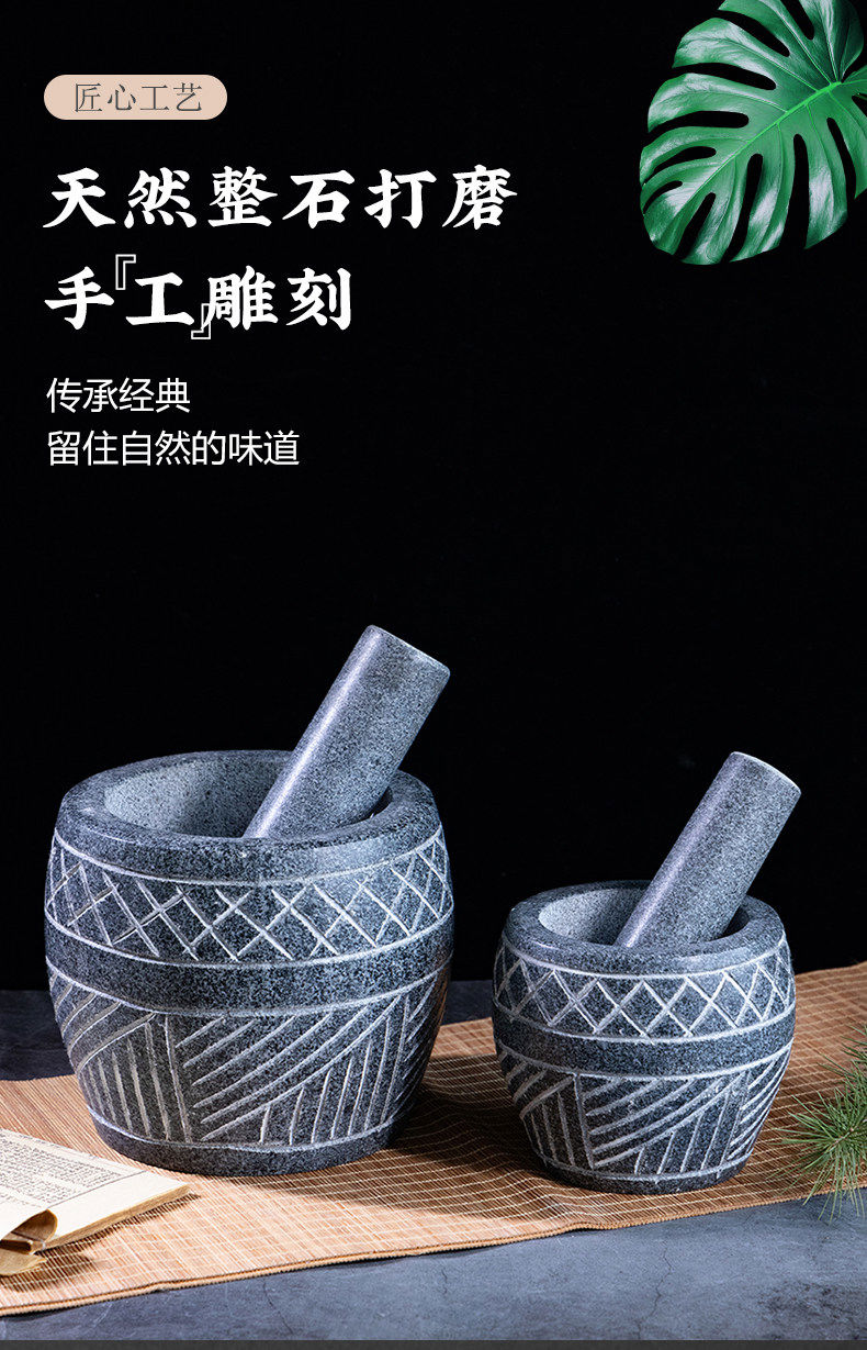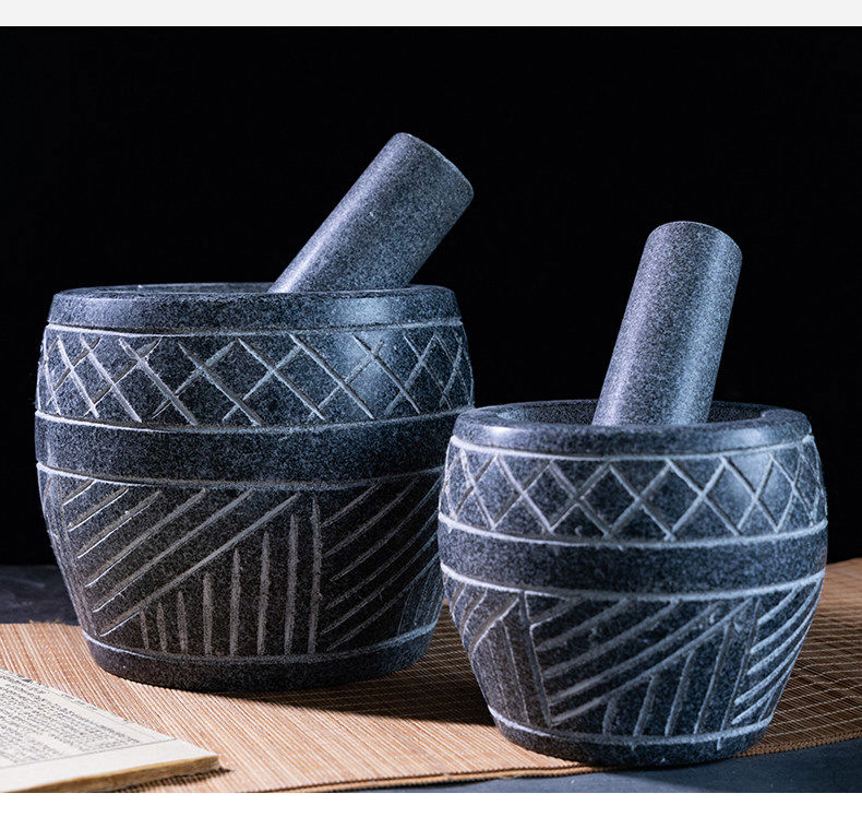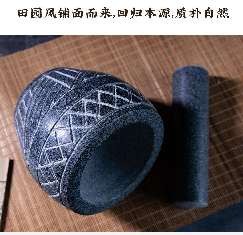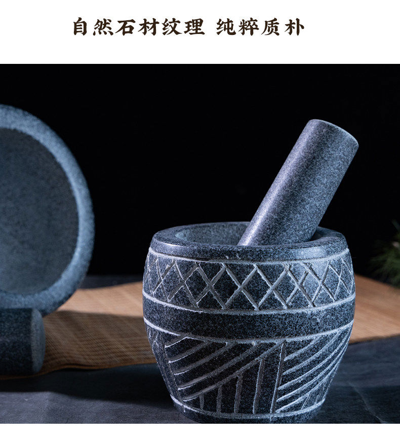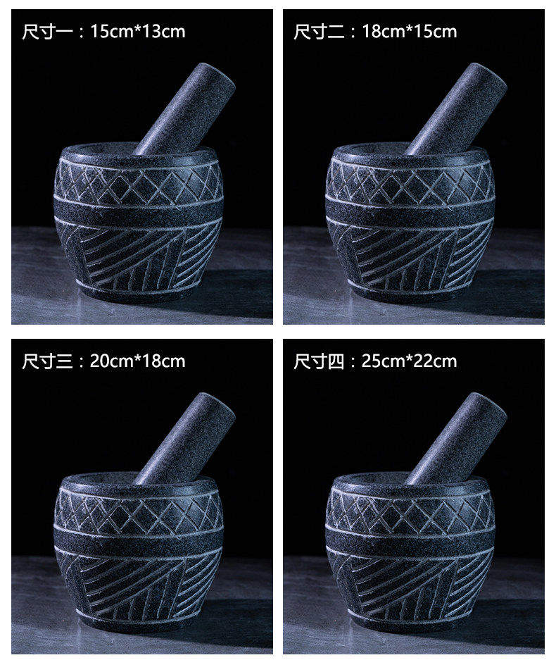 Black stone bluestone hand-carved stone mortar, garlic mortar, garlic pounder, bowl and mortar grinder, jar pounder, black stone carving number 14 cm diameter stone mortar