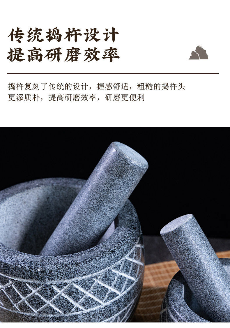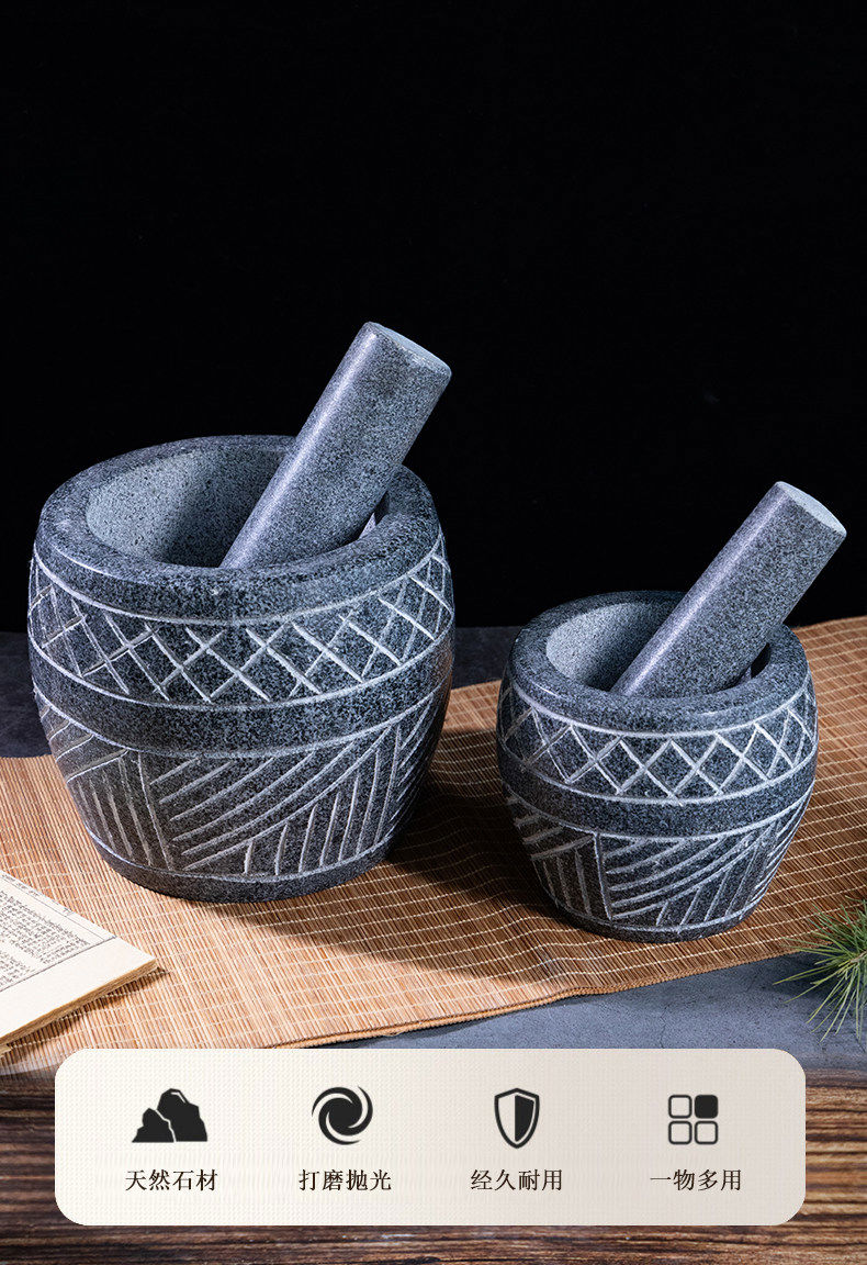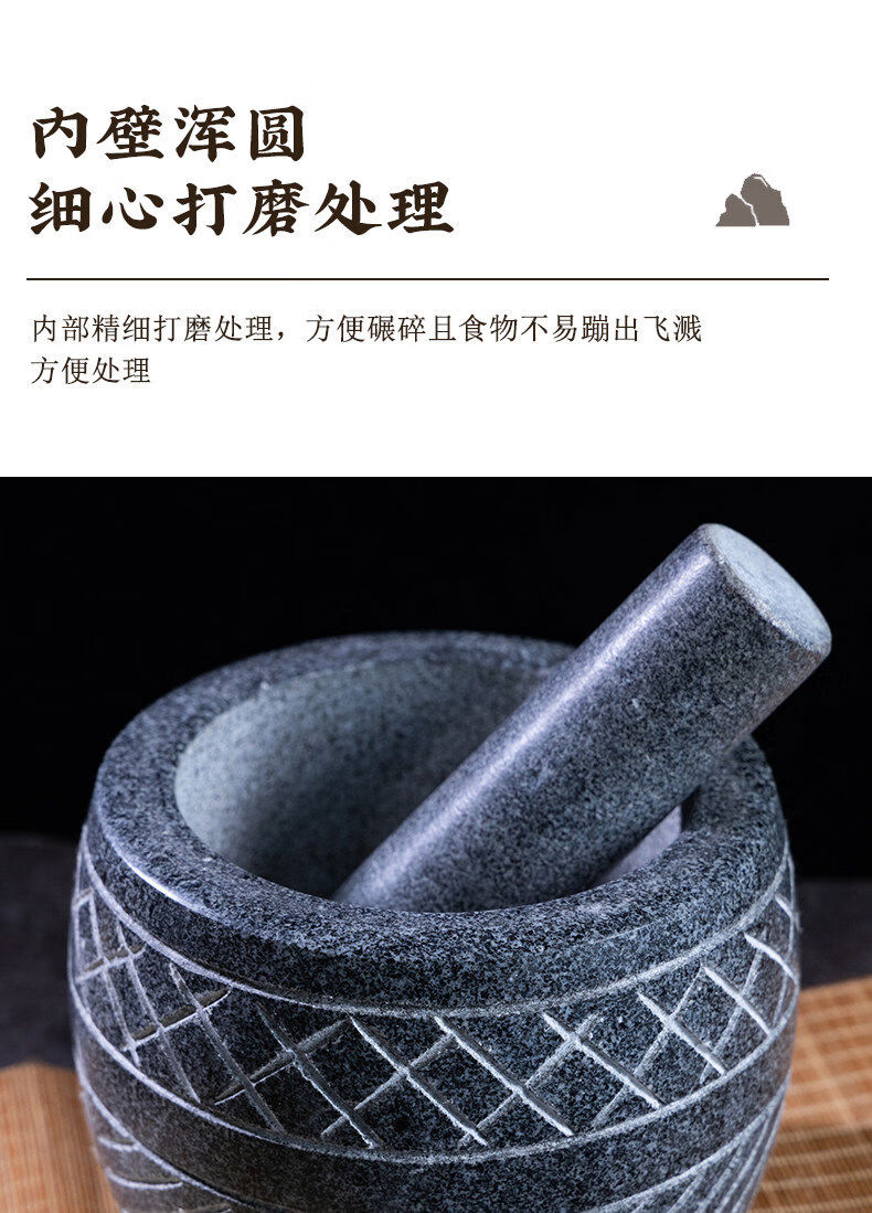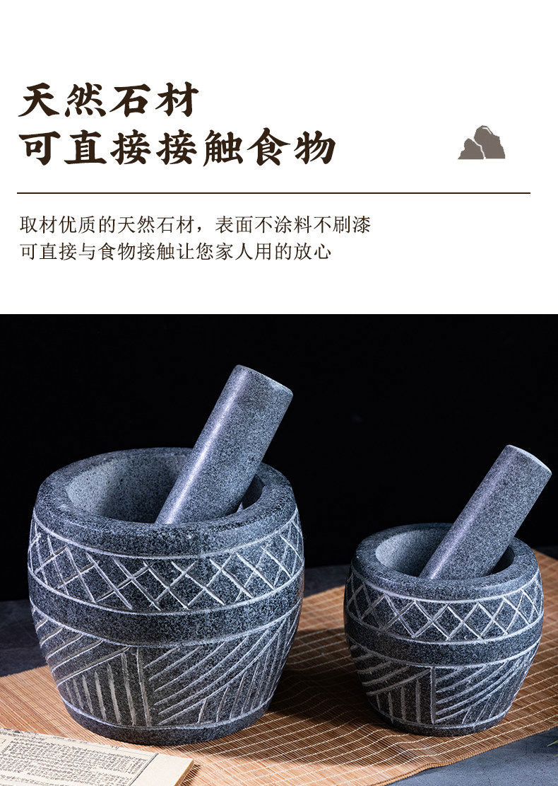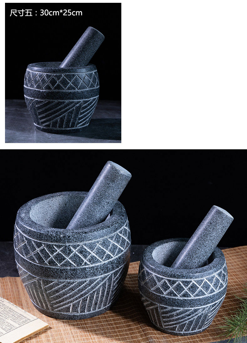 Black stone bluestone hand-carved stone mortar, garlic mortar, garlic pounder, bowl and mortar grinder, jar pounder, black stone carving number 14 cm diameter stone mortar