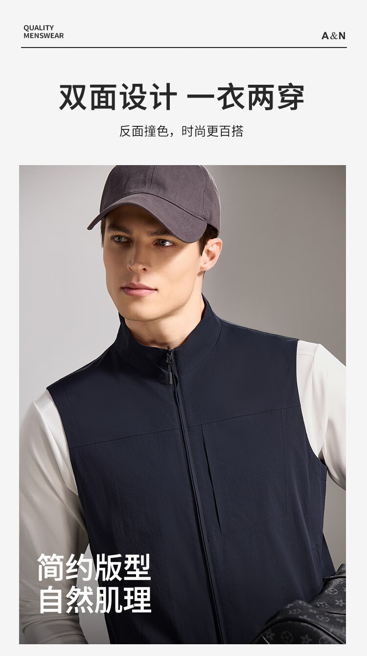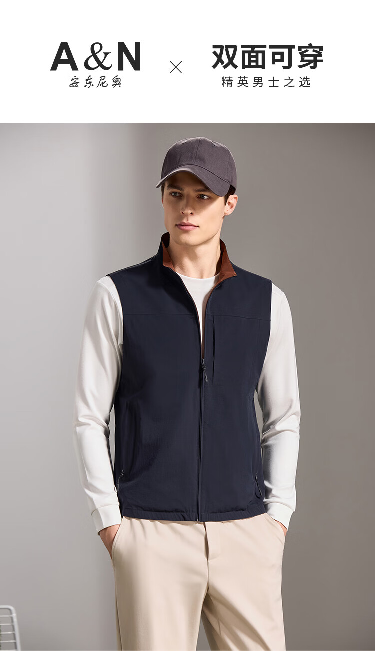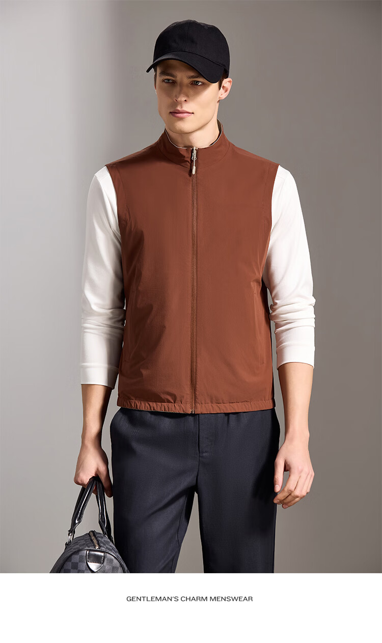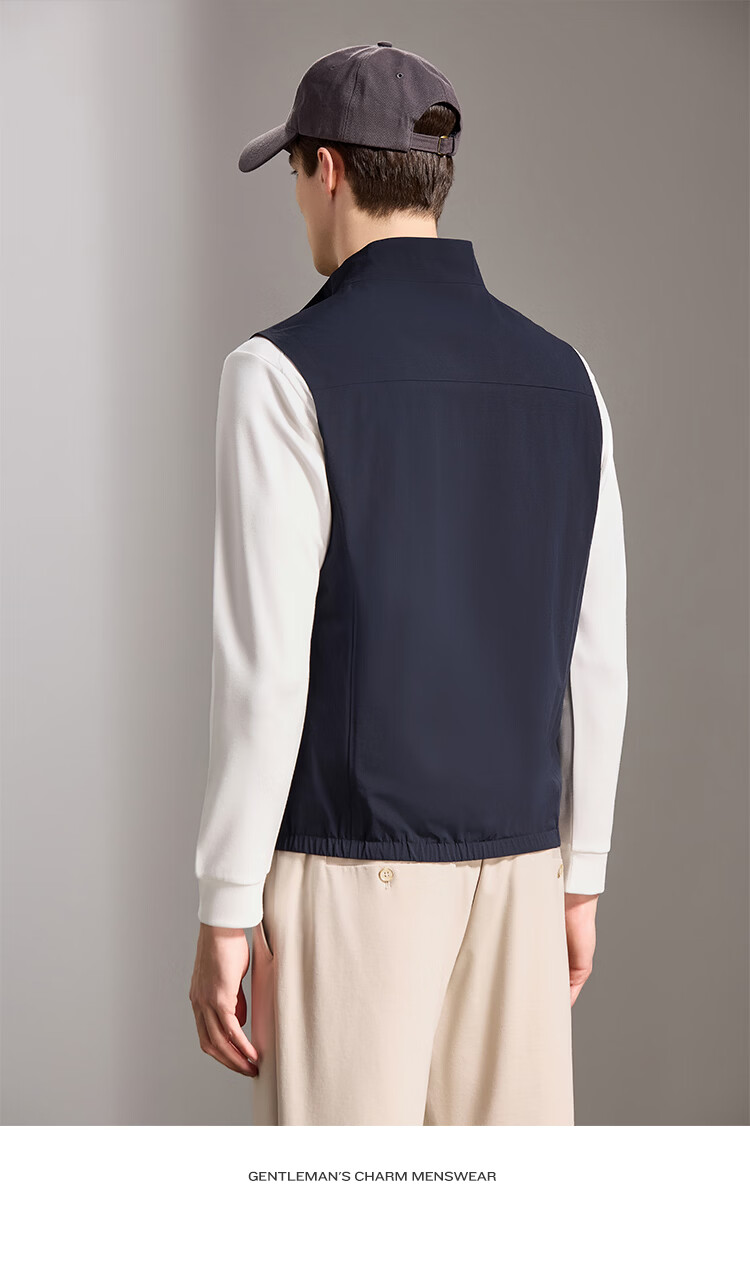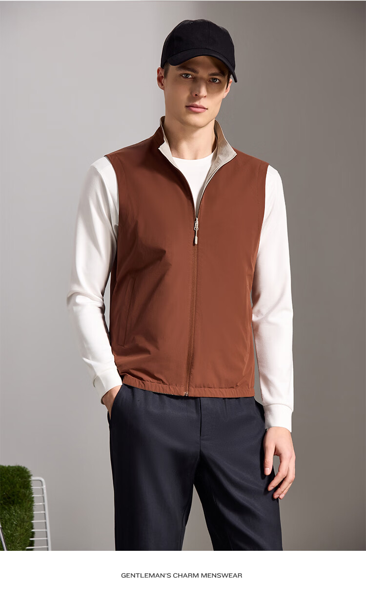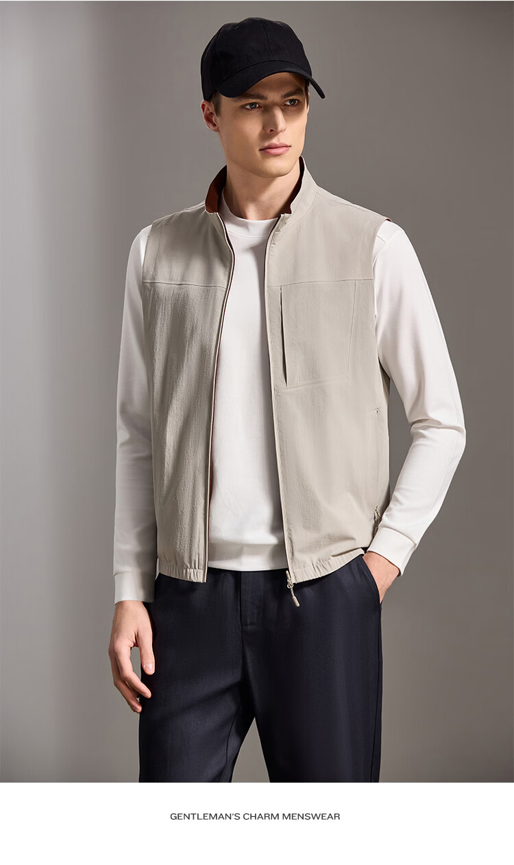 Antonio reversible early spring men's light and comfortable stand-up collar vest fashion simple short waistcoat vest for men off-white M /48 170/88A