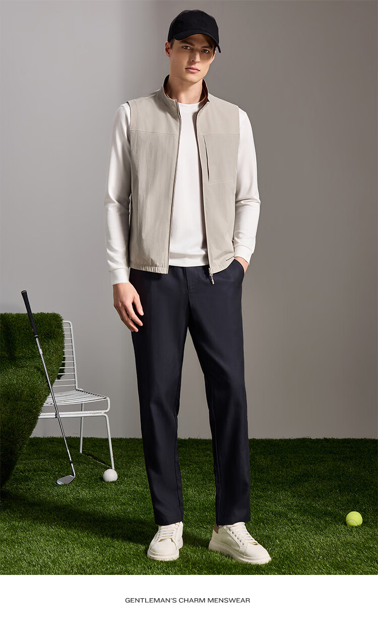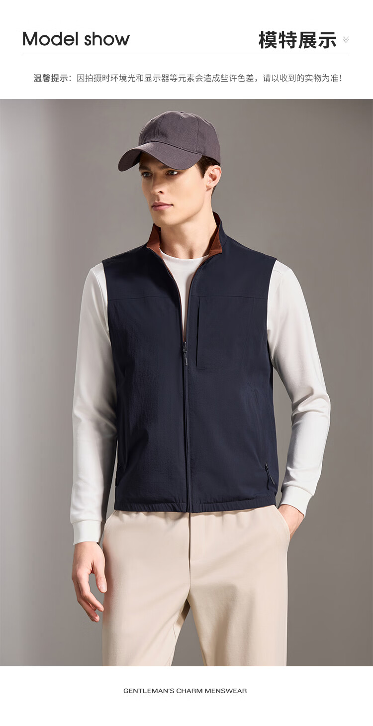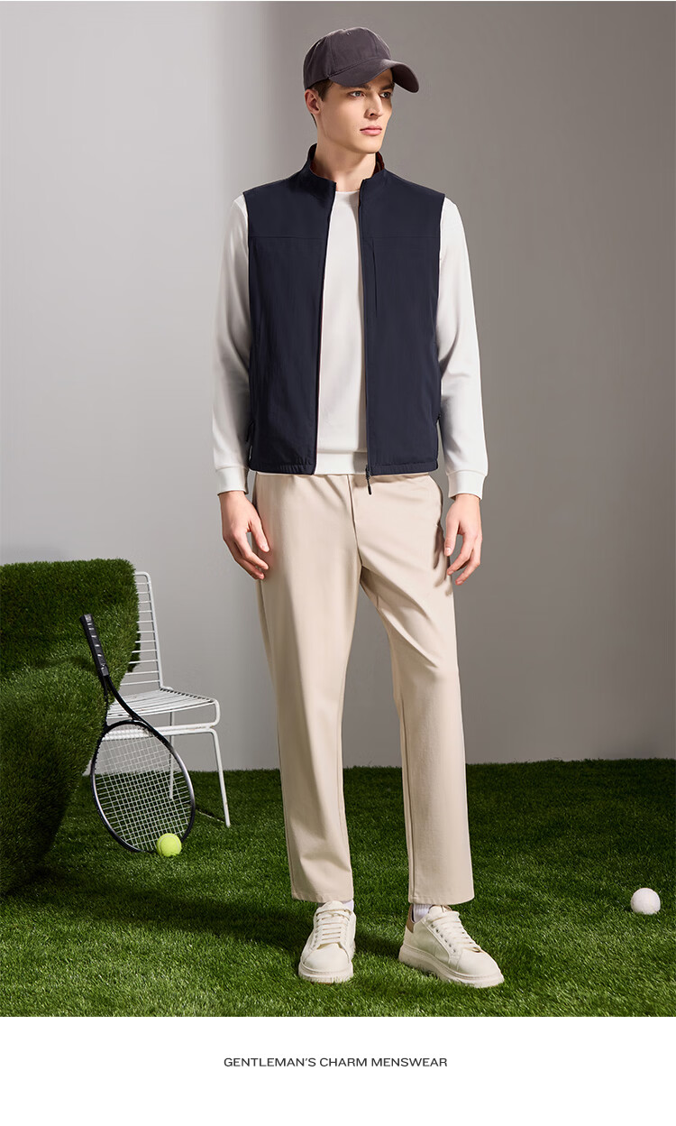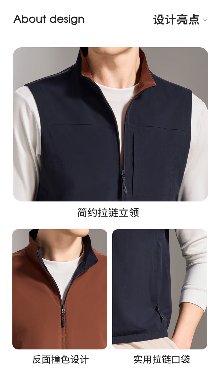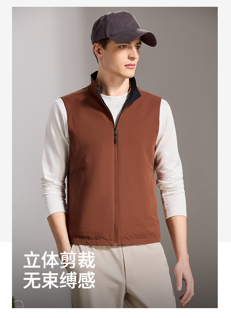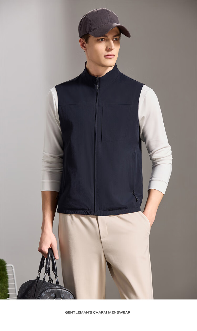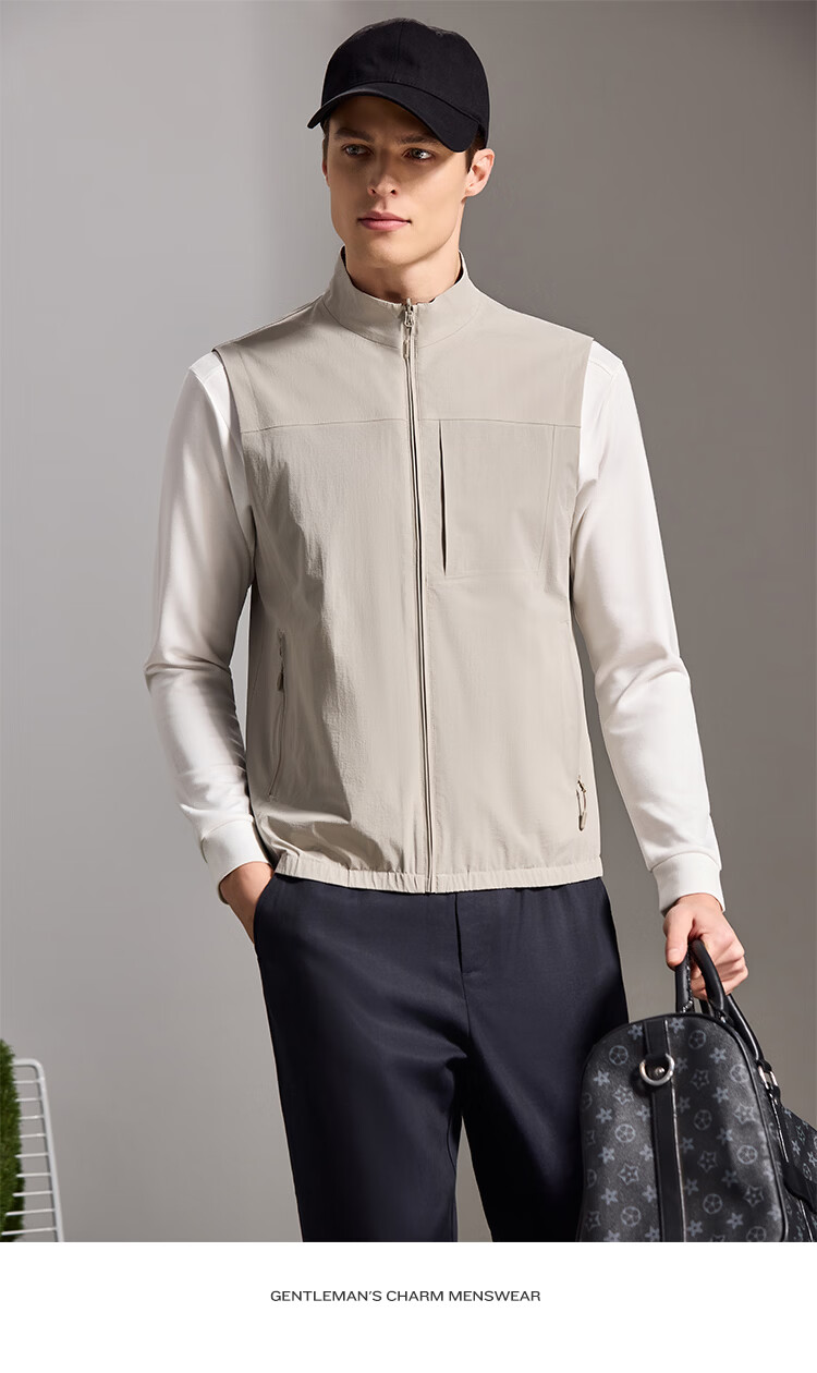 Antonio reversible early spring men's light and comfortable stand-up collar vest fashion simple short waistcoat vest for men off-white M /48 170/88A