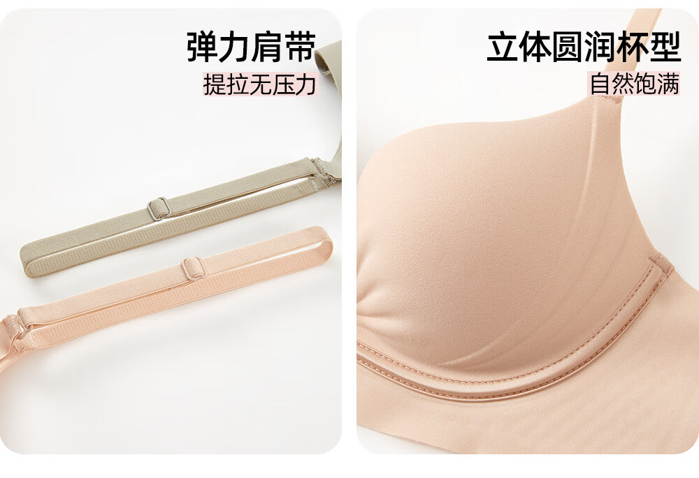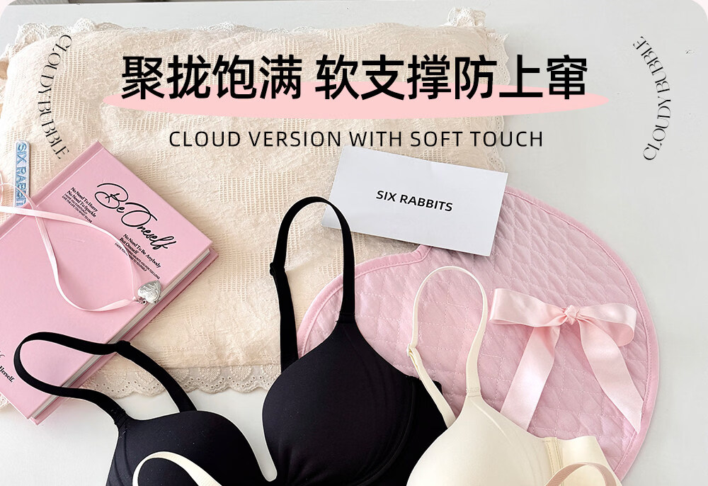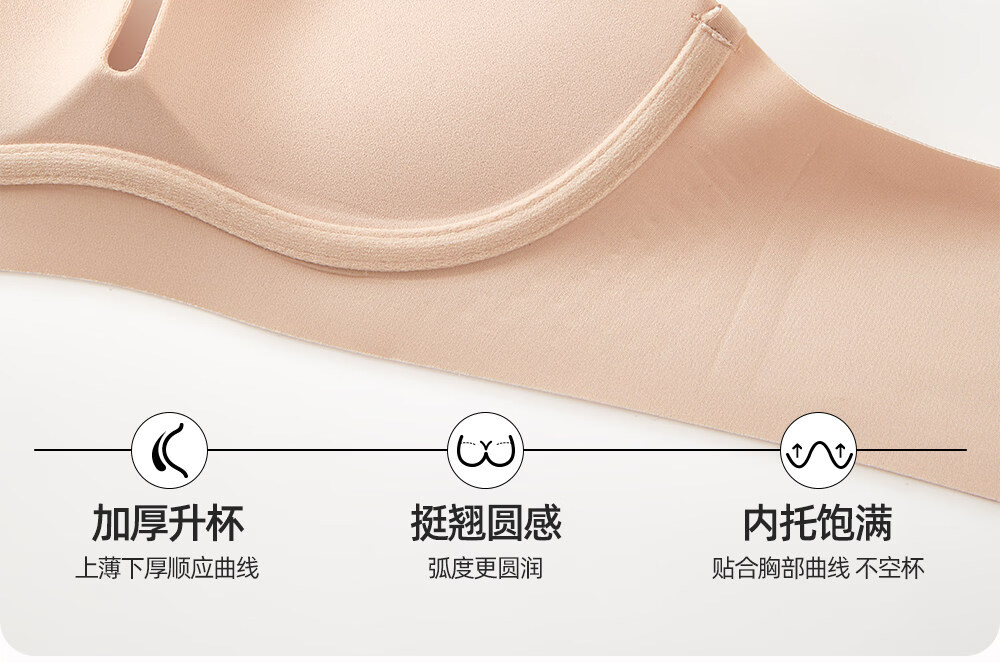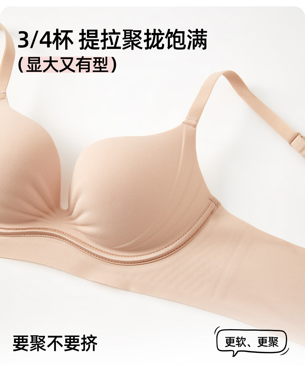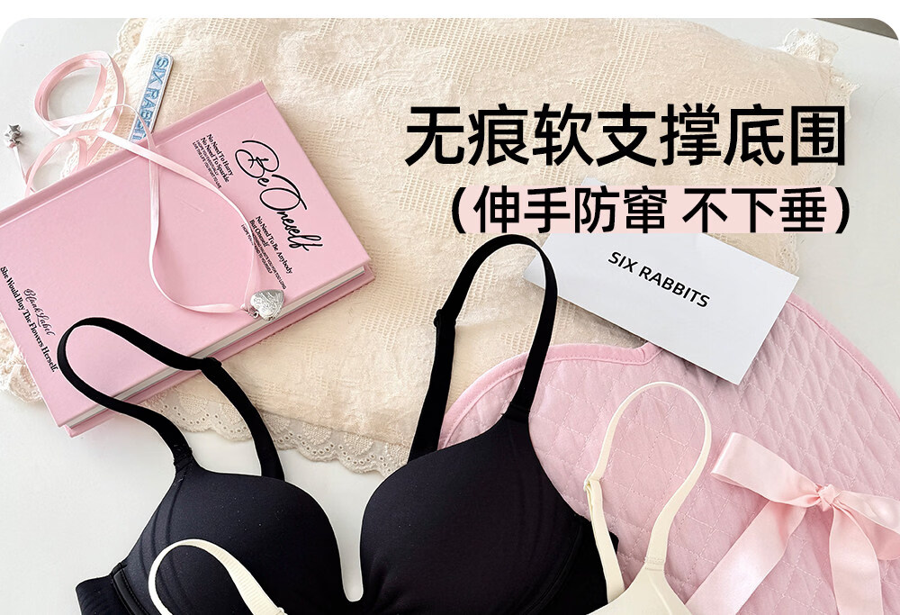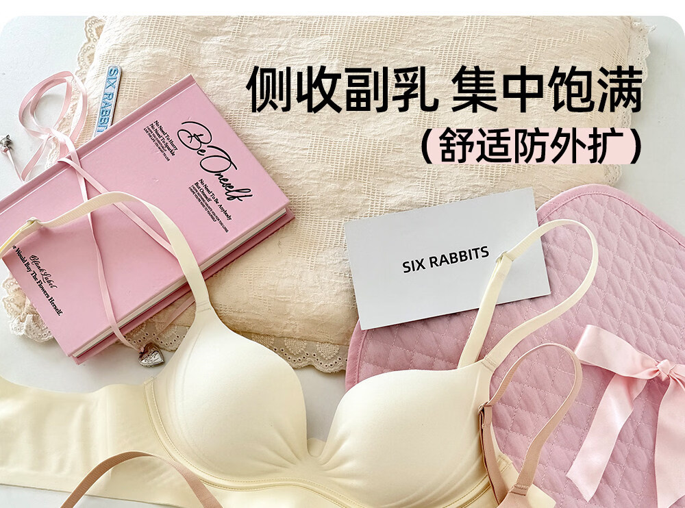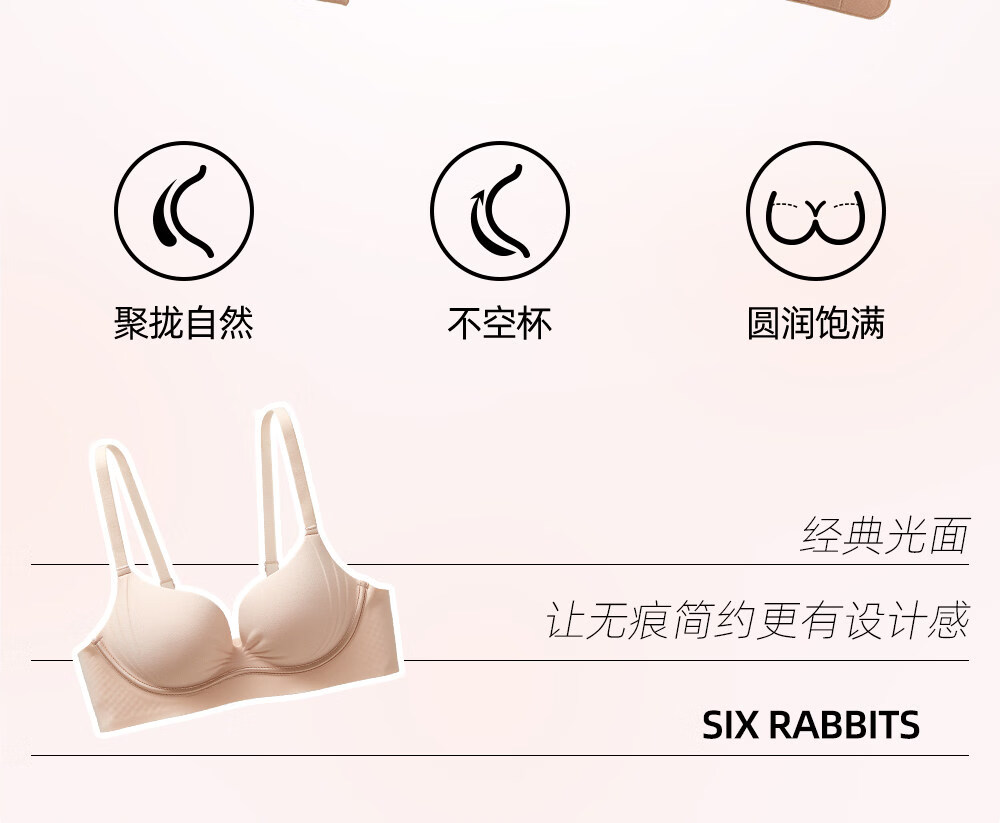 Six Rabbits Seamless Bra for Women with Small Breasts Pushing Up and Cupping to Show Bigger Breasts, Preventing Sagging and Expanding Bras, Champagne M =75AB