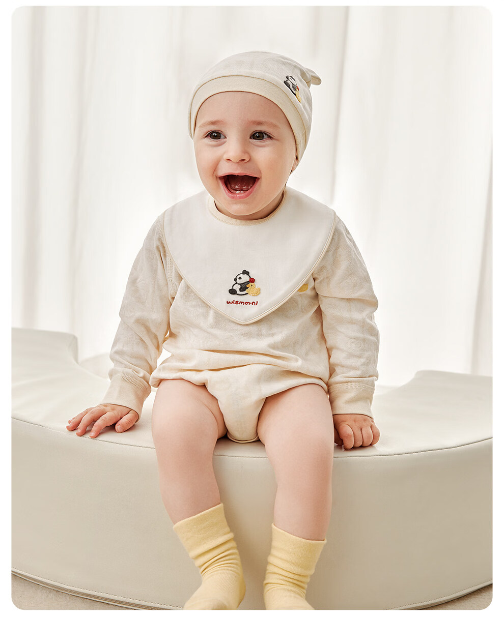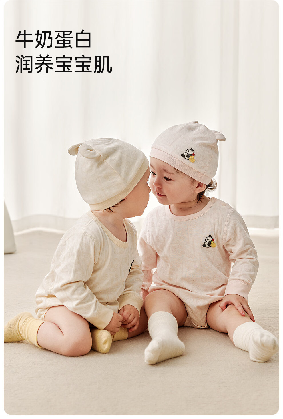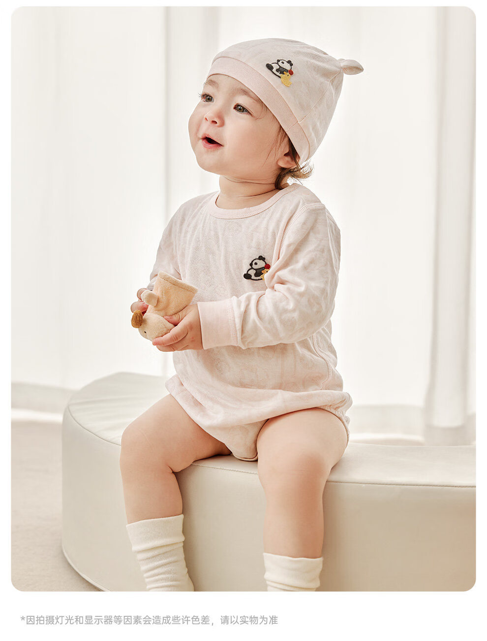 Weishi Muni baby long-sleeved bodysuit spring and autumn baby warm jumpsuit baby clothes type a boneless khaki rose pink 66cm