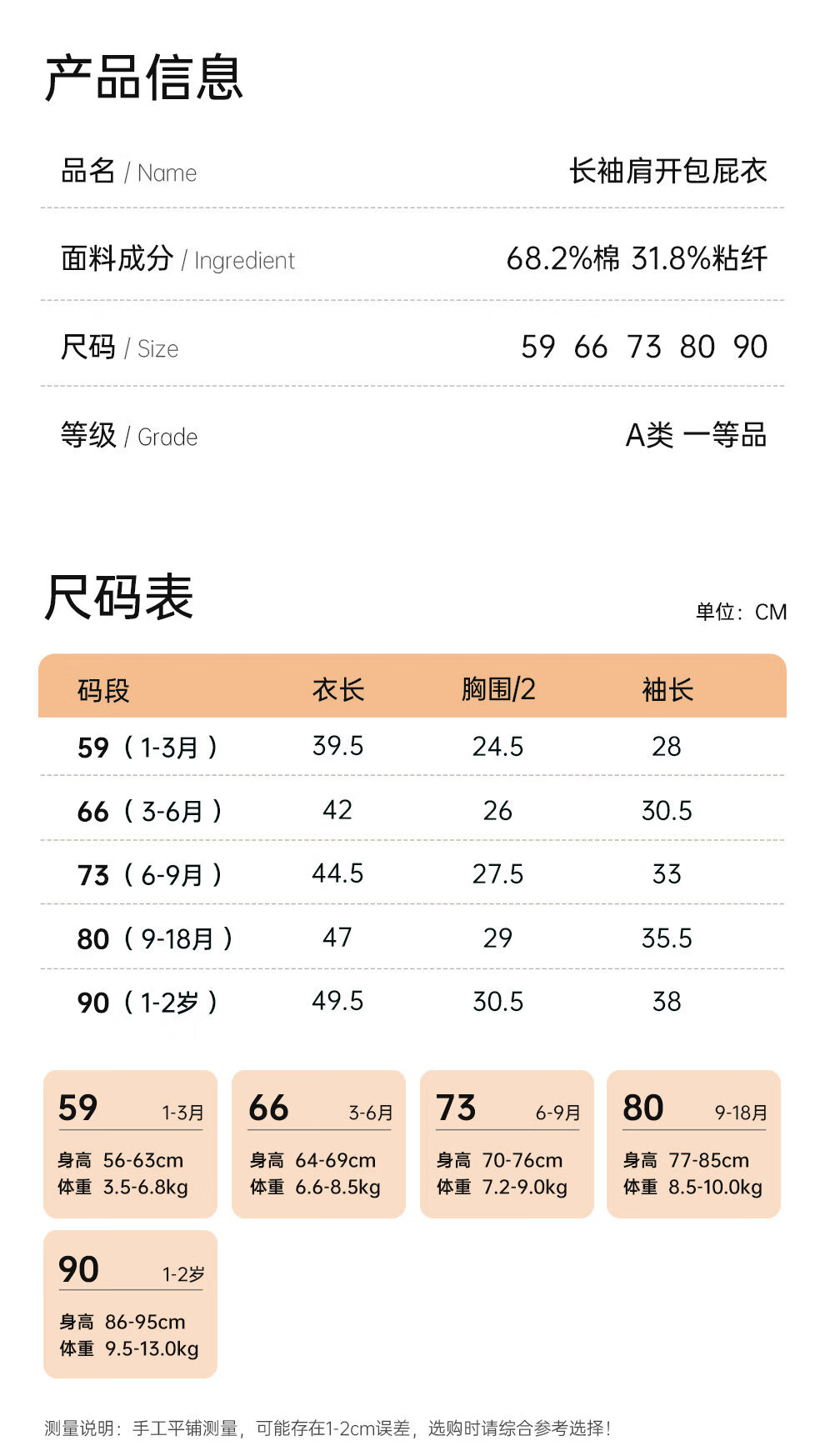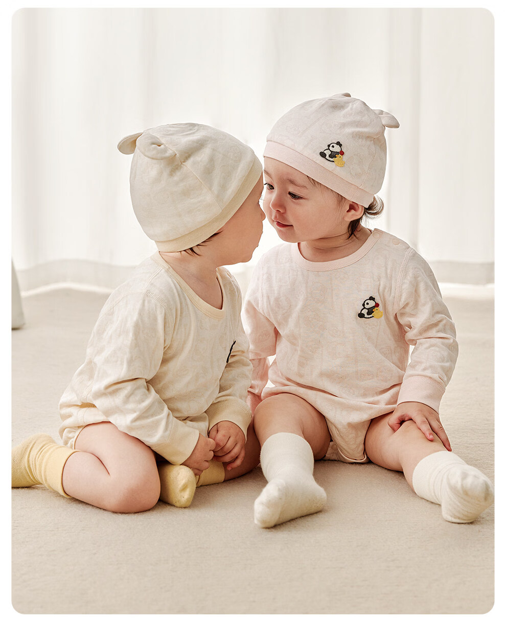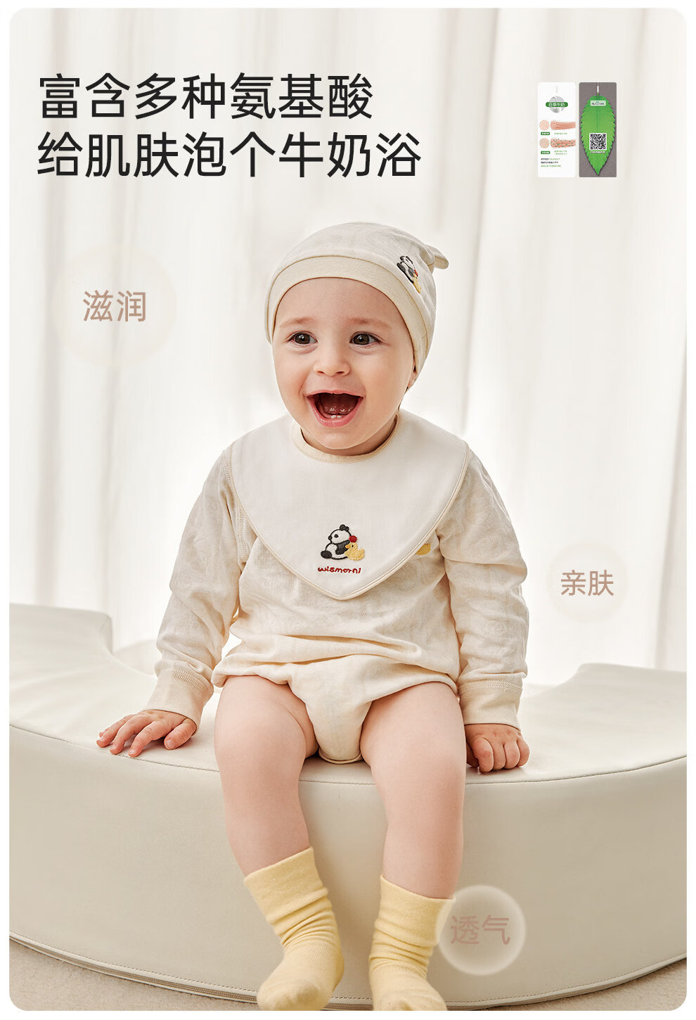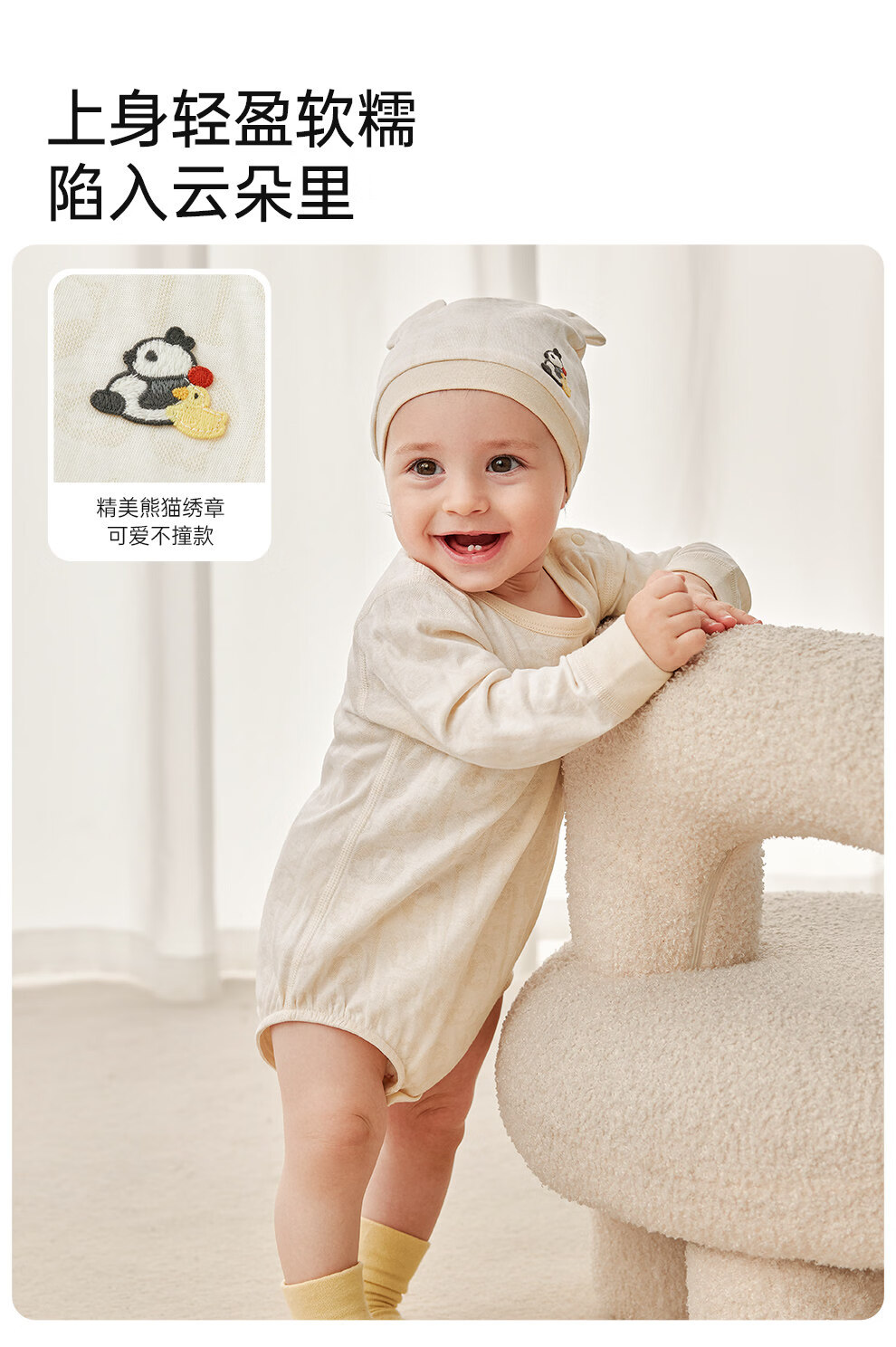 Weishi Muni baby long-sleeved bodysuit spring and autumn baby warm jumpsuit baby clothes type a boneless khaki rose pink 66cm