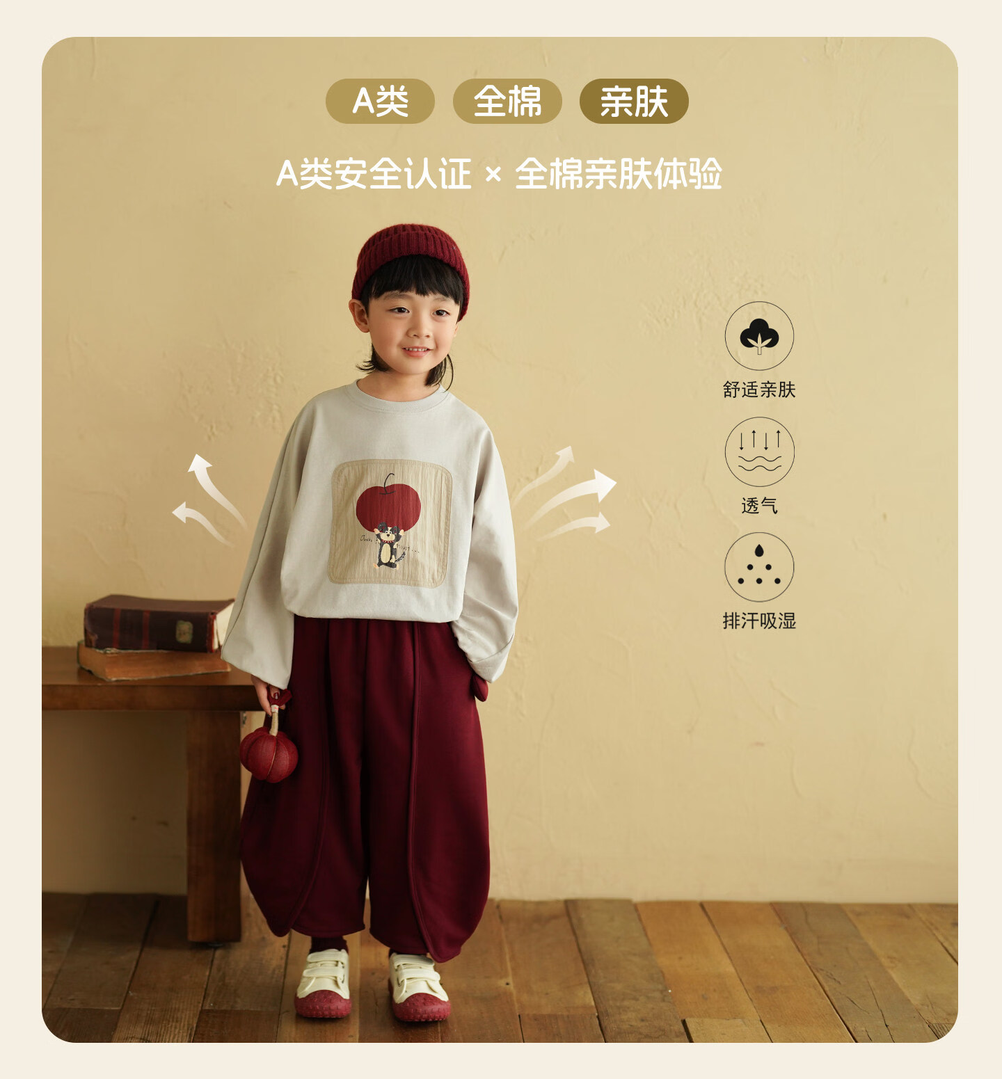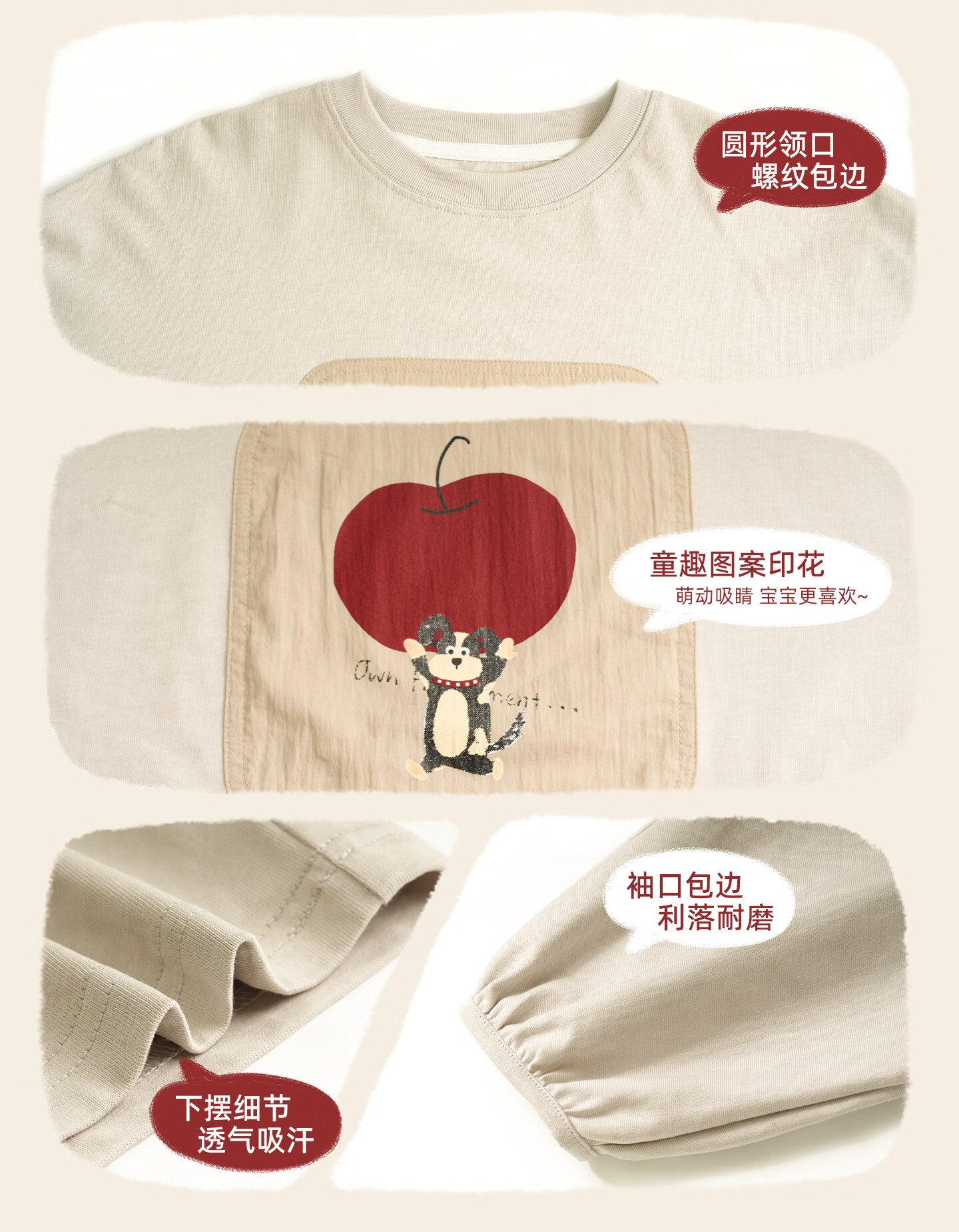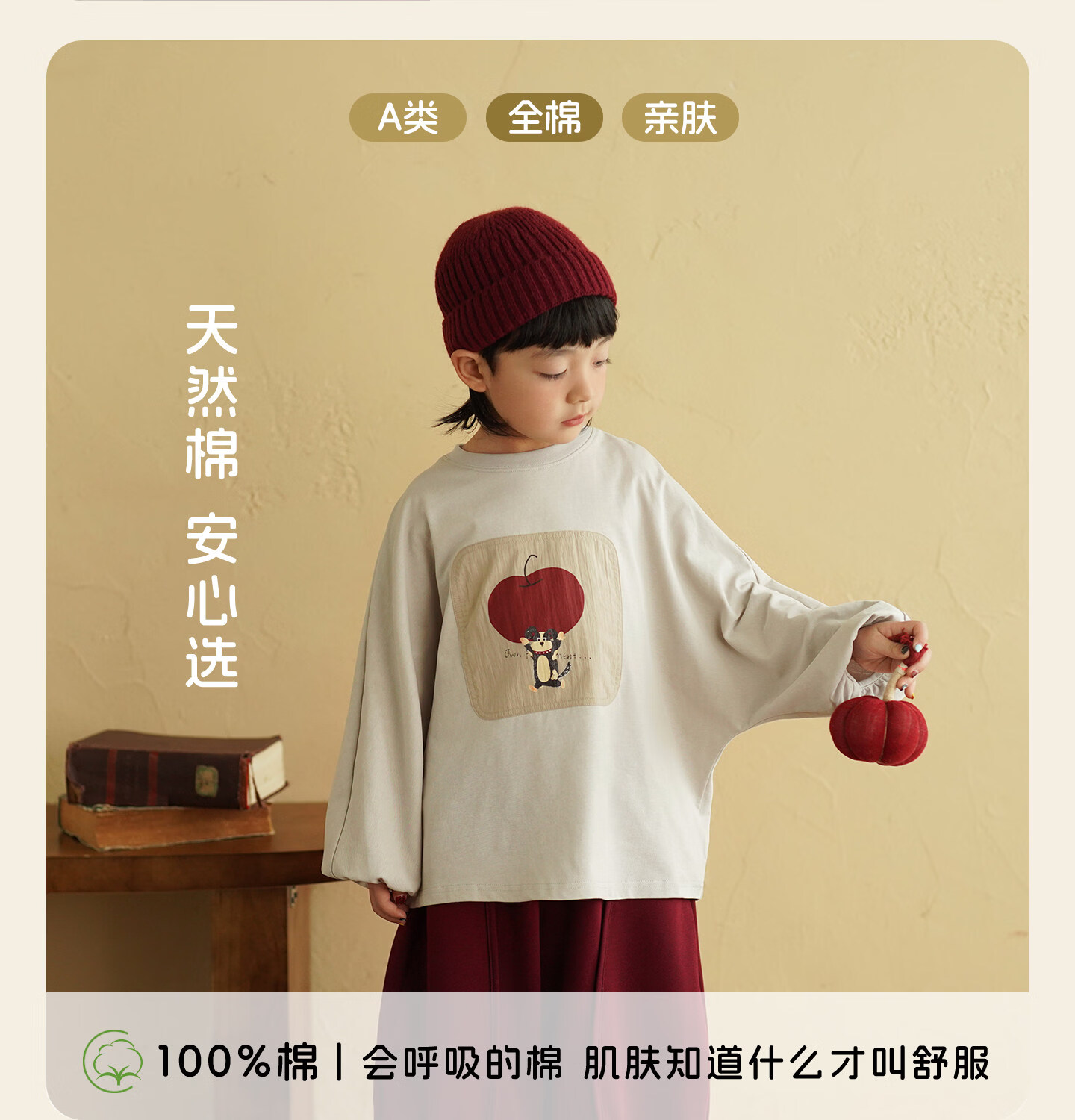 Yantaijia children's clothing boys' Class A pure cotton long-sleeved T-shirt 2026 spring baby bat sleeve top children's T-shirt beige 80