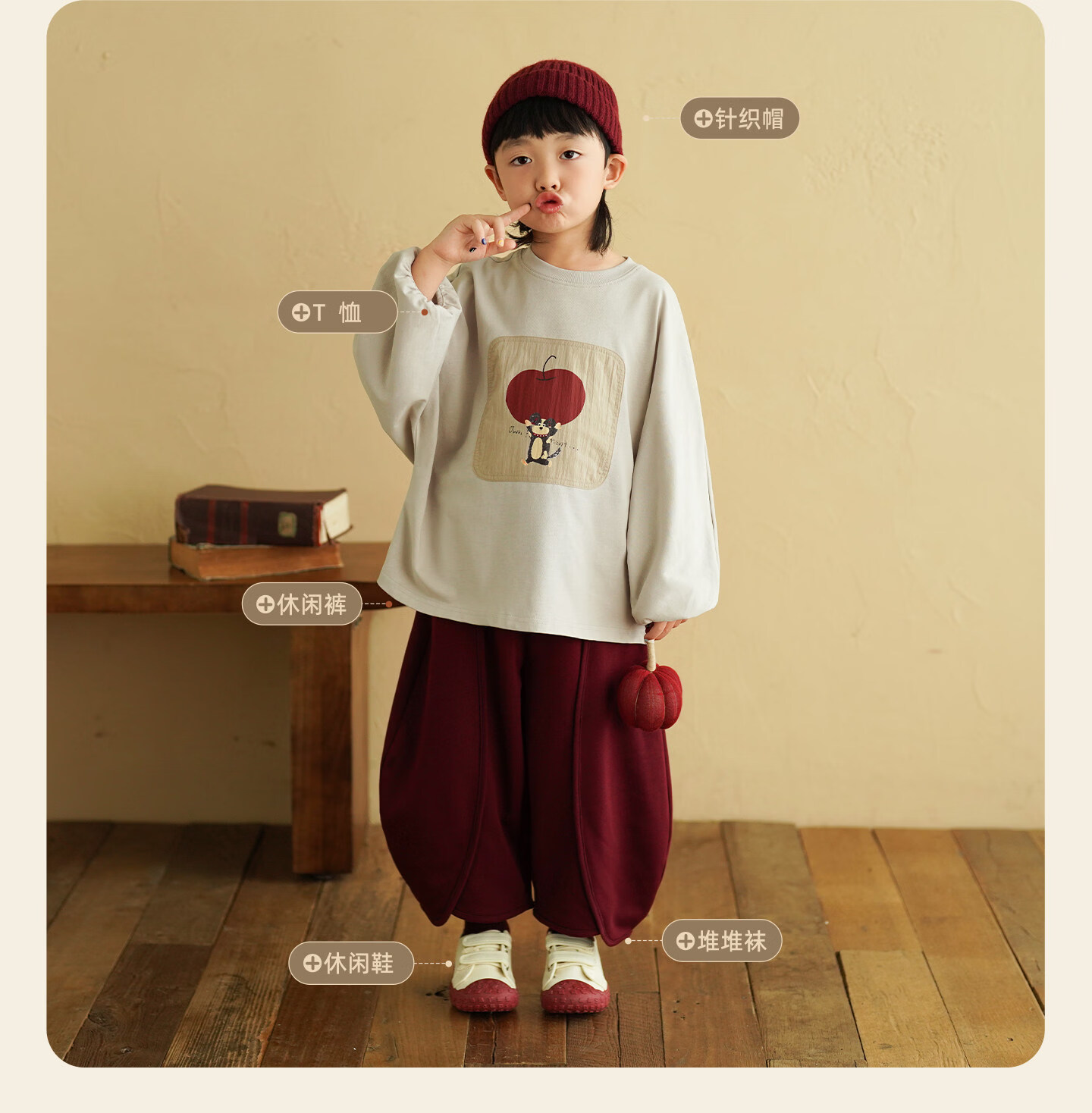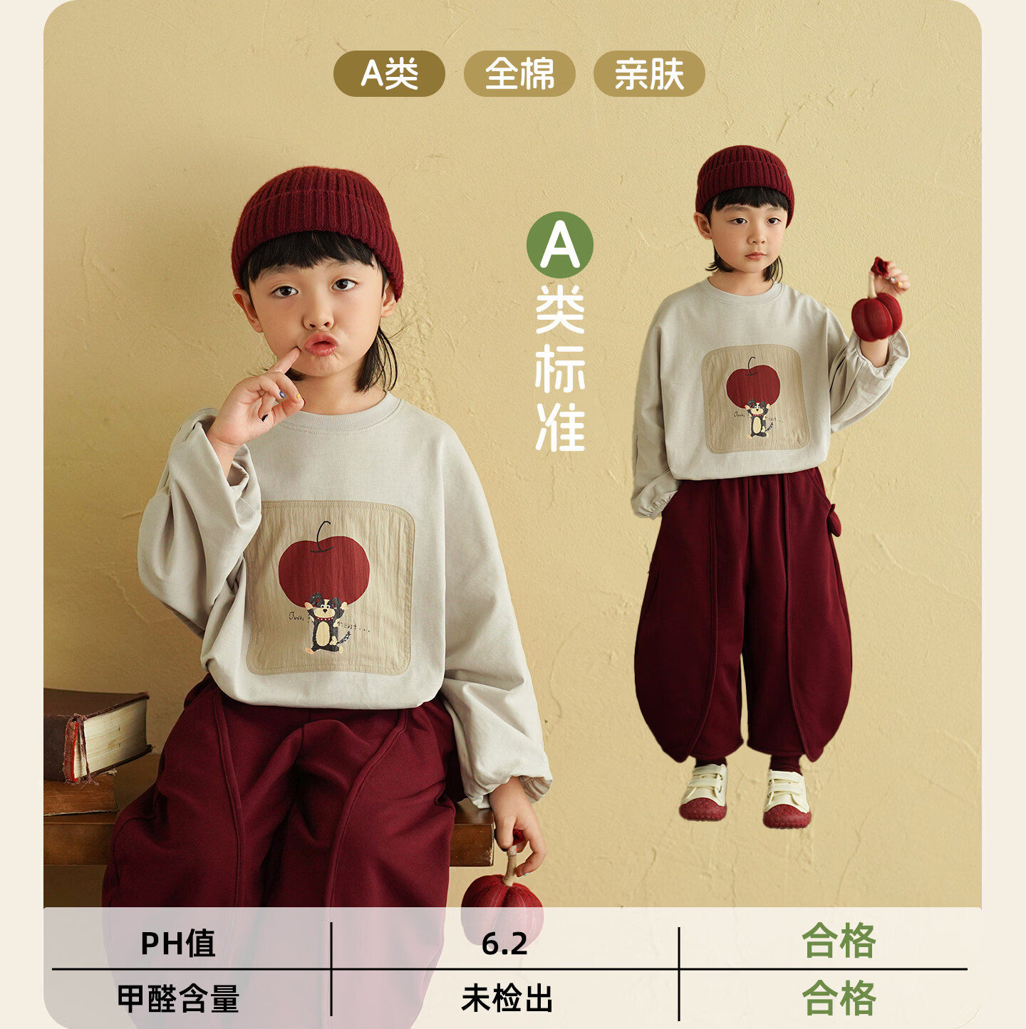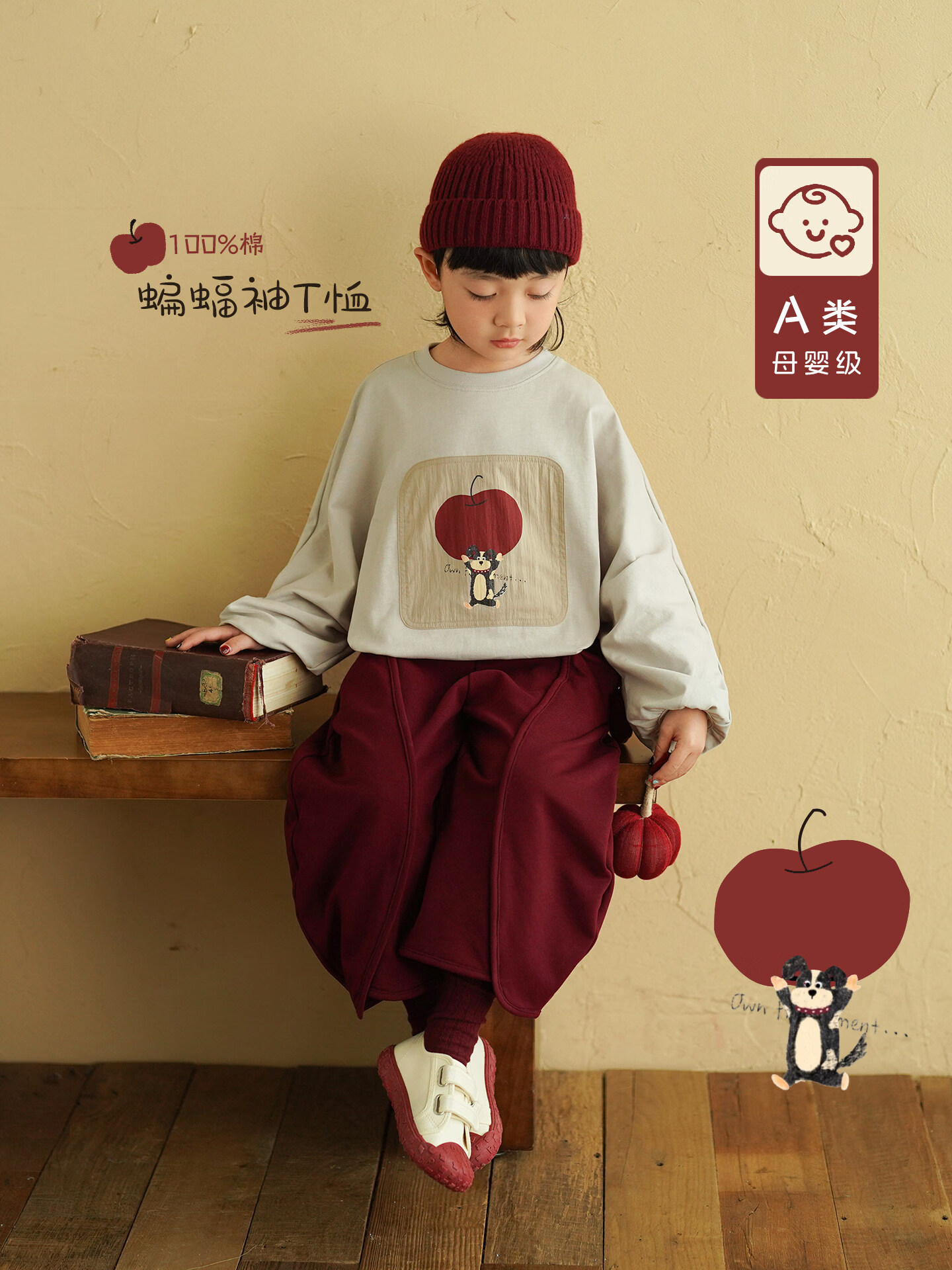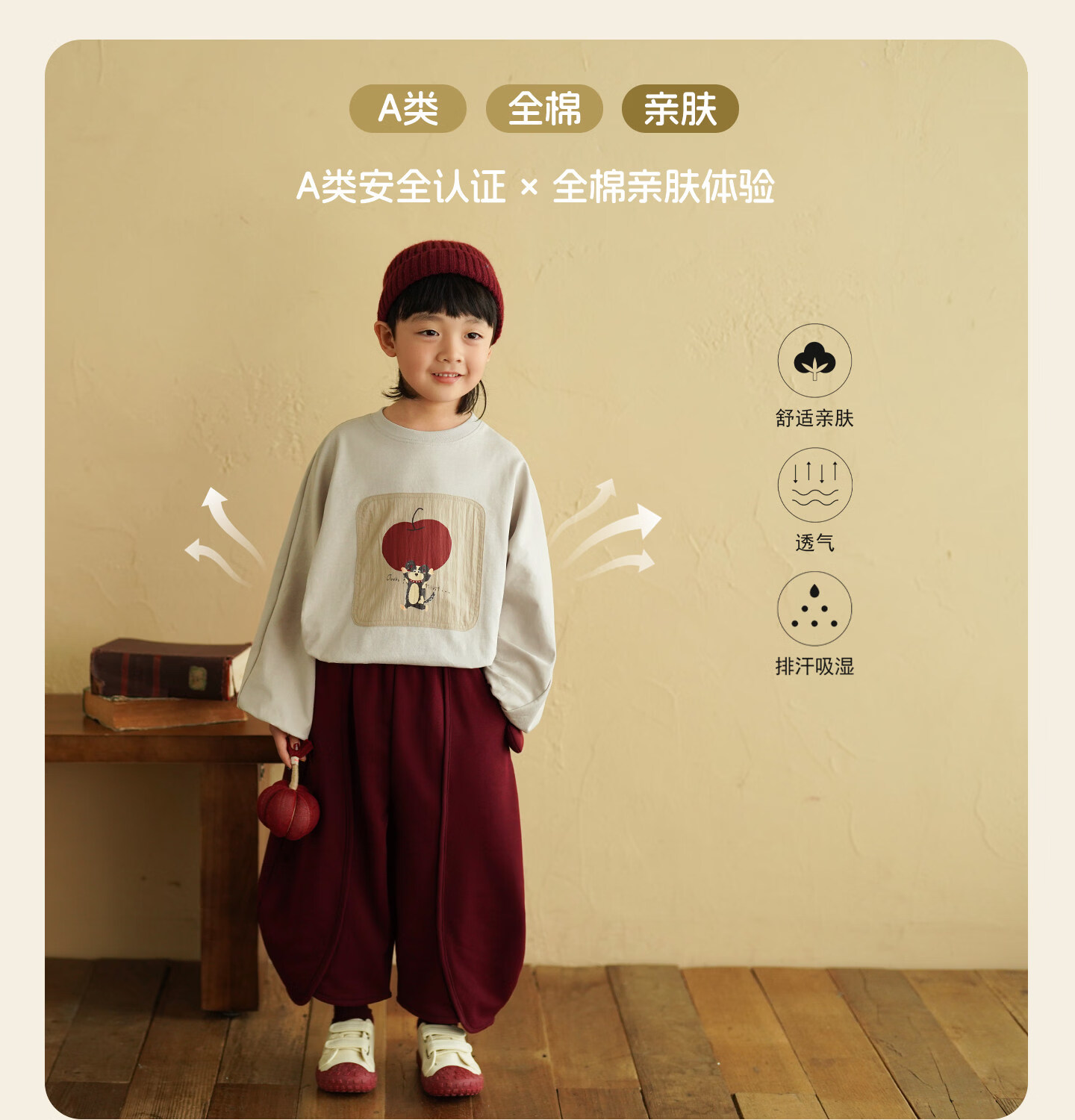 Yantaijia children's clothing boys' Class A pure cotton long-sleeved T-shirt 2026 spring baby bat sleeve top children's T-shirt beige 80