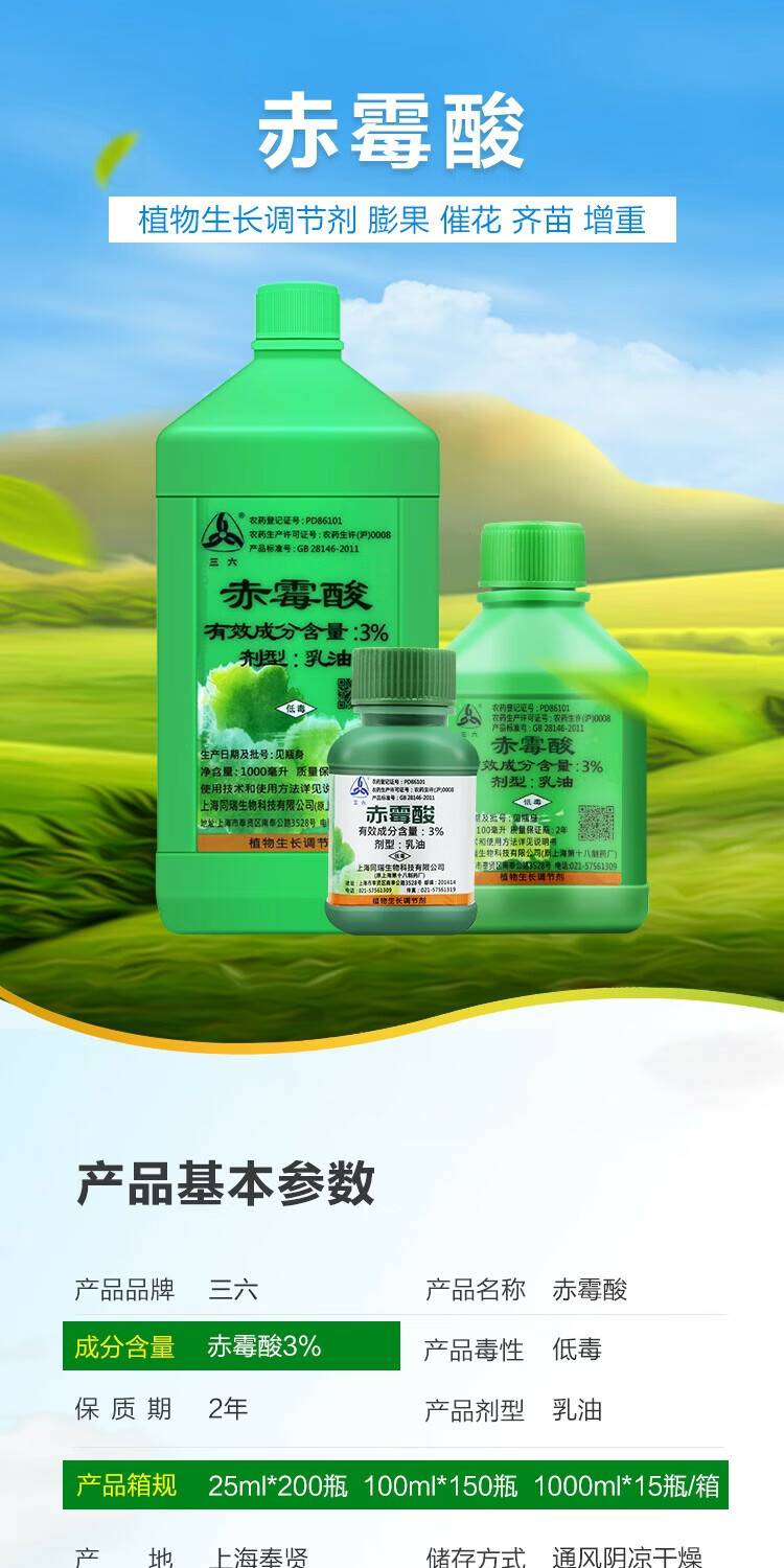 Sanliu Shanghai Tongrui Sanliu 3 gibberellic acid gibberellin 920 grape citrus seedless seedling growth regulator 25ml