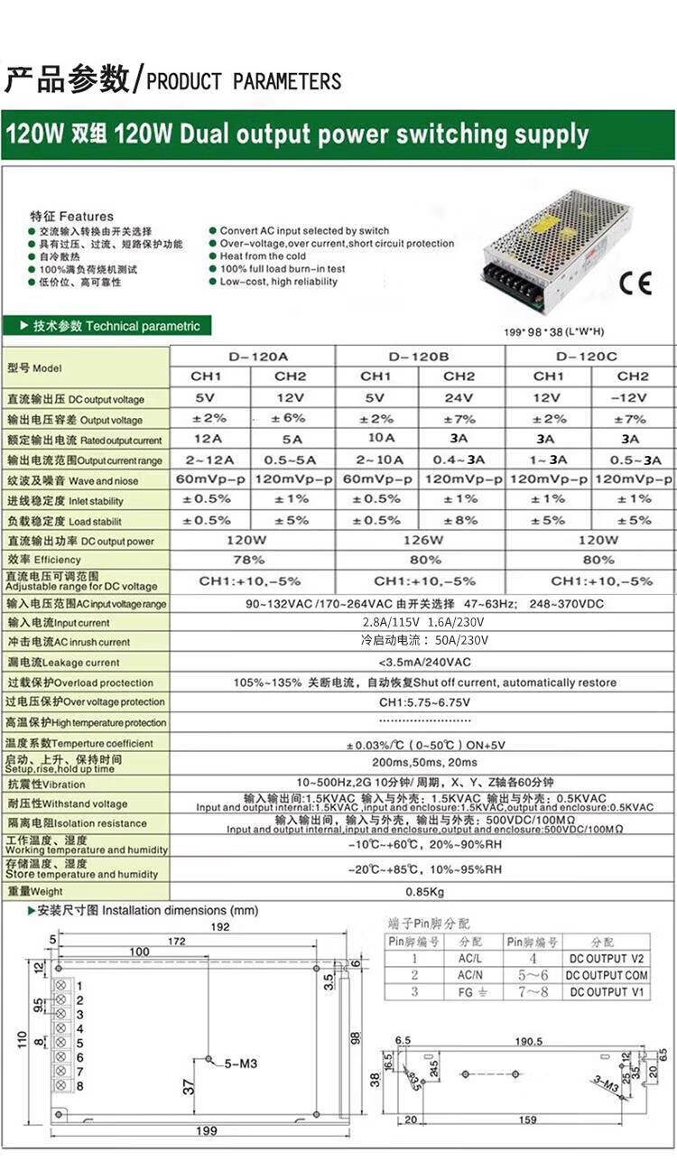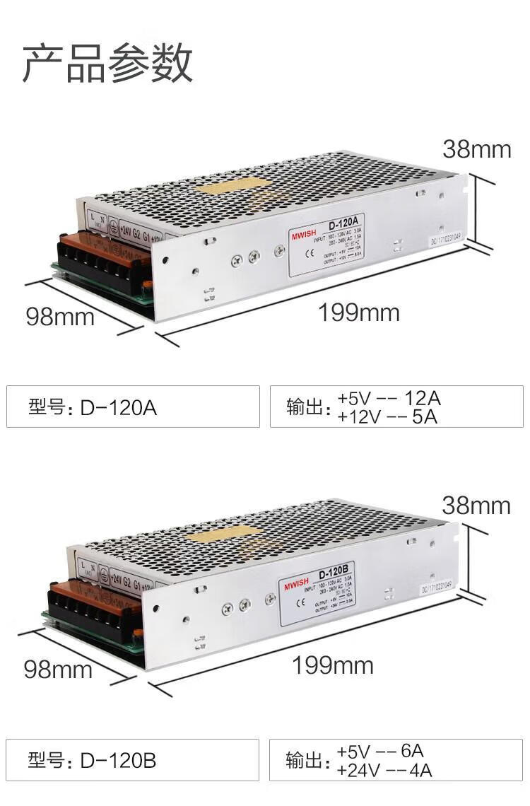 Dual output -120W DC 220 to 24 transformer full power 5V12A12V5A switching power supply box industrial -120A5V12V6b2