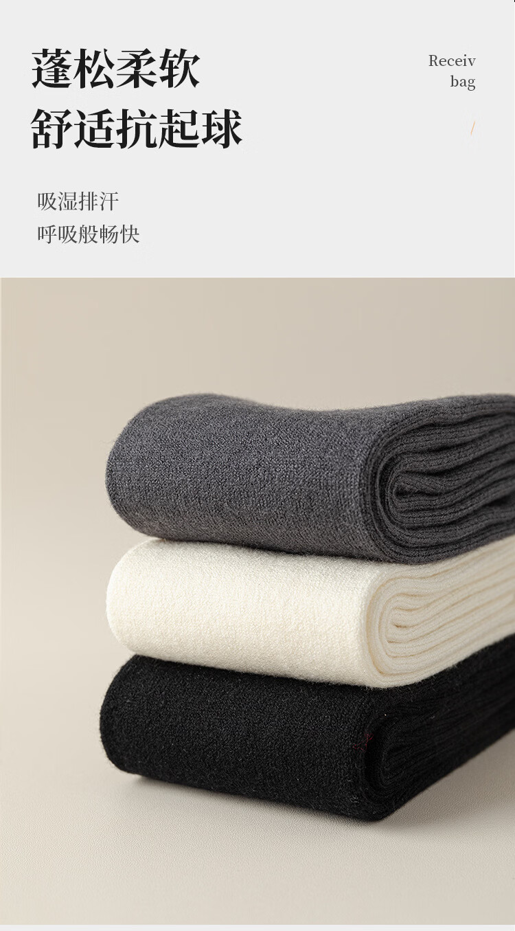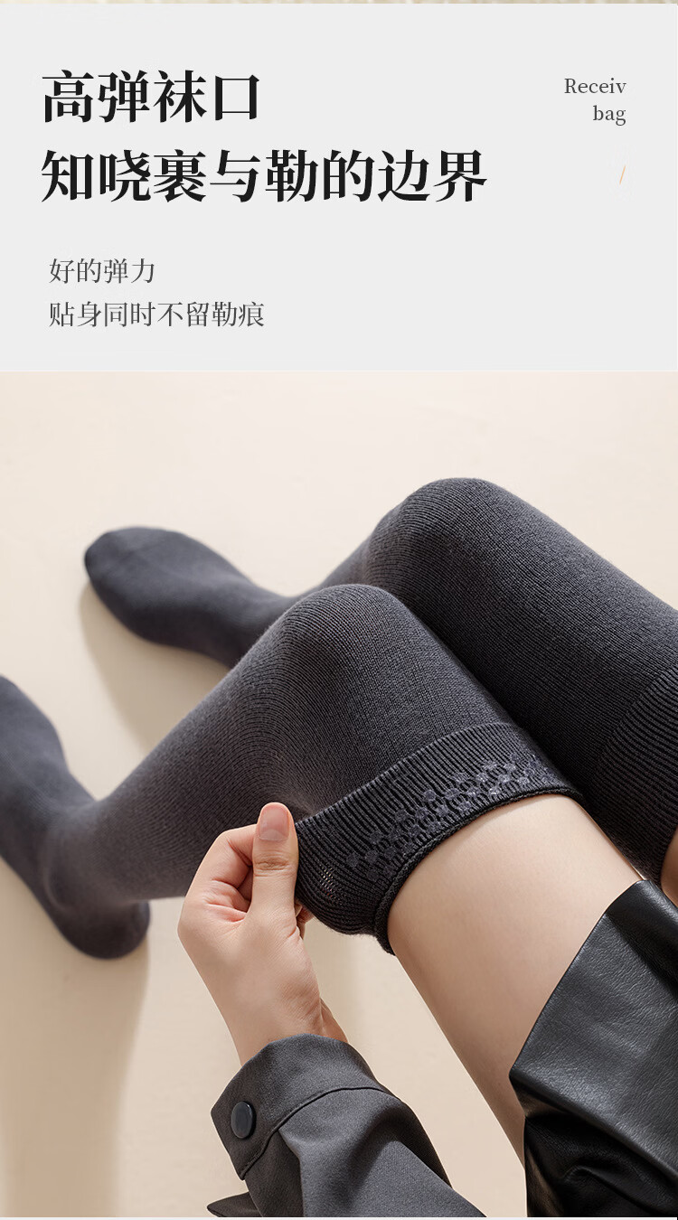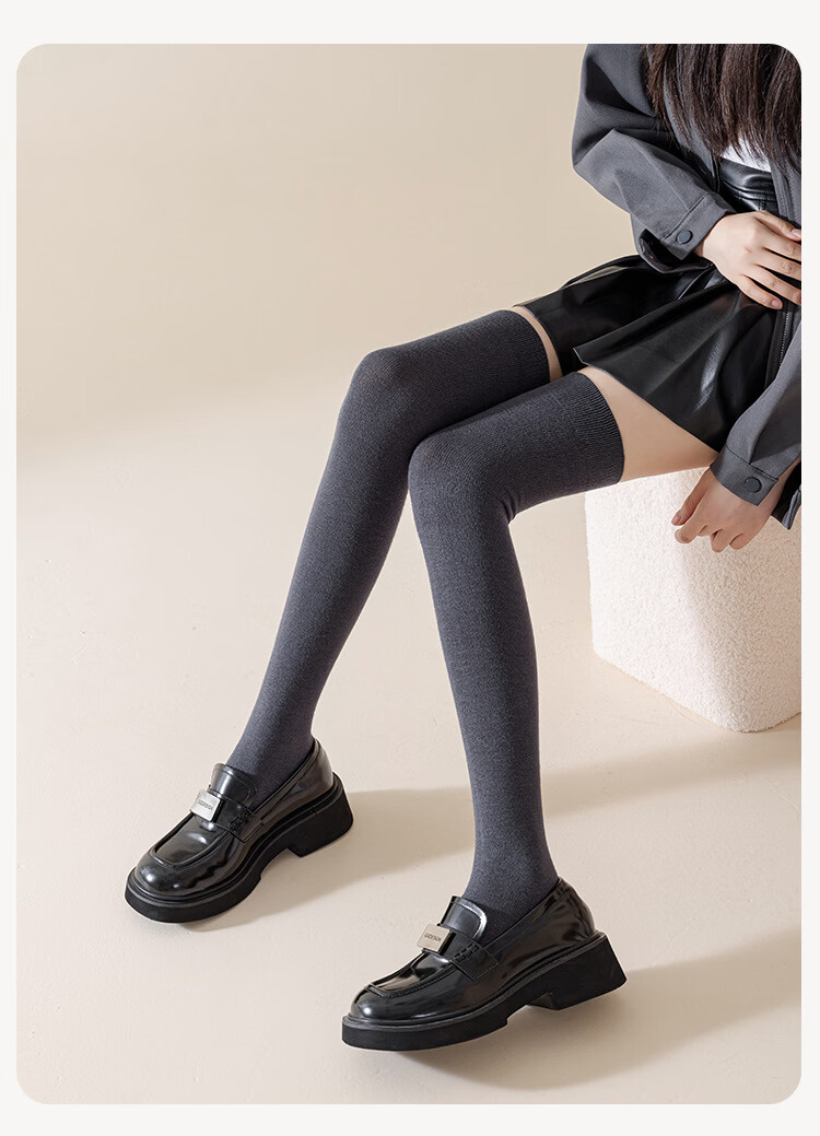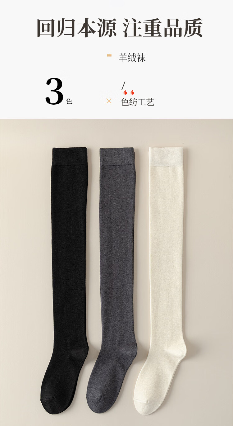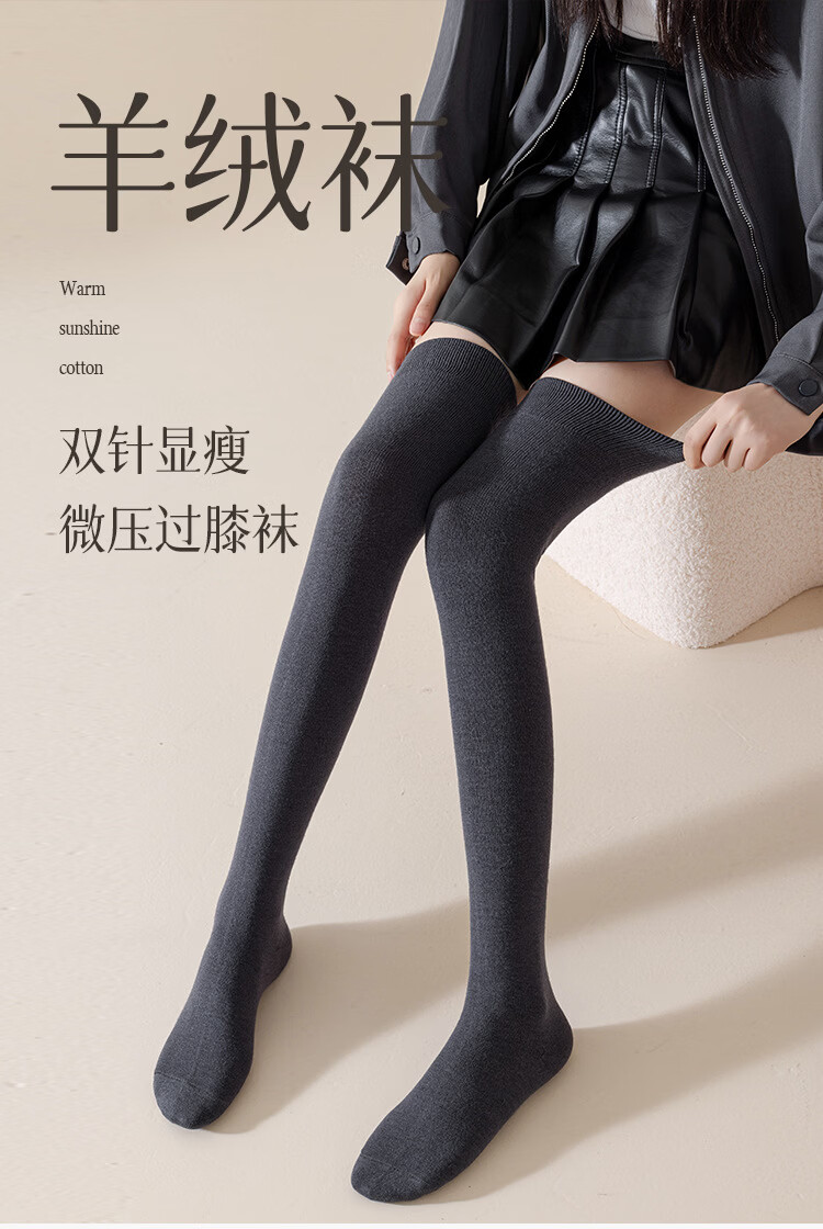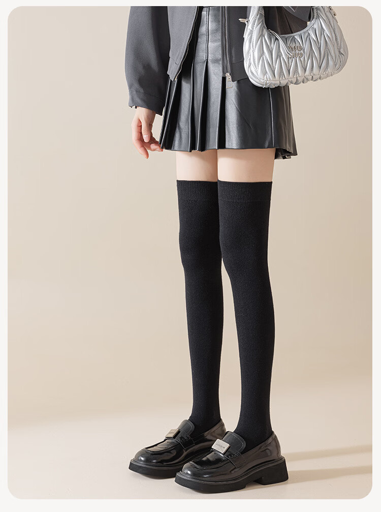 Carefully selected double-needle over-the-knee cashmere socks, anti-pilling, warm, fashionable and versatile for autumn and winter, H-811 black, one size fits all