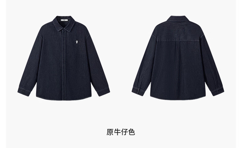 MQD boys' 26 spring new college style workwear lapel washed denim shirt original denim color 120
