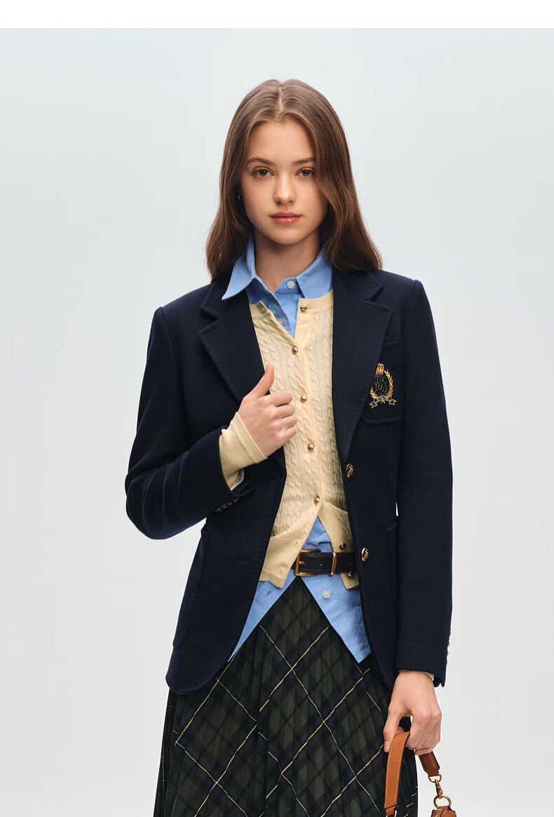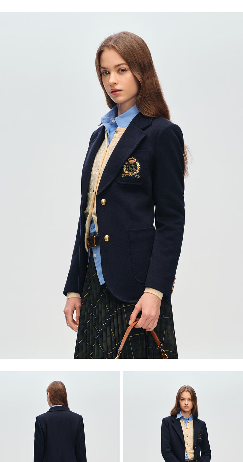 ELANDEland suit women's lapel waist jacket EEJKG12E01 navy blue 160