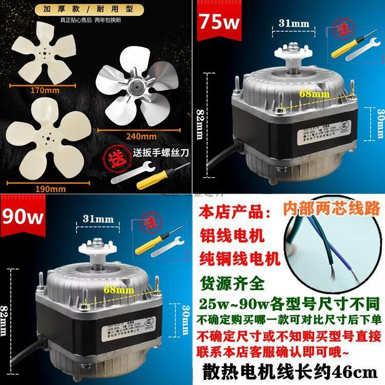 Tiannan Brothers Commercial Four or Six Door Refrigerator Cooling Motor Fan Flat Strip Double Roller 60W Motor Aluminum Fan Blade + Bracket