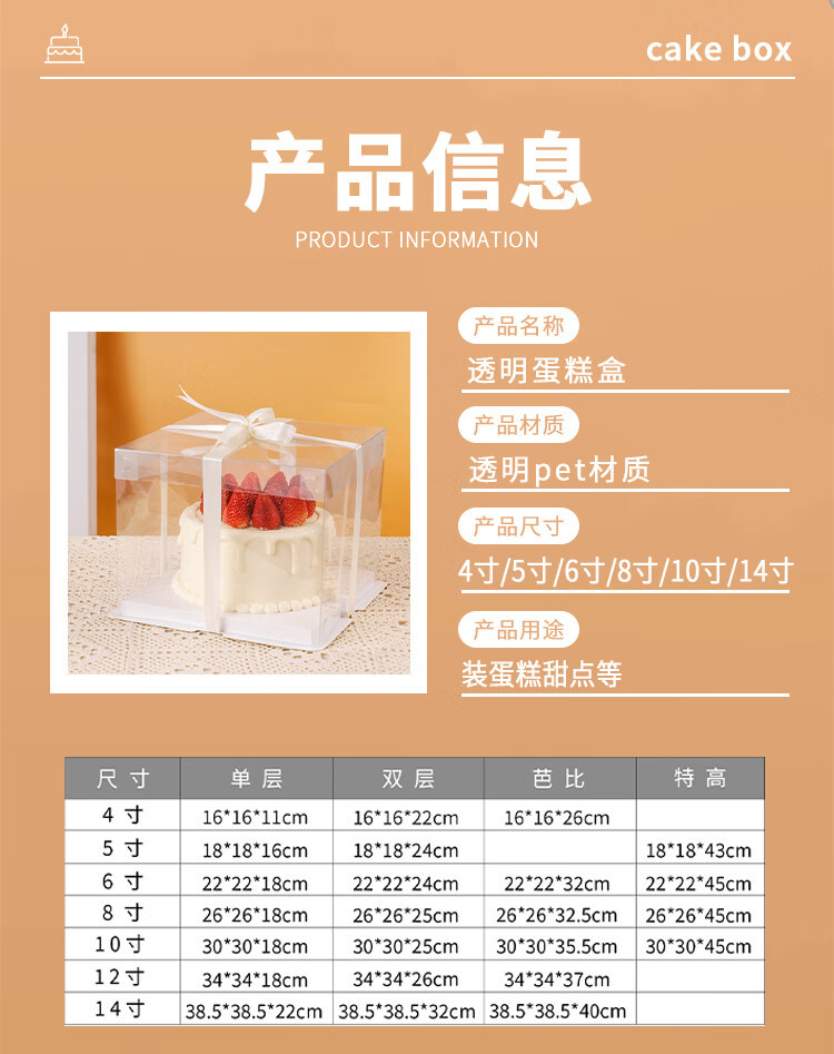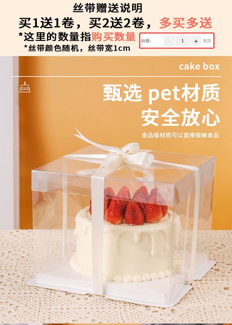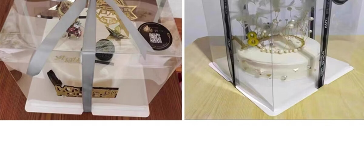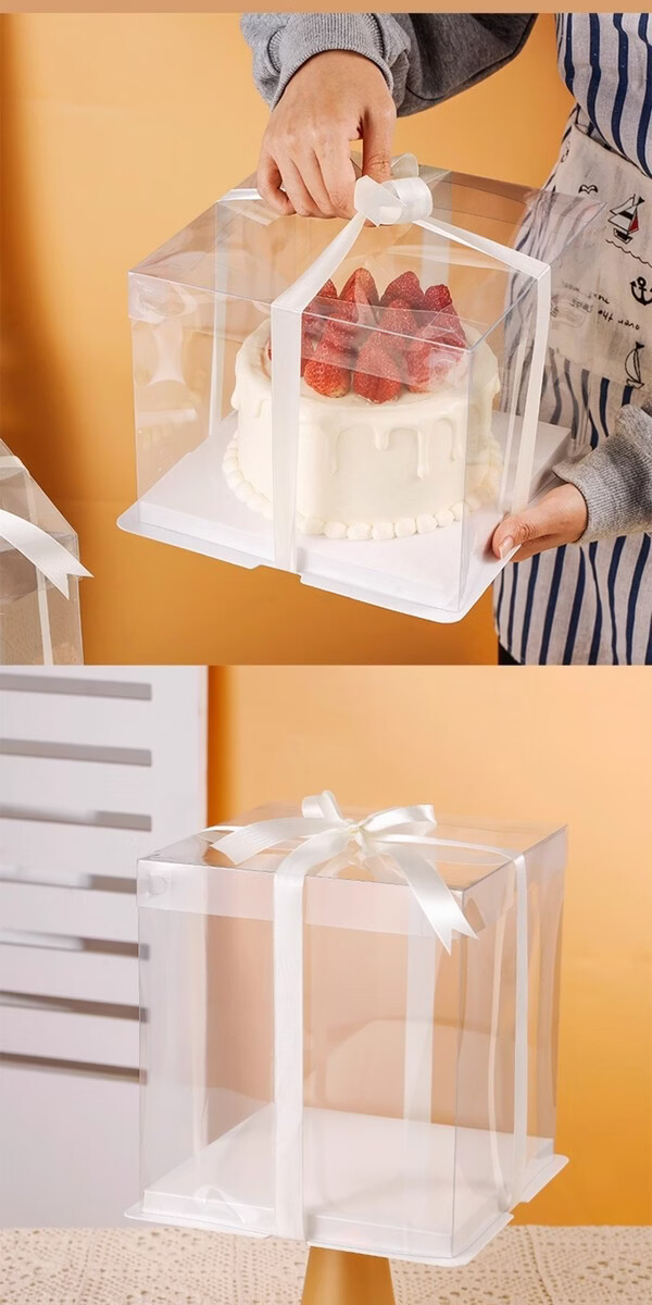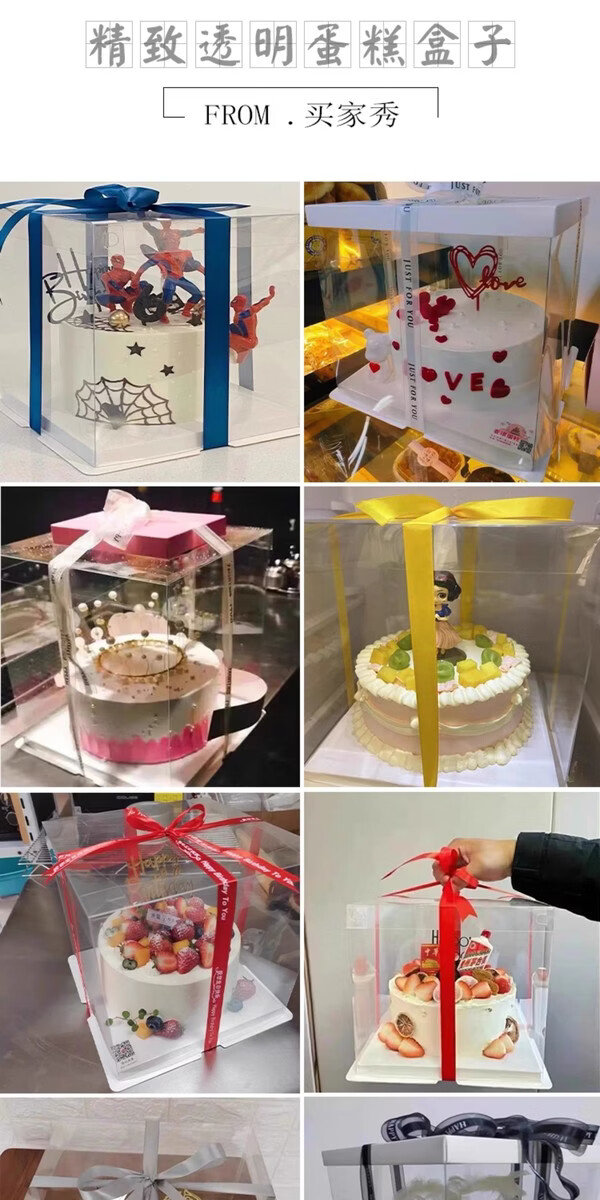 Fantasy transparent cake box packaging box birthday 4 four inches 5 inches five six eight 6810 ten 12 small package double three layers large 6 inches three layers 24x24x32cm 50 sets