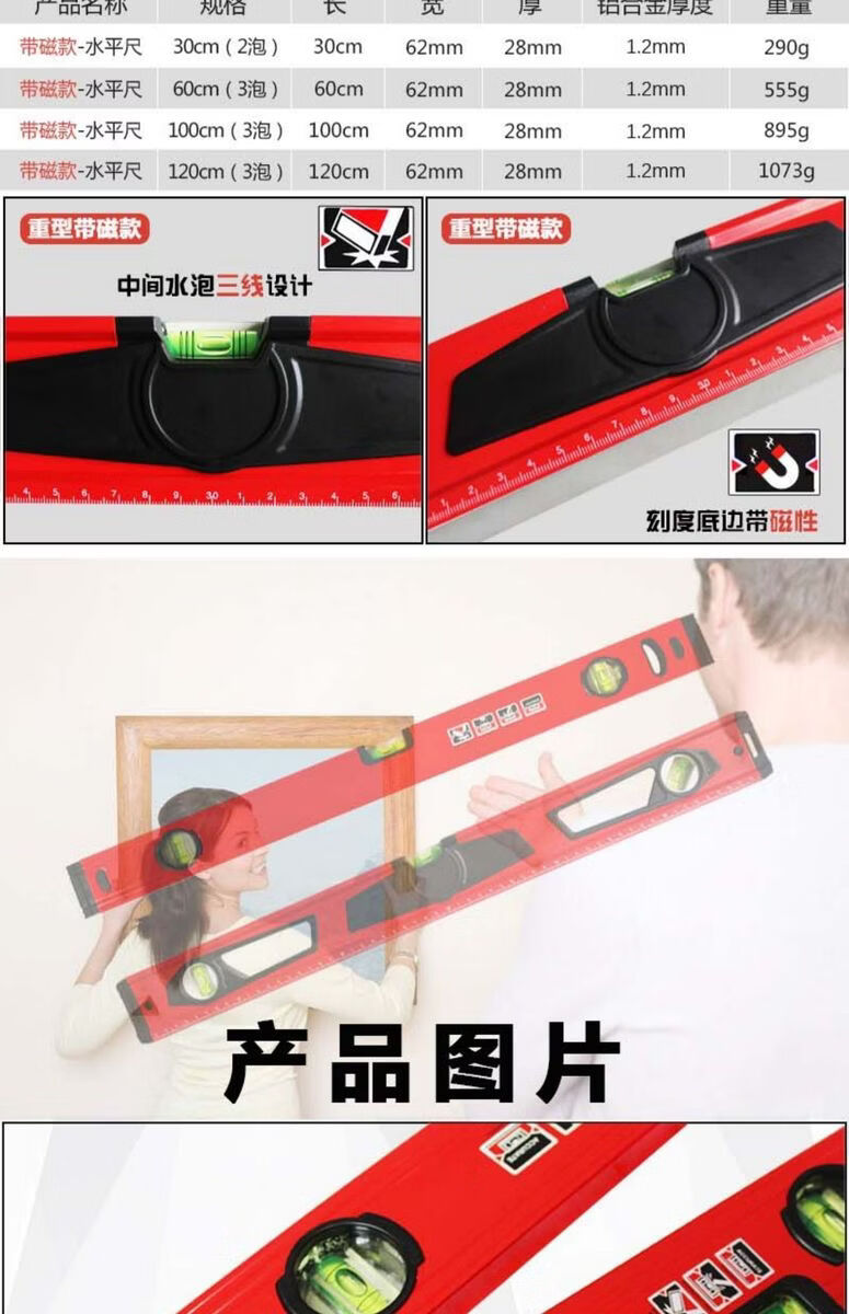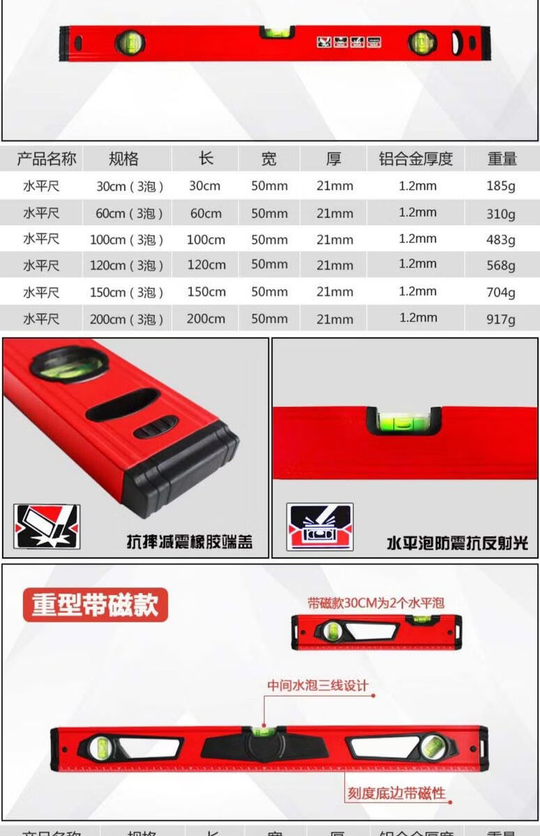 Songjiate thickened aluminum alloy spirit level extended by 2 meters high-precision strong magnetic mini balance ruler level 10cm mini hanging chain