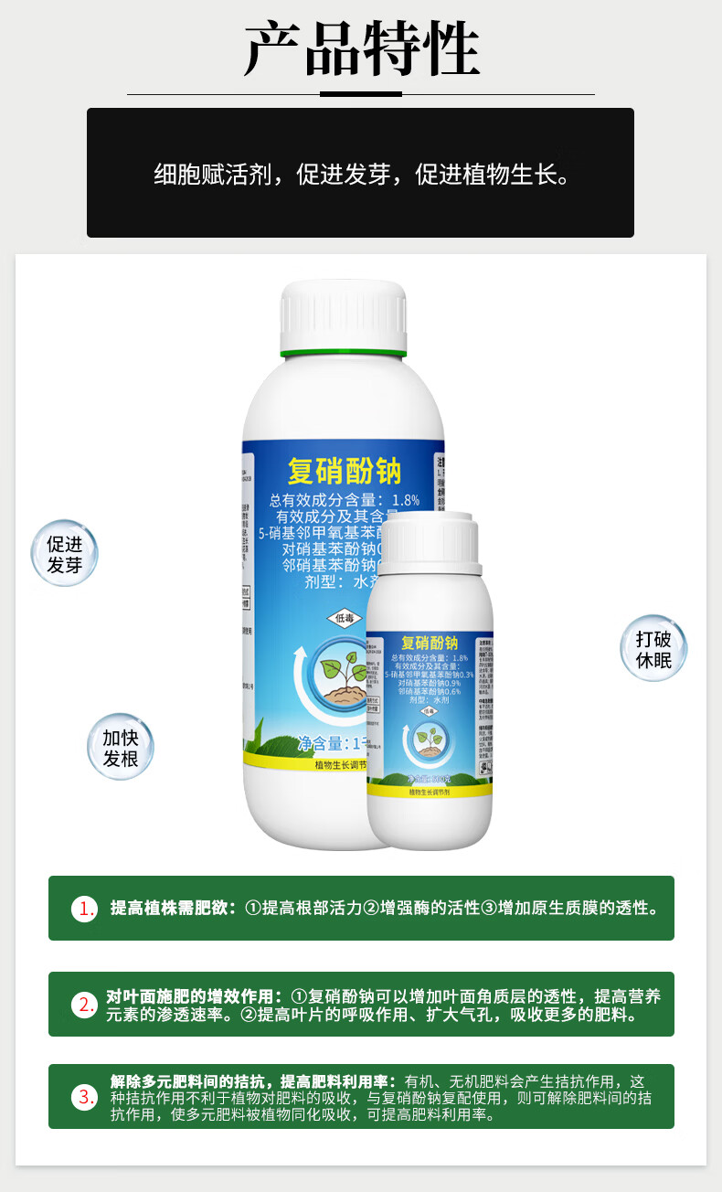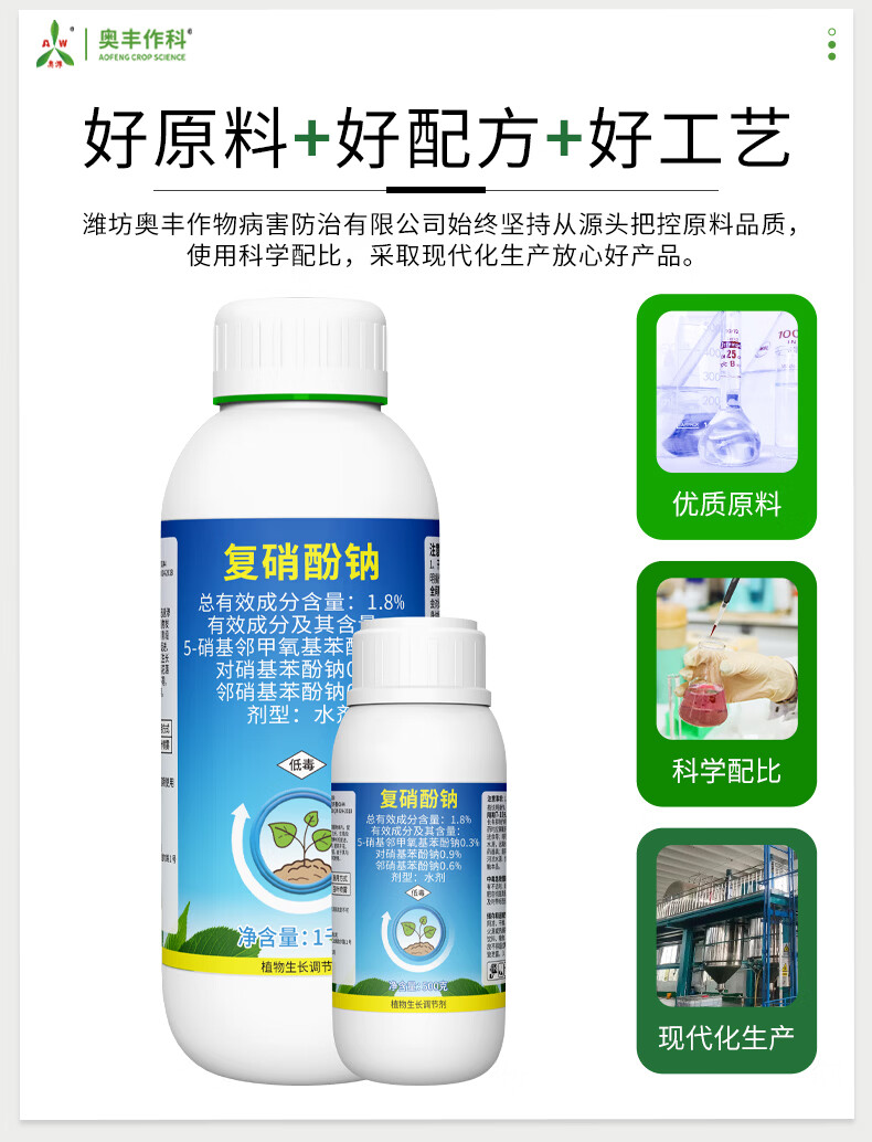 Aowei Aofeng 1.8% sodium nitrophenolate growth regulator promotes germination, accelerates roots and early blooms cotton agricultural use 1000g*6 bottles